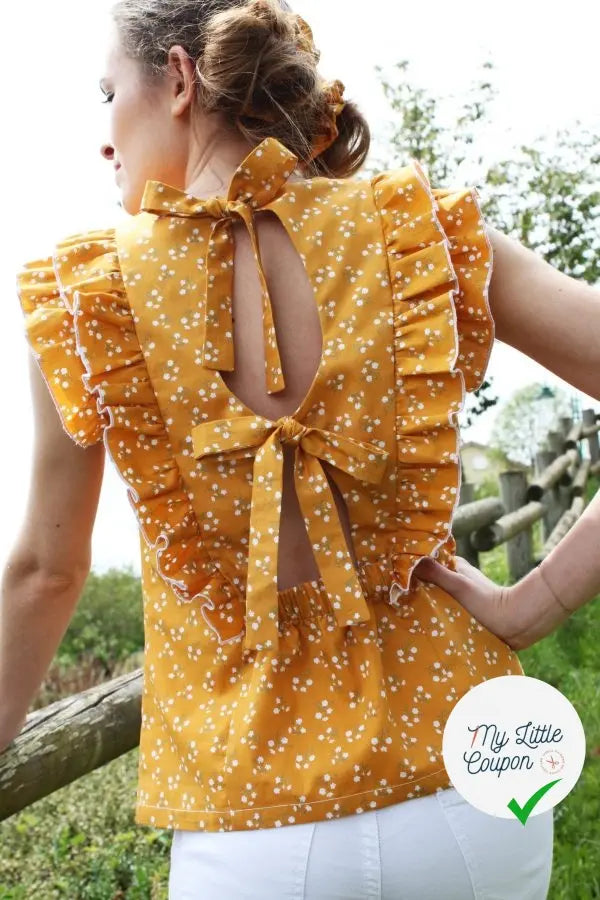 Ich machte mein Top in 100% BaumwolleSie können andere Materialien wie ein Chambray verwenden viskose, des gefüttert Gas, ein Leinen, ein Polyester, eine englische Spitze.