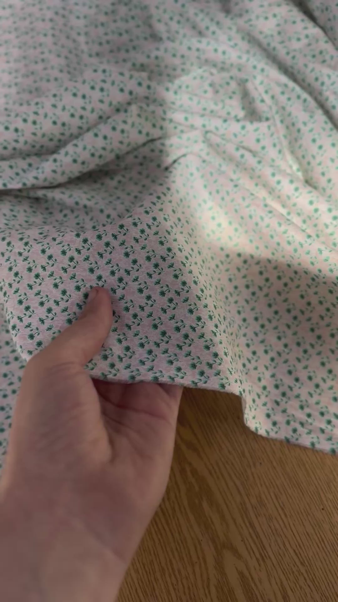 Die Muster von kleinen grünen Blumen auf einem blassen rosa Hintergrund bieten eine frische und romantische Ästhetik. Dieses stoff eignet sich auch perfekt zur Herstellung von Wohnaccessoires wie Kissen oder Tischdecken und bringt einen zarten floralen Akzent in Ihr Zuhause.