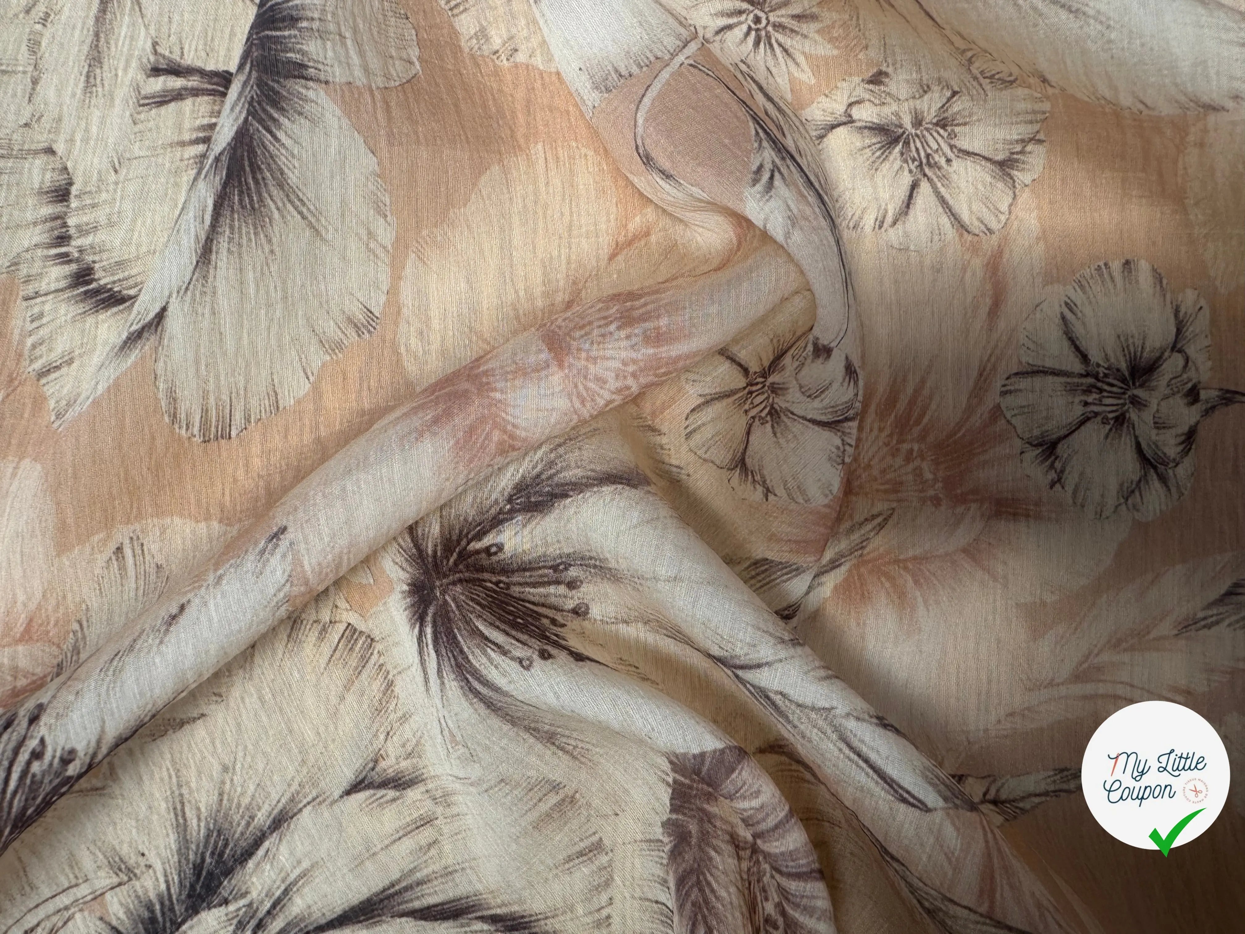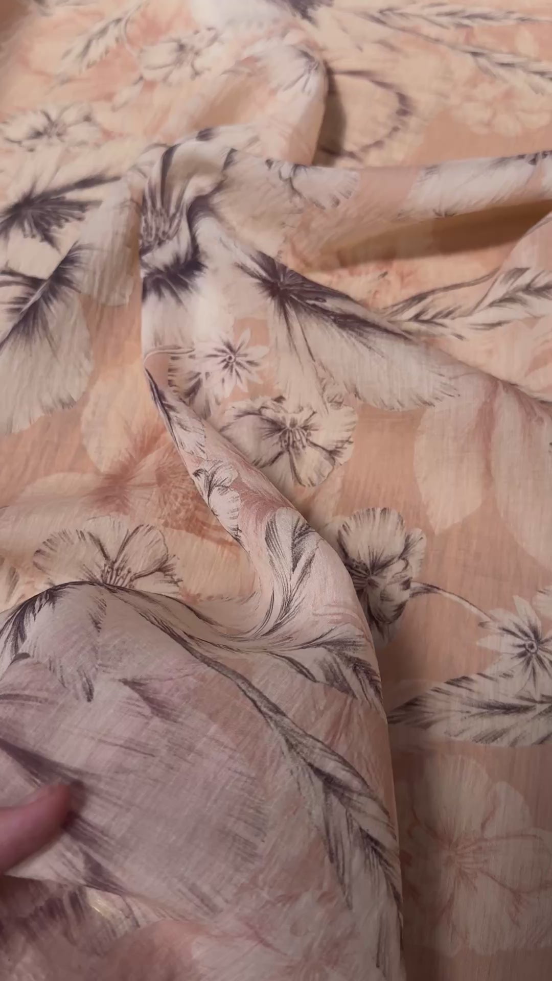 Dieser stoff, der mit seinen Blumenmustern Trend ist, ist auch sehr vielseitig. Zögern Sie nicht, ihn zu verwenden, um zarte Schals, leichte Vorhänge oder sogar modische Accessoires zu kreieren, die mit Sicherheit begeistern werden. Seine fließend Textur und die Crinkle-Oberfläche verleihen jedem Stück Bewegung und Eleganz.