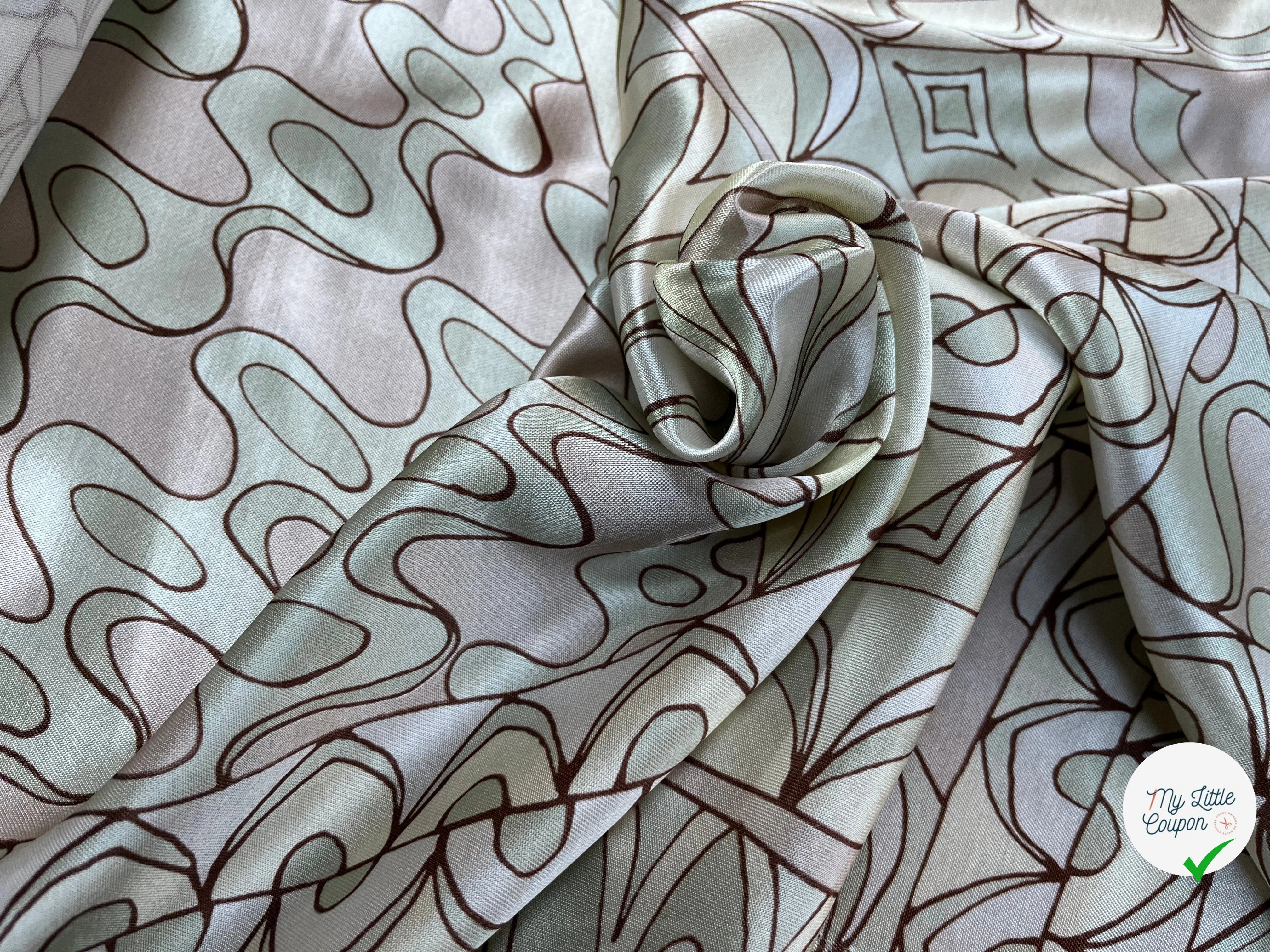 SATIN schwer SERGÉEVISCOSE MOTIV BLUMEN RECHTECK&CUBE FARBEN KAKI BEIGE gelb
