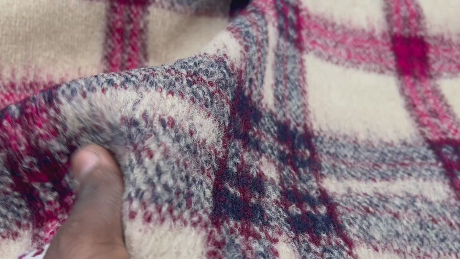 LAINAGE MANTEAU TRICOTÉ 63% LAINE PRINCE DE GALLES BEIGE & ROSE