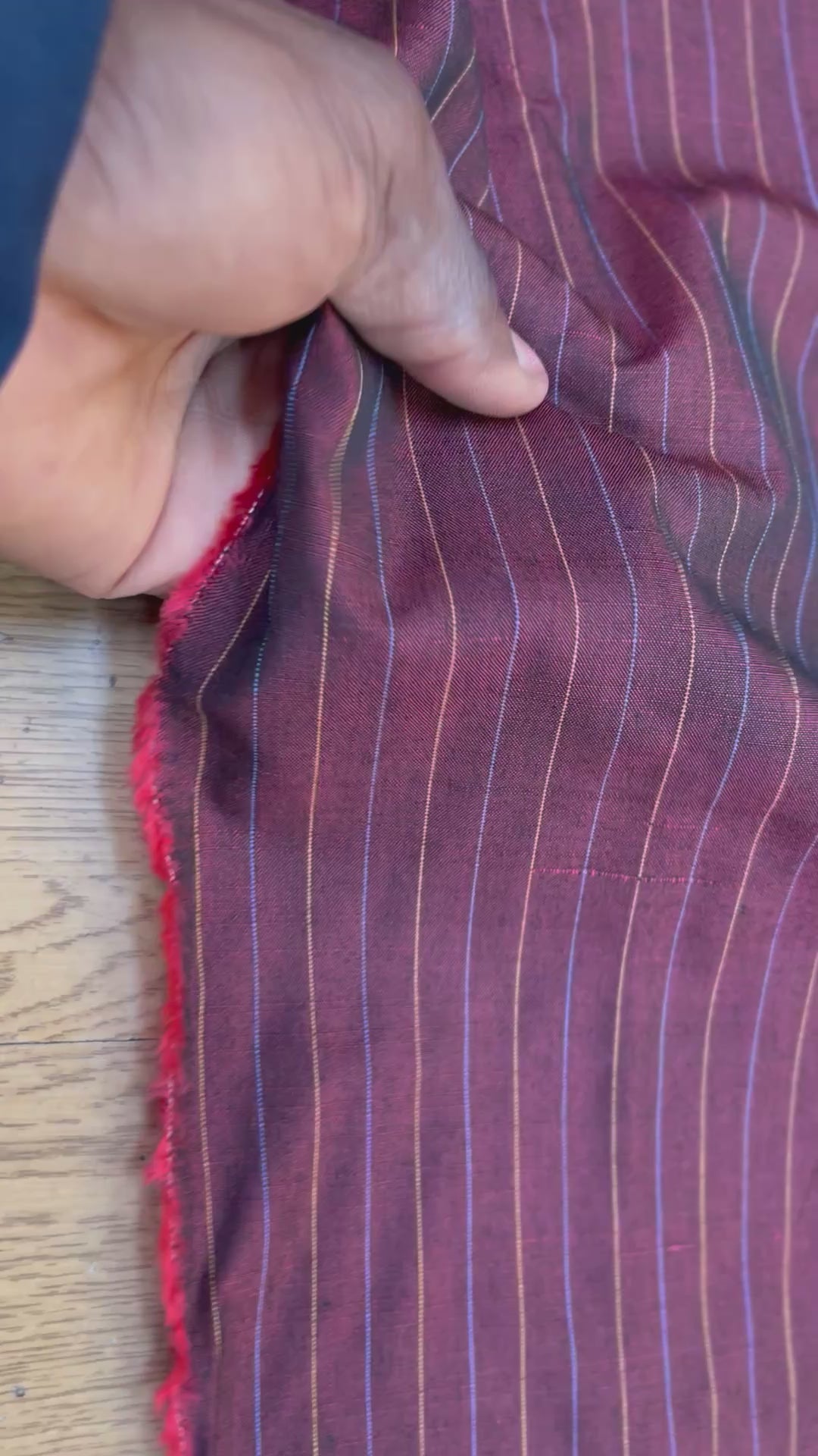OXFORD DRU RED WINE VISCOSE WITH BLUE & YELLOW STRIPES