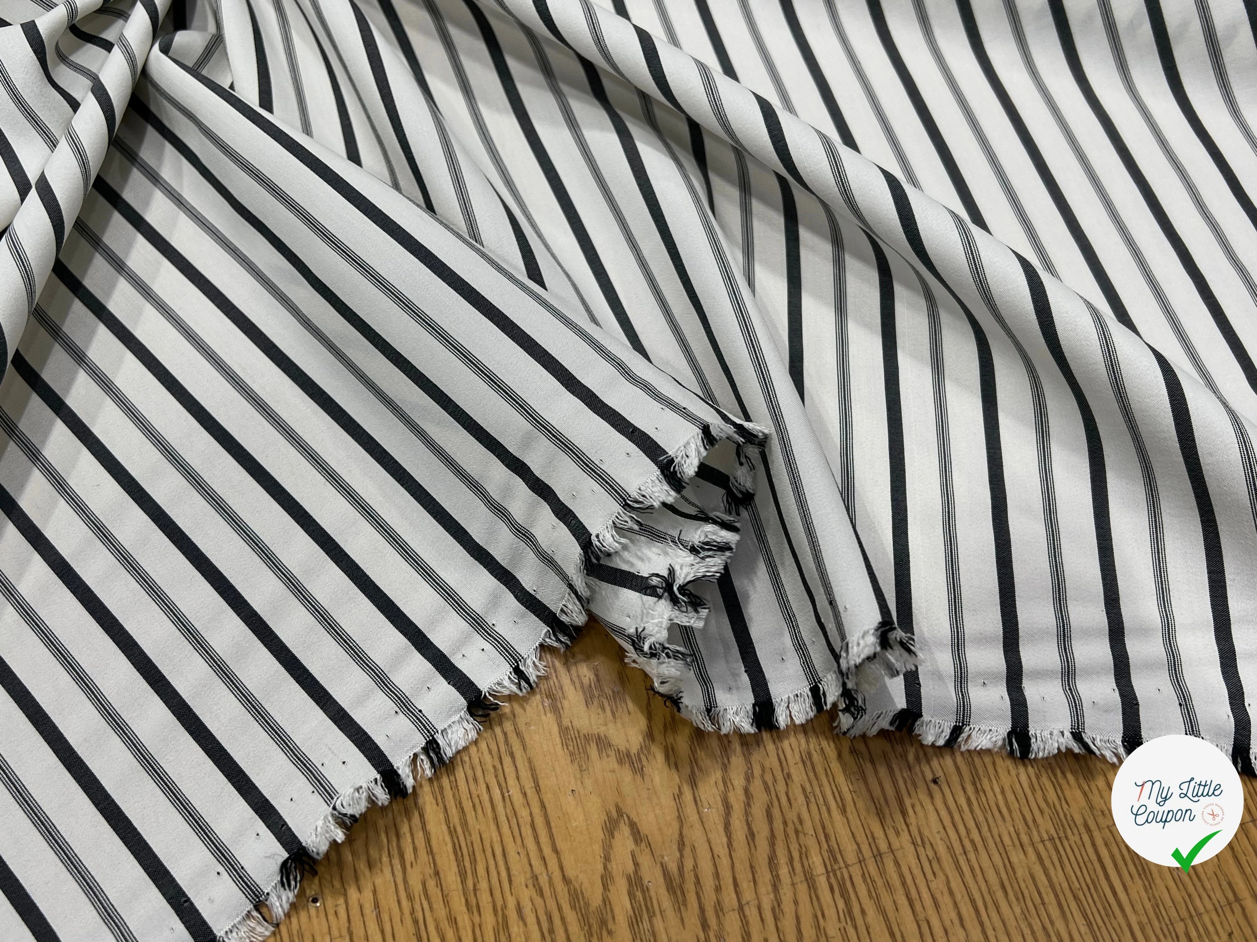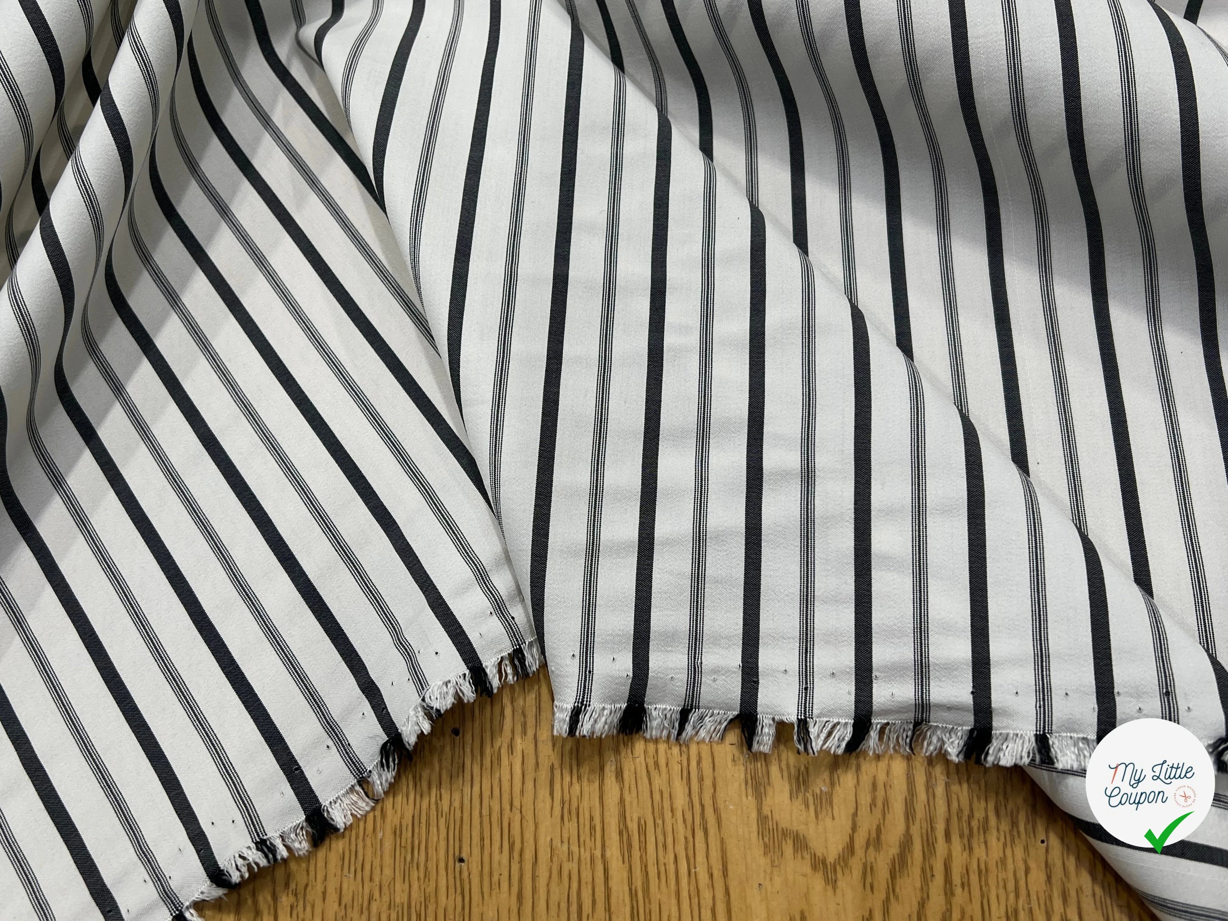 SOIE LÉGÈREMENT SATINÉ BLANC (CASSÉ) GROSSES RAYURES NOIRE 100% SOIE