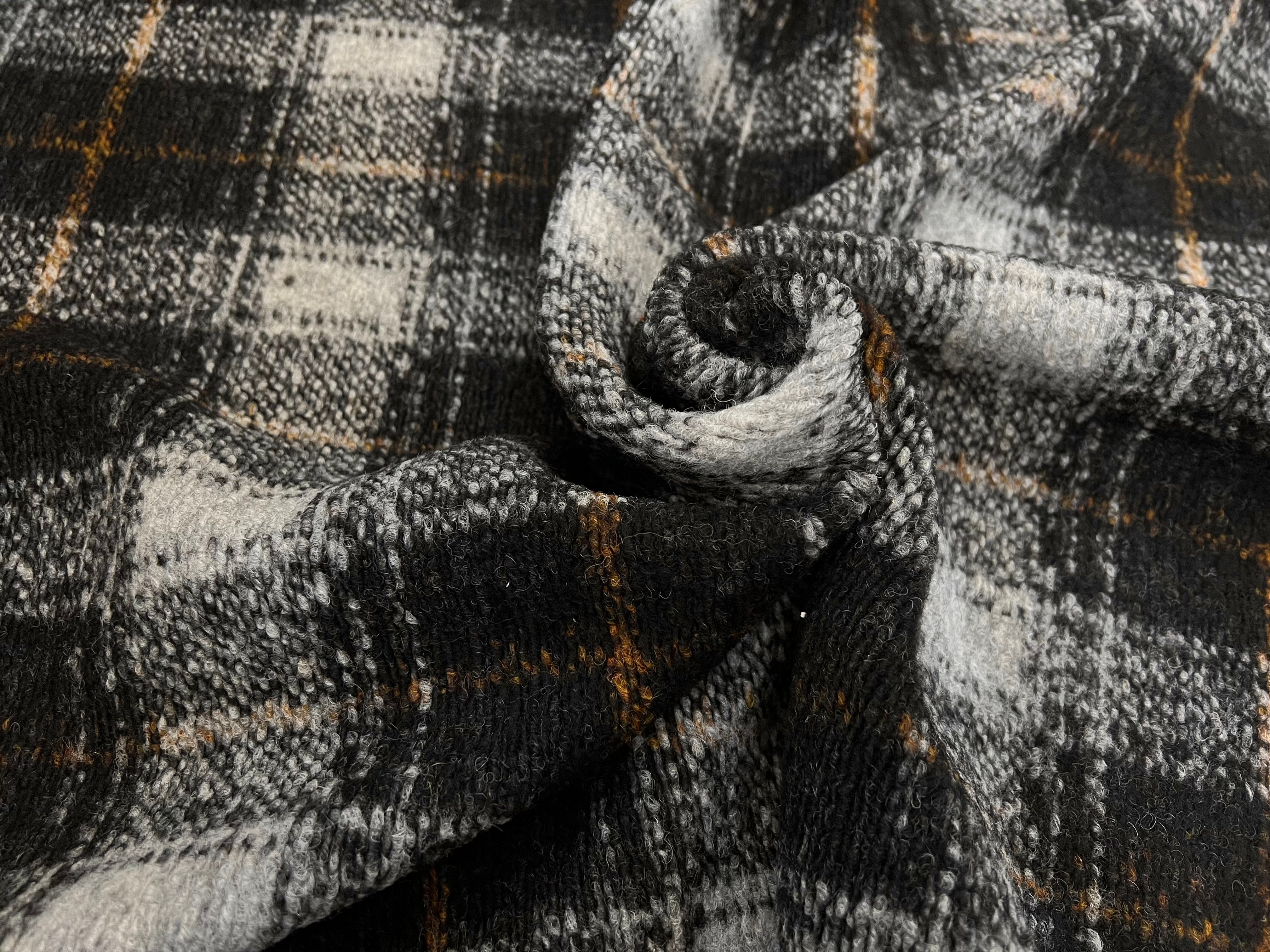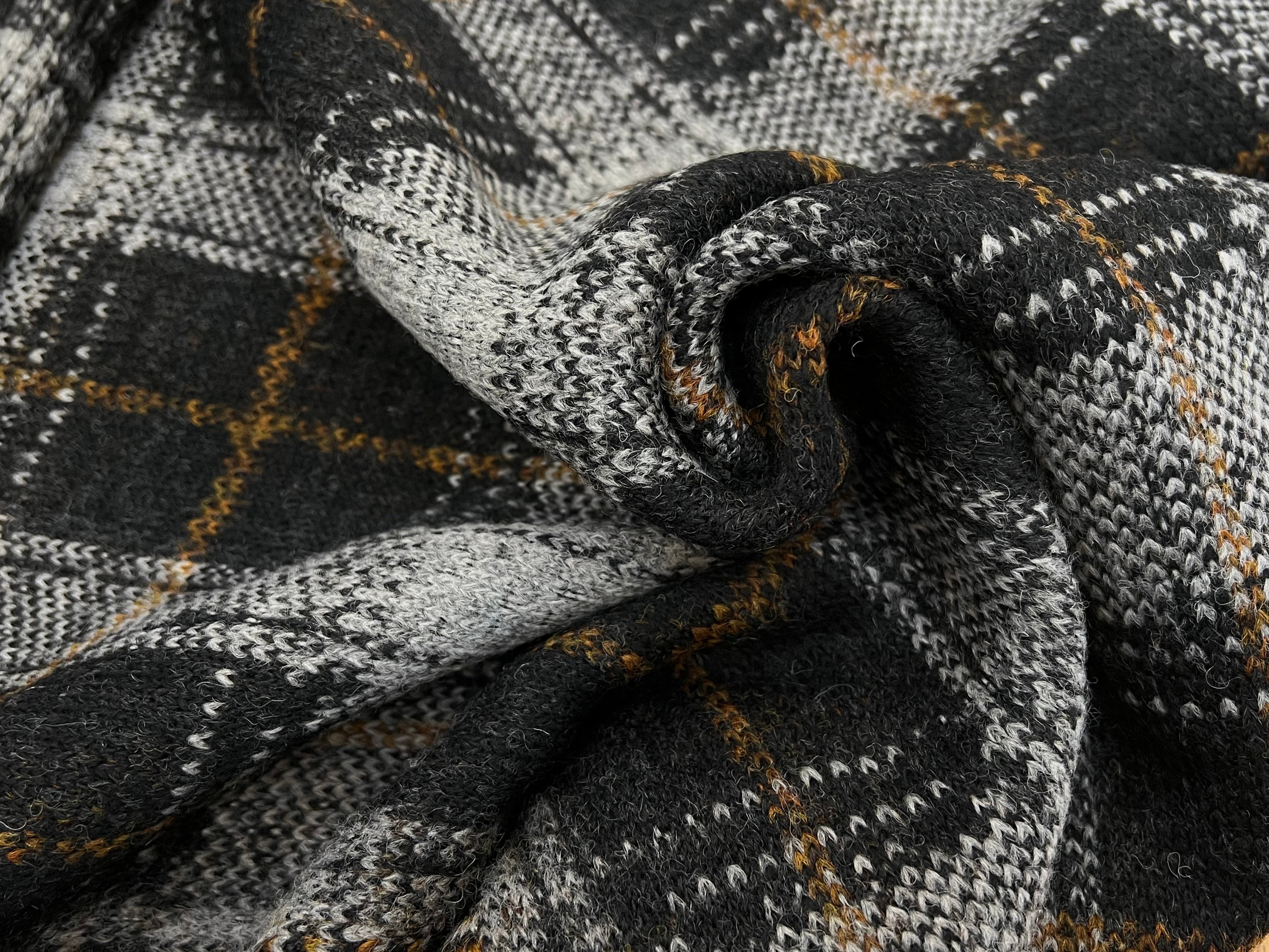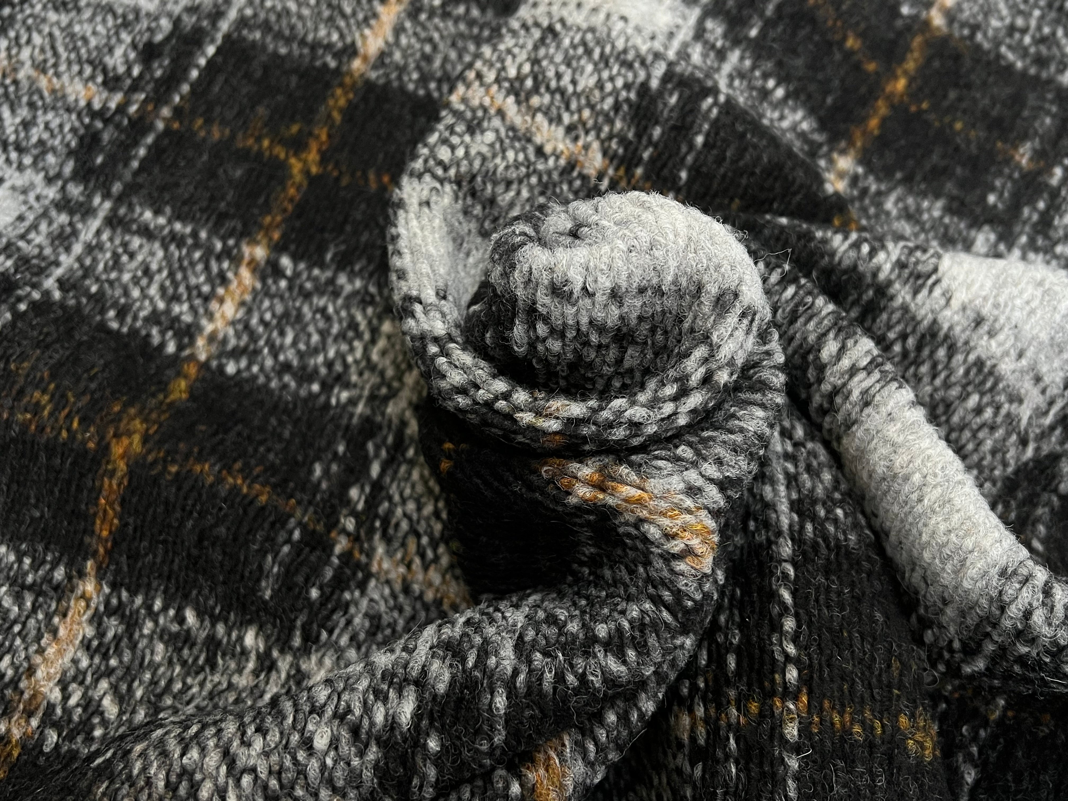 Ce lainage manteau tricoté associe chaleur, élégance et durabilité pour des créations hivernales de qualité. Composé de 63% laine Prince de Galles noir et gris, il offre un tombé fluide grâce à 33% polyester et 4% élasthanne, et se coordonne facilement par sa teinte chinée. Fabriqué en Italie, il privilégie savoir-faire et responsabilité.
