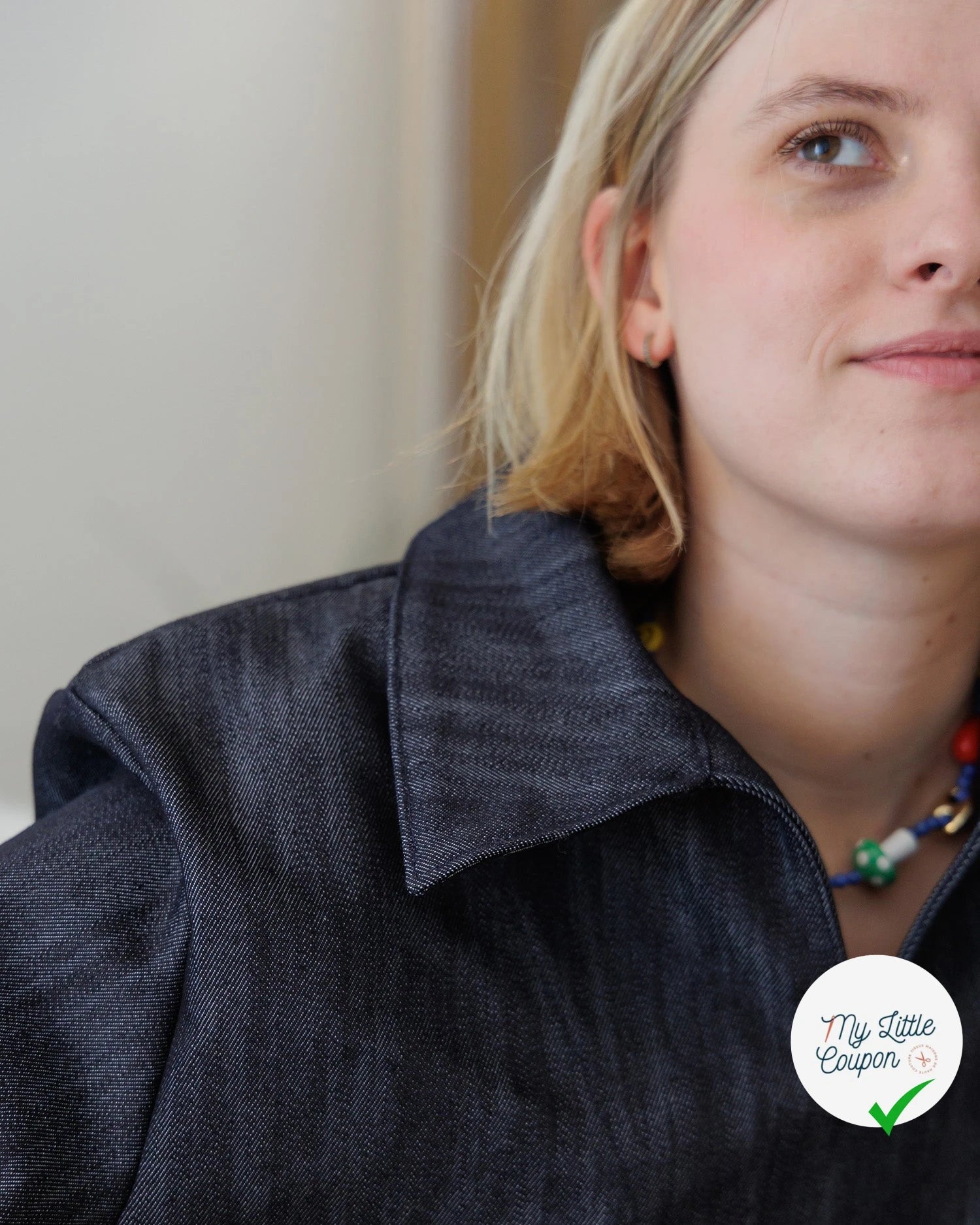 A very wide variety of materials can be used for this model: Jersey, medium-weight wool, jeans, gabardine, cotton satin, lightweight damask.... Weight: 250-400 g/m², 7.4-11.8 oz/yd².