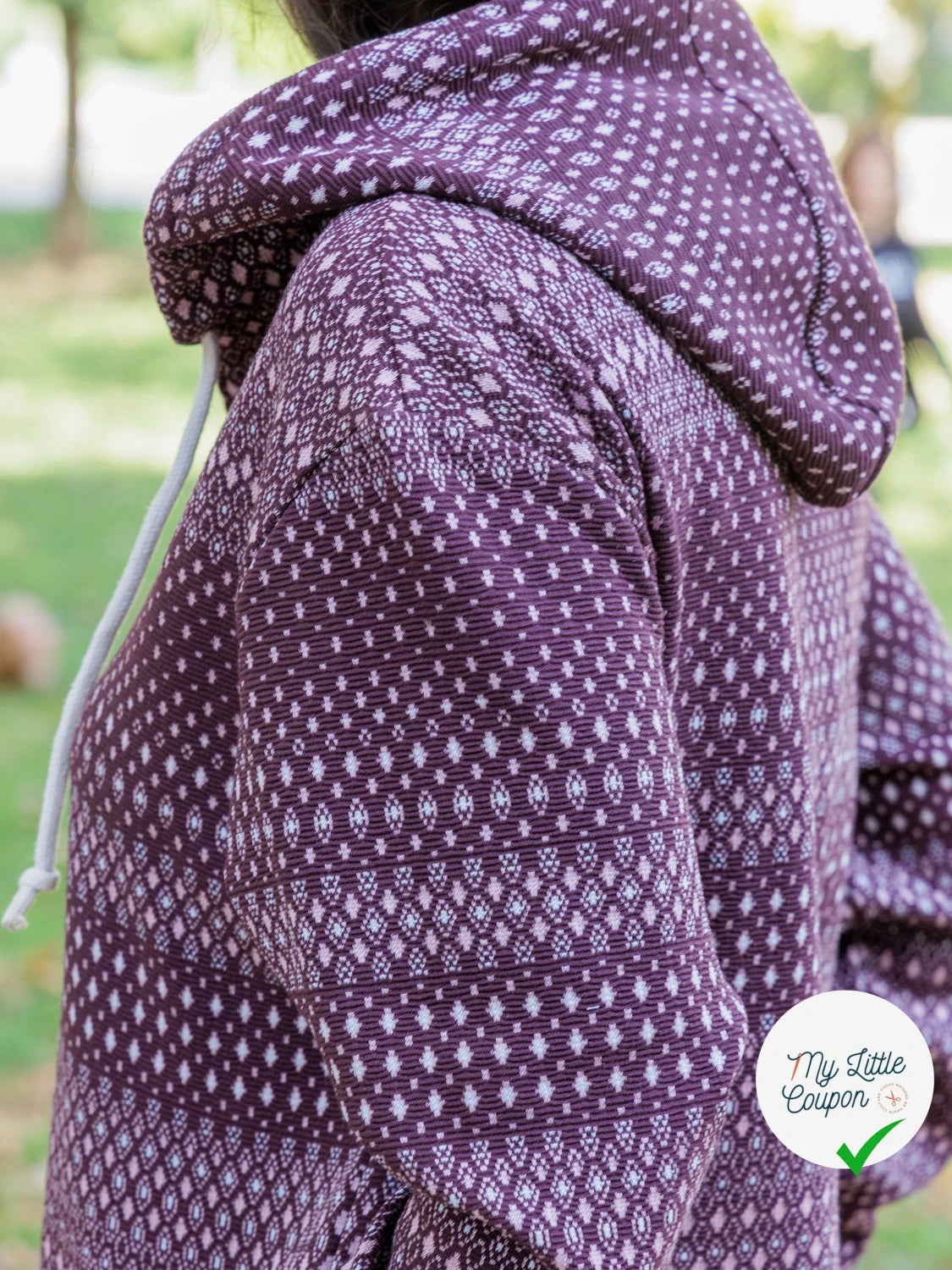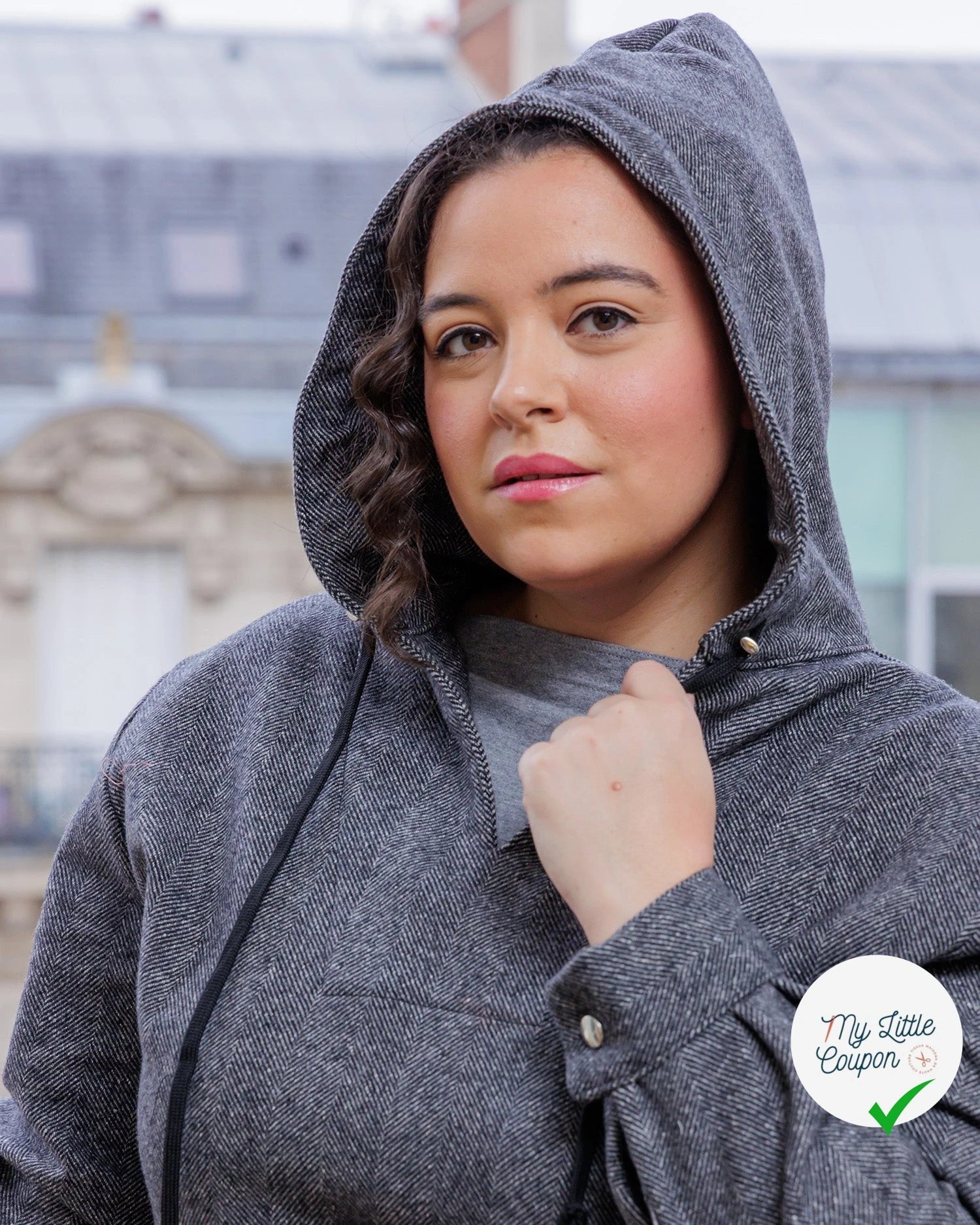 Transform your wardrobe with the Nyx sewing pattern, a modern and comfortable basic. This model offers a multitude of options to suit all your desires: choose between a collar or a hood and several finishes for the bottom: an elastic waist, a ribbed edge, or a straight cut. With 6 possibilities in a single pattern, Nyx is a must-have in your wardrobe. Available in sizes S to 3XL. Practical and elegant details, such as side pockets, add a functional touch to this model while enhancing its charm. This pattern is ideal for creating a comfortable and stylish piece to wear daily, whether for a casual outing or a more dressed-up outfit. Nyx can be made in a wide variety of materials, allowing you to customize your creation according to your needs and the season: jersey, medium-weight wool, denim, gabardine, cotton satin, or even a lightweight damask. Recommended weight: 250-400 g/m² (7.4-11.8 oz/yd²). Create your Nyx tunic and let your creativity shine for a piece that combines style, comfort, and functionality. 1 pattern / 6 possibilities from S to 3XL. Sewing pattern designed with passion in France.