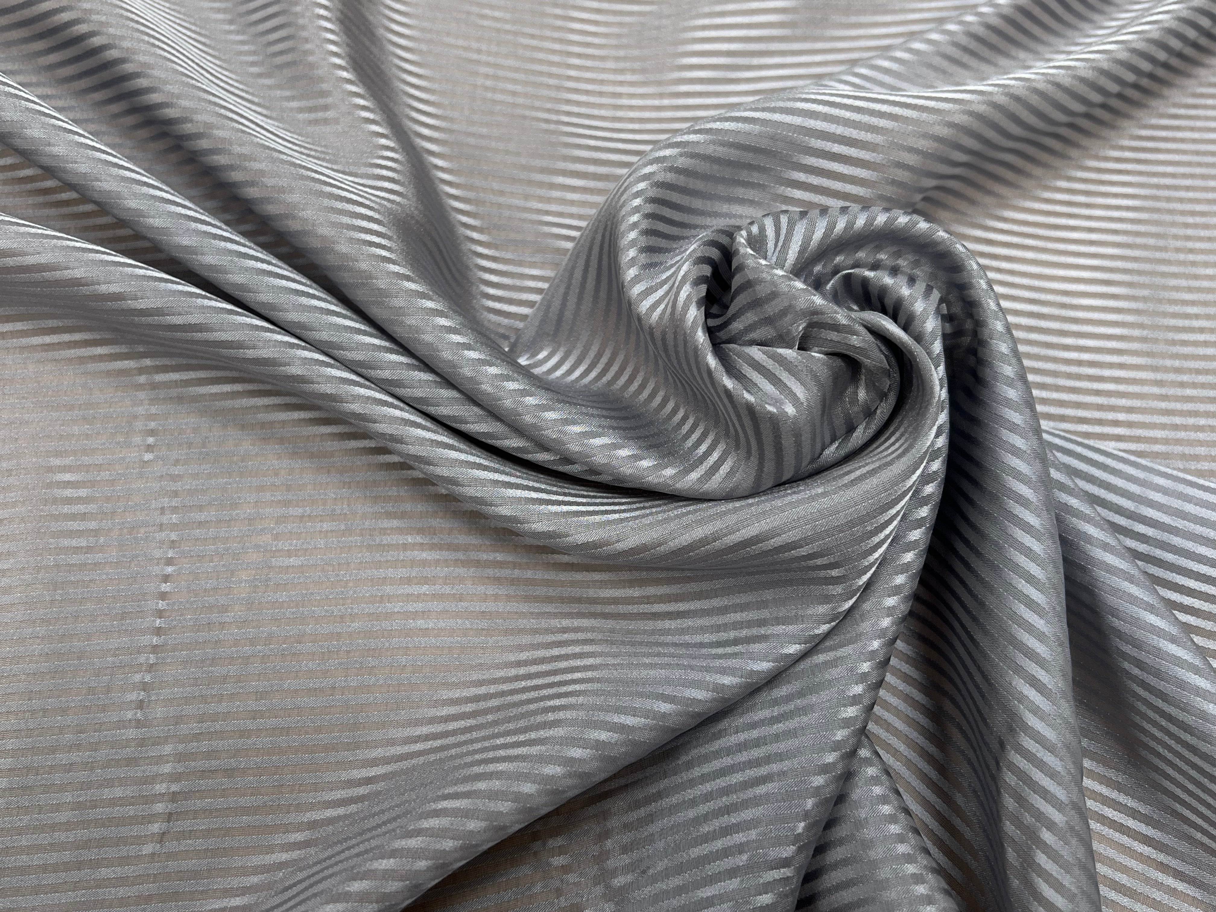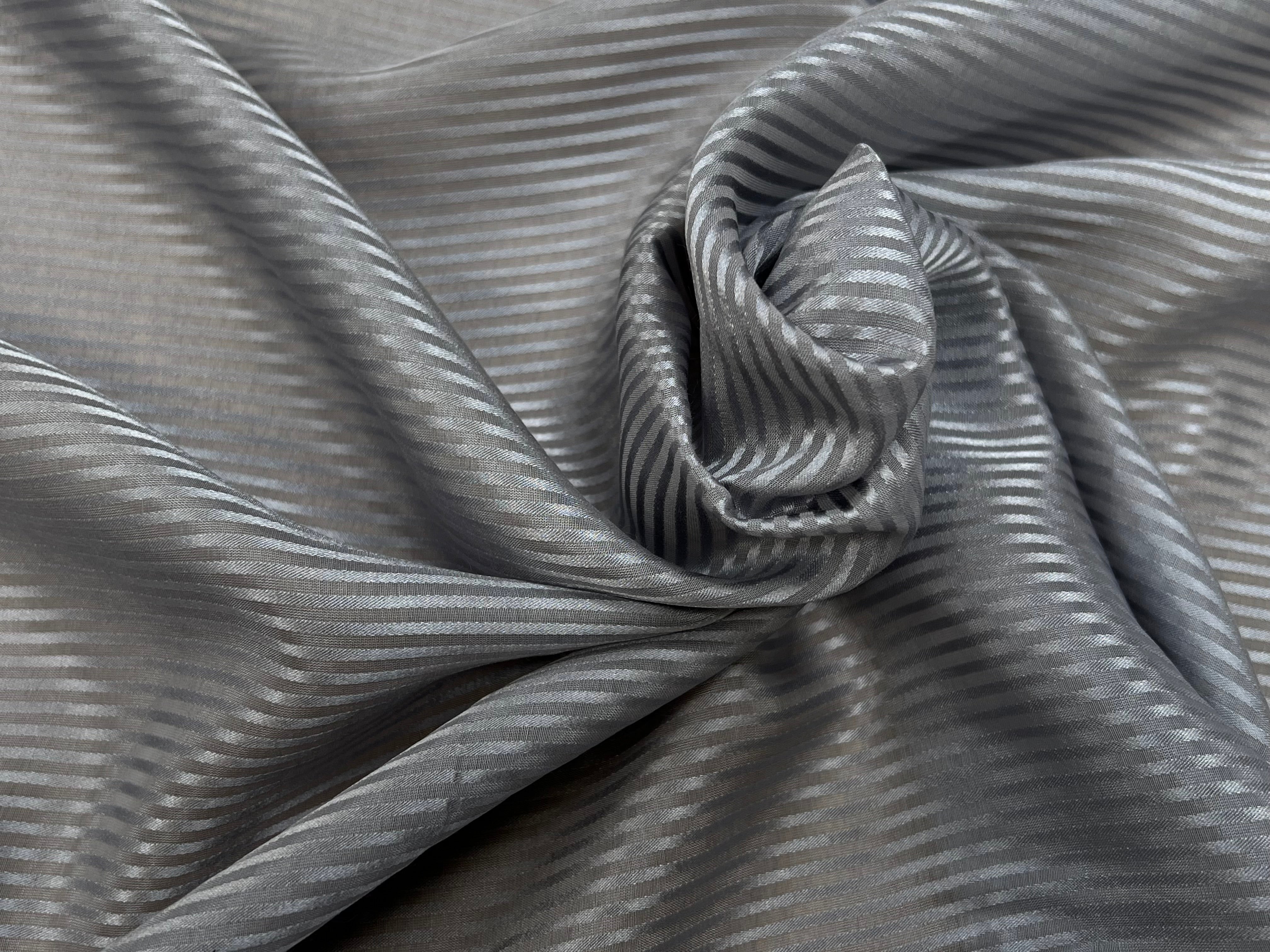 VOILE DE SOIE À RAYURE GRIS 100% SOIE