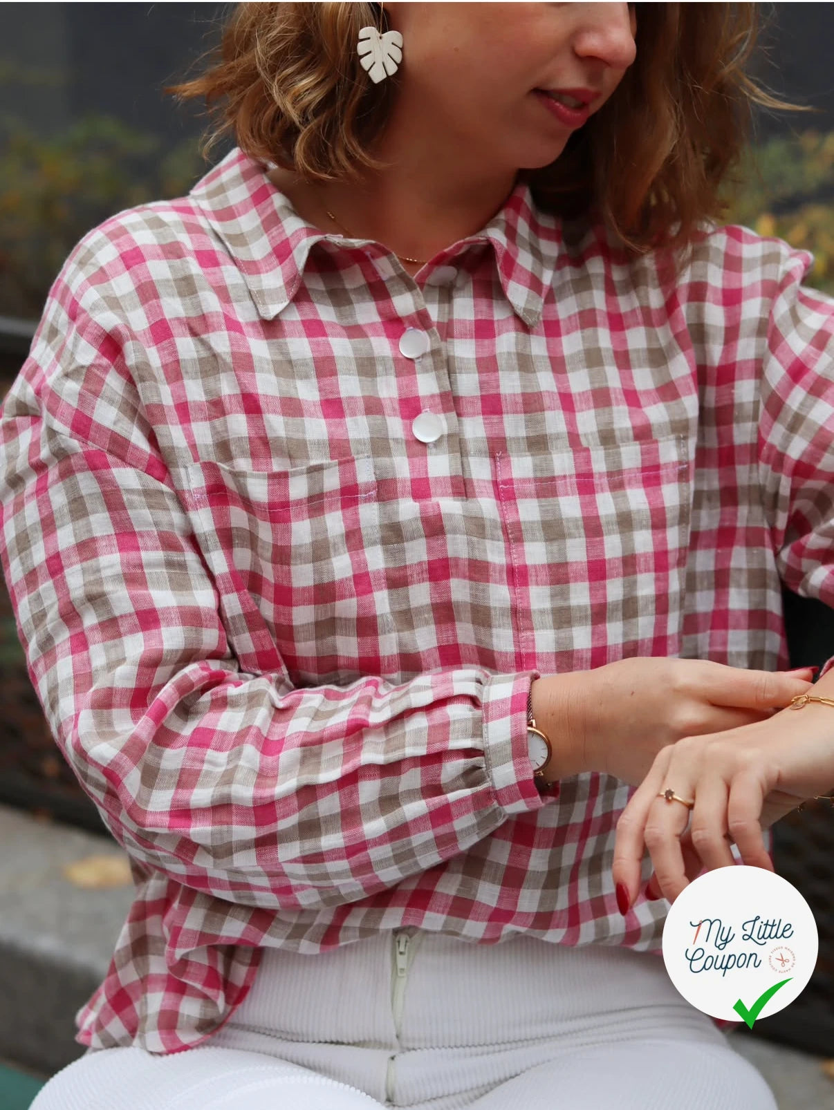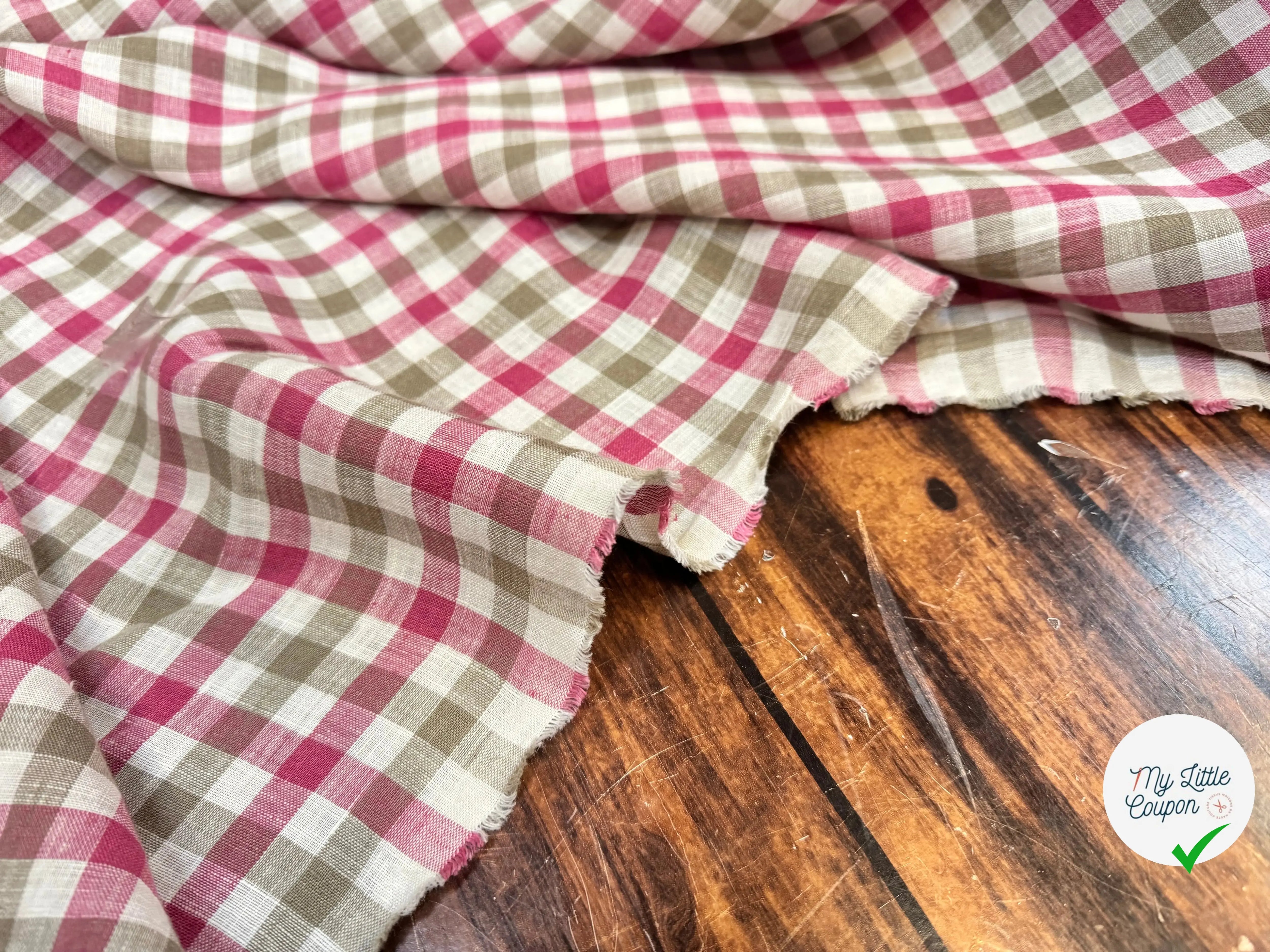 Découvrez le tissu LIN VICHY ROSE BLANC MARRON