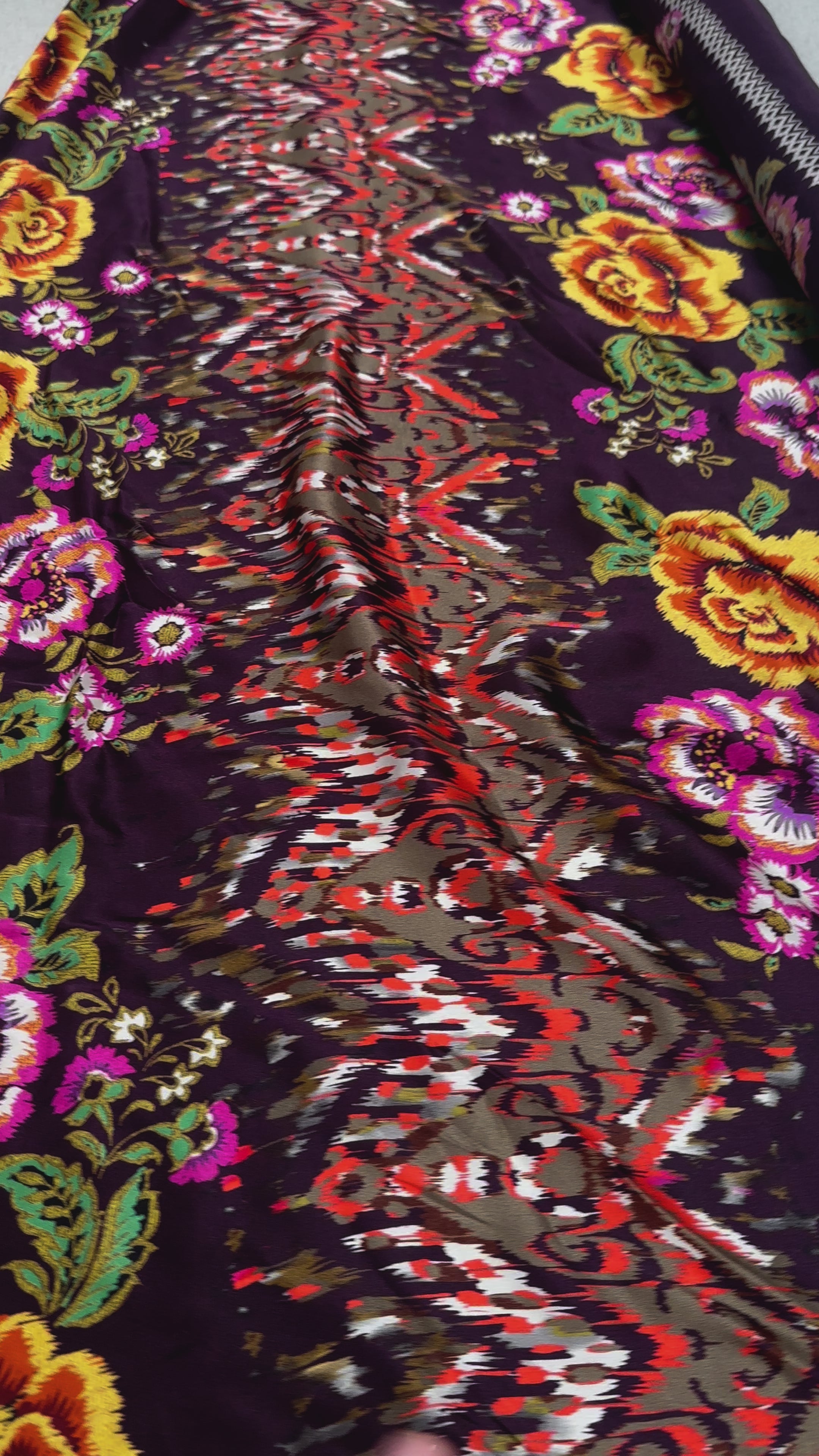 (Fall) SILK SATIN ITALIAN ON BROWN BACKGROUND AND FLOWERS