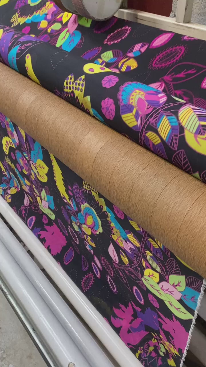PANCAKE GEORGETTE Fiori psichedelicic supondo nero silk