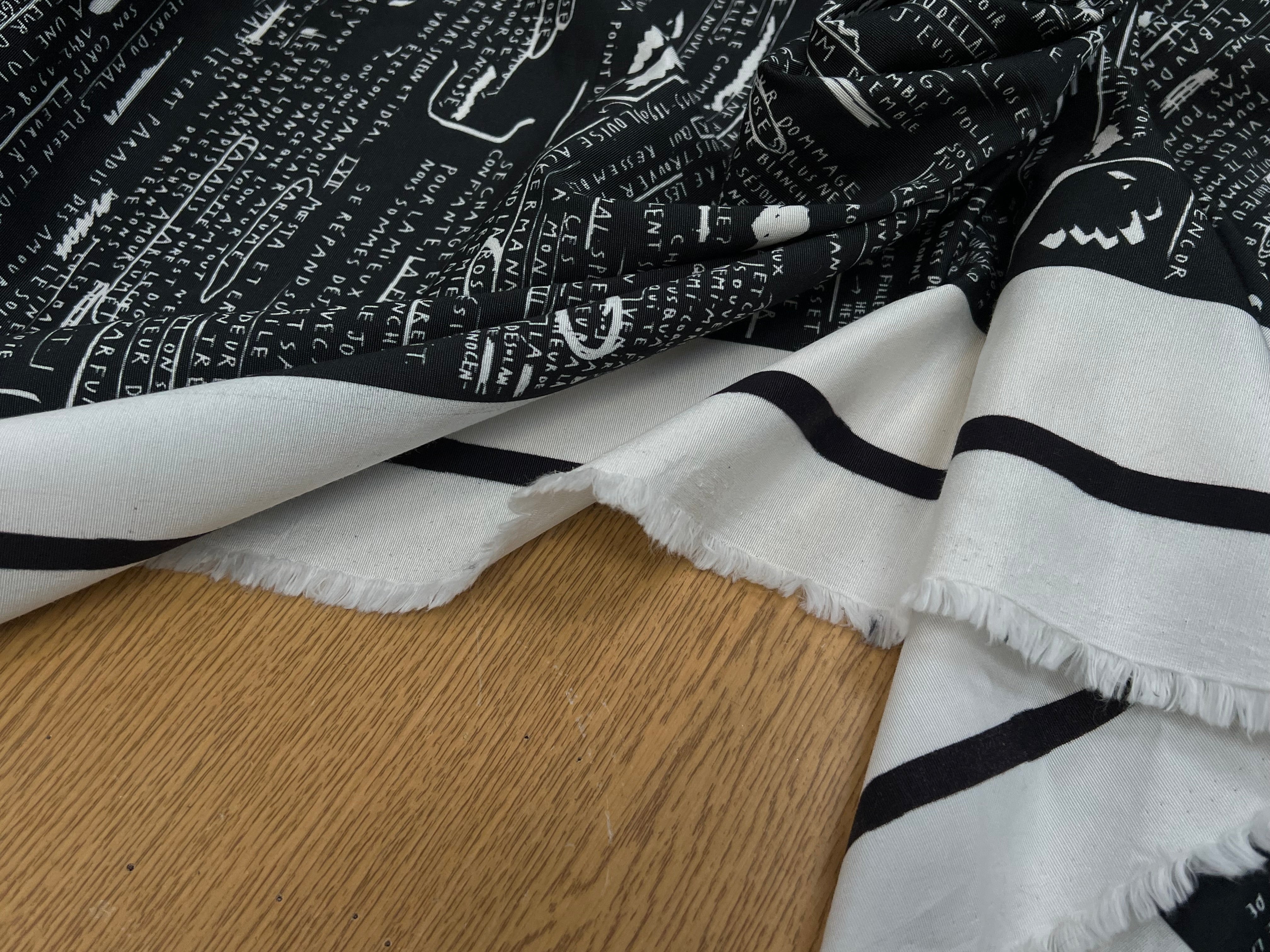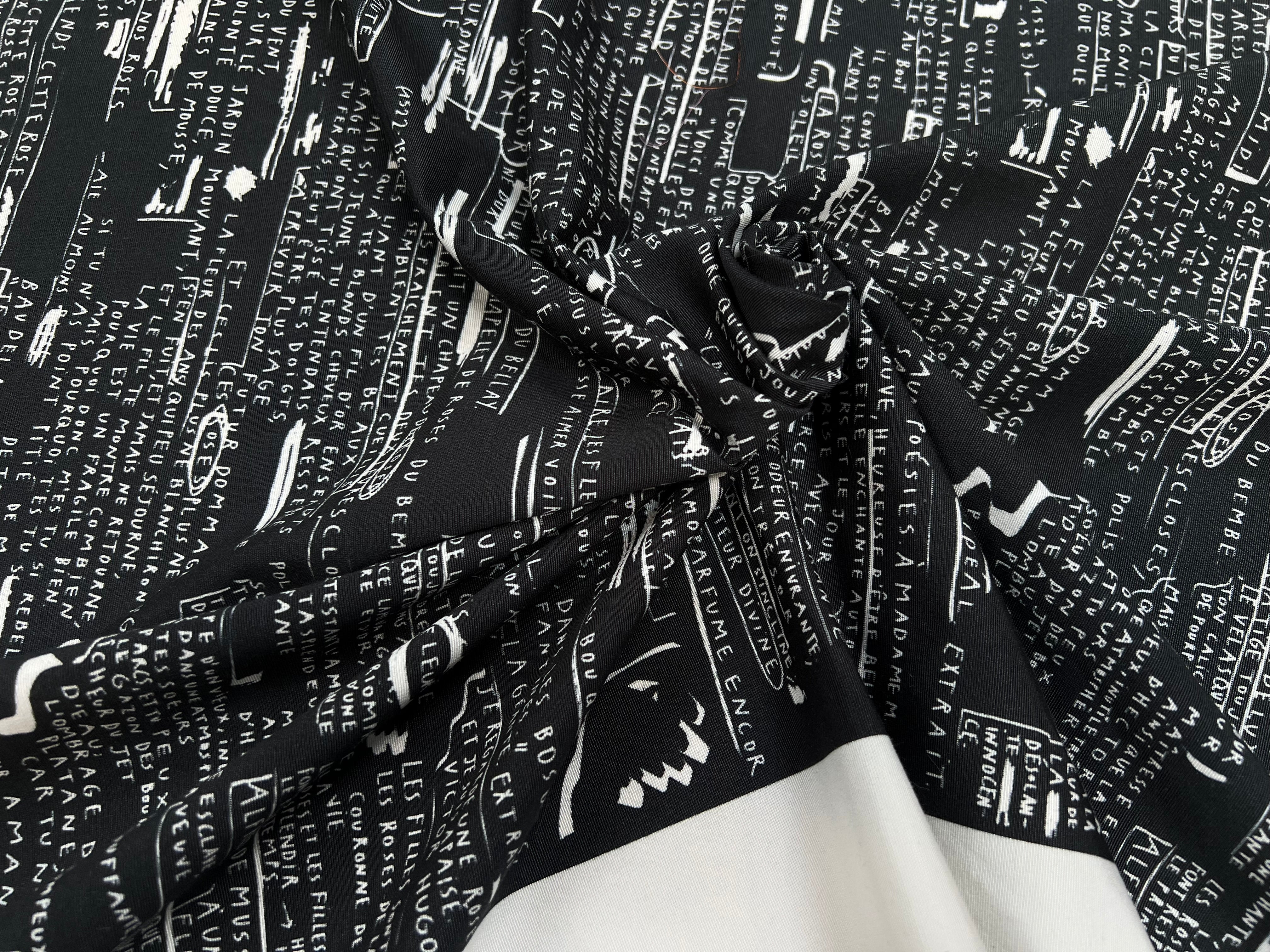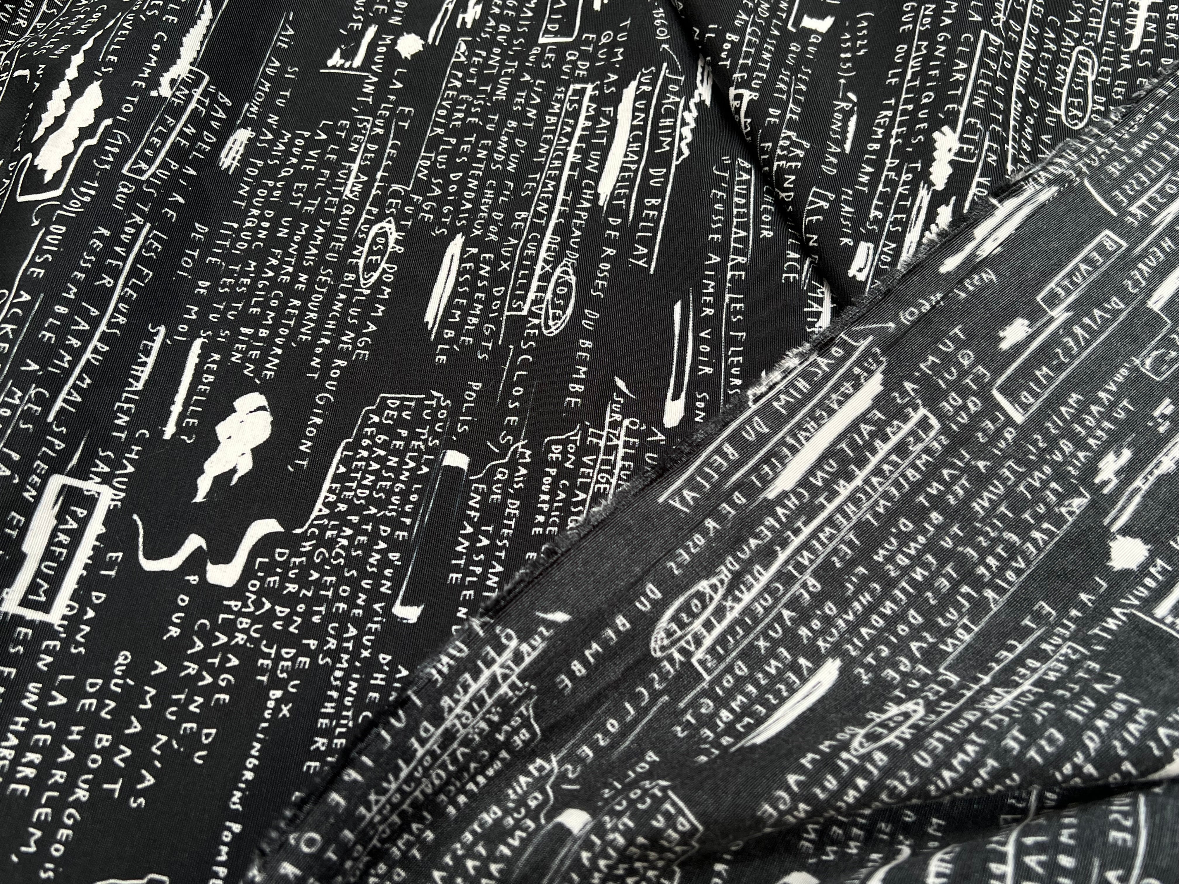 CRÈPE VISCOSE FOND MOTIF TEXTE 160CM