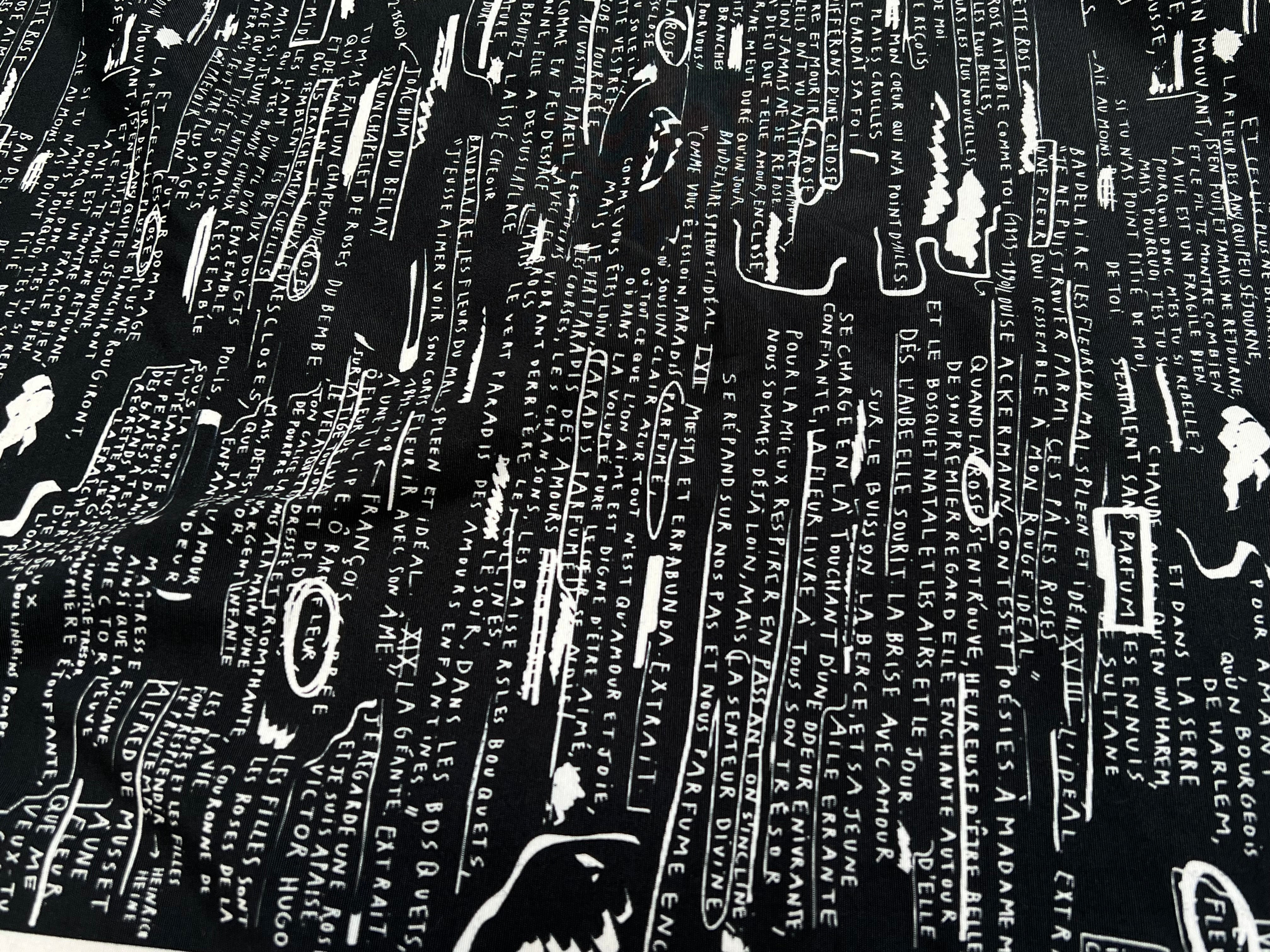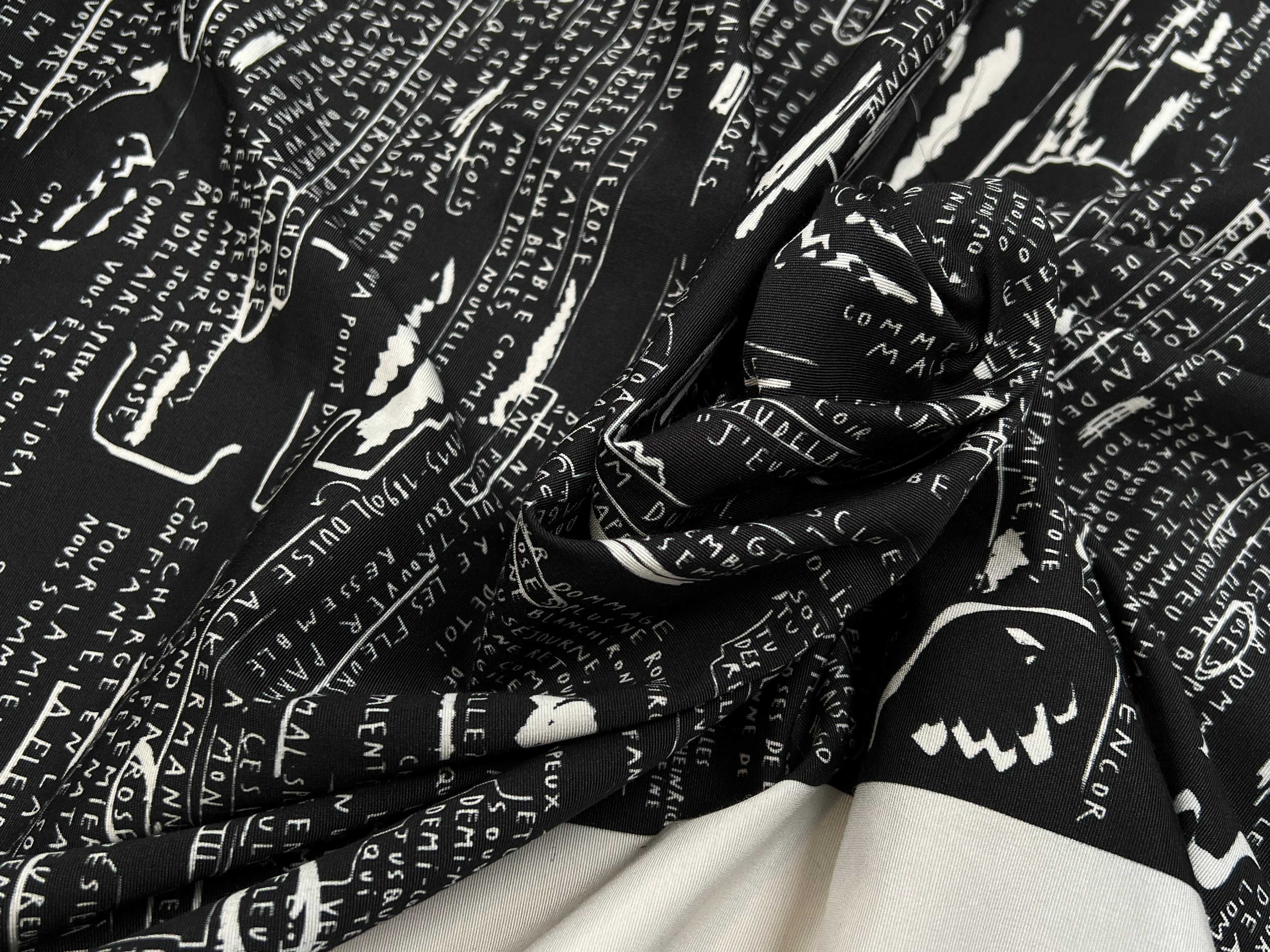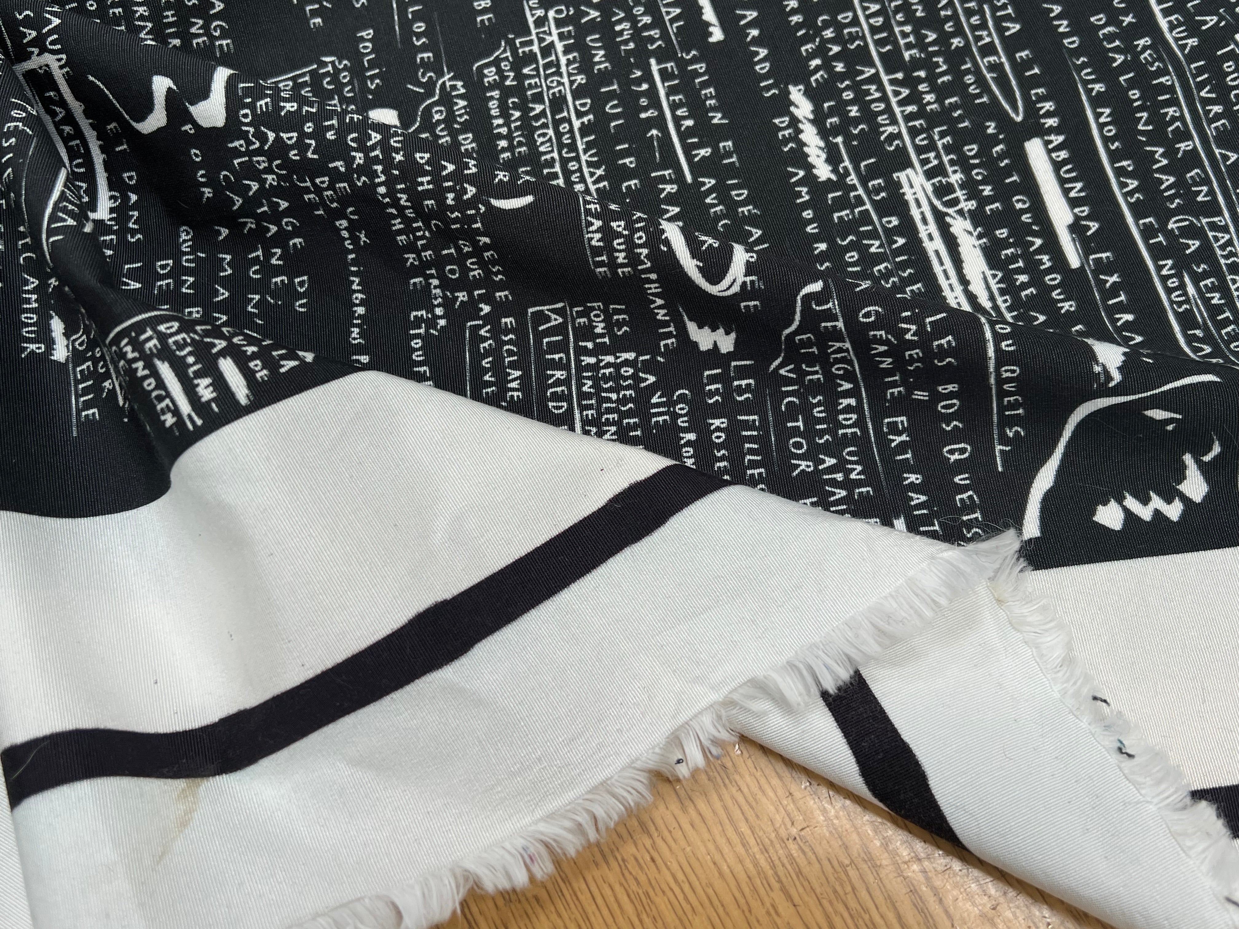 CRÈPE VISCOSE FOND MOTIF TEXTE 160CM