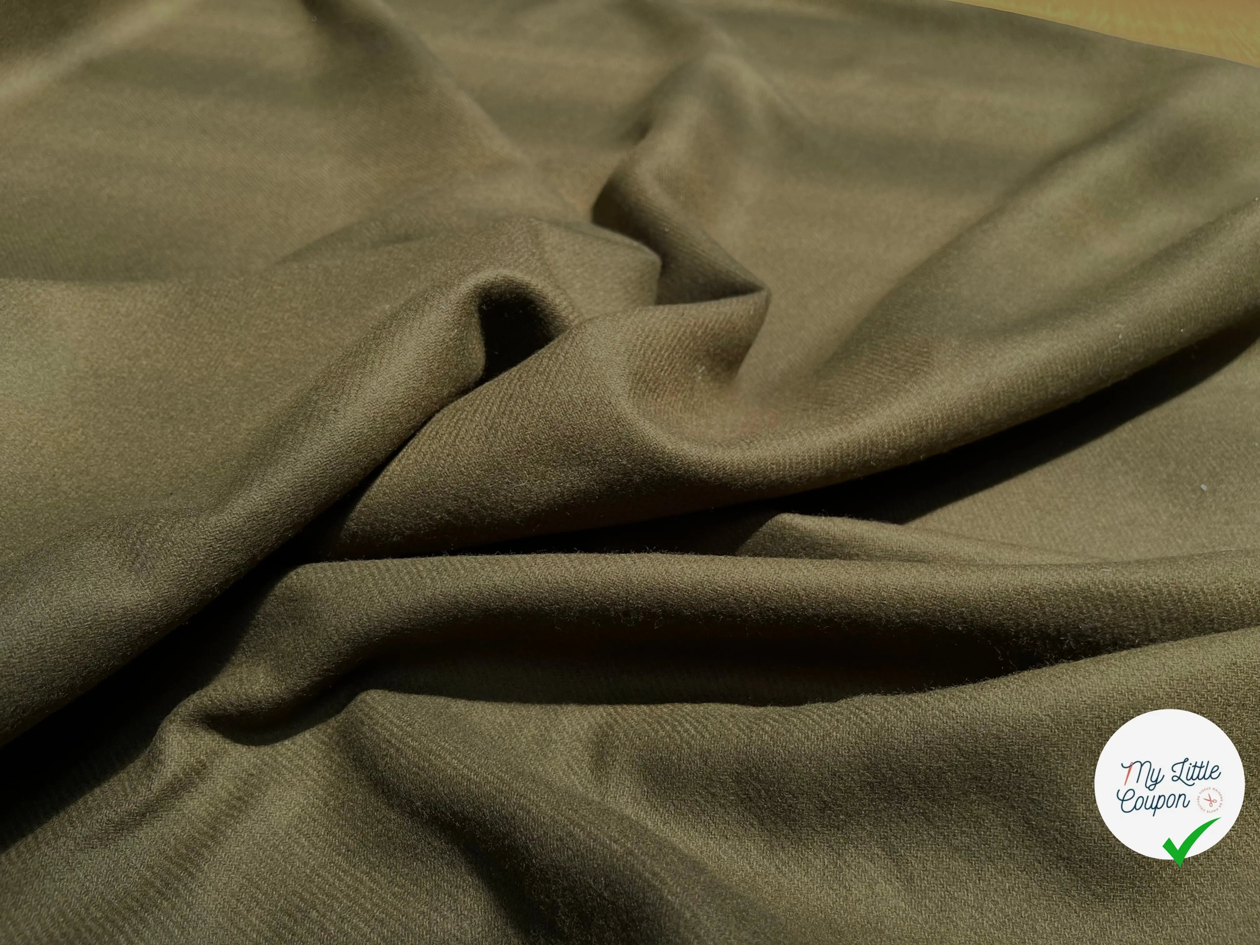 Discover the caban khaki wool, an exceptional fabric made in Italy, ideal for all your sewing creations. With a width of 145 cm and a 100% cotton composition, this fabric combines comfort and quality, offering unmatched softness for your garments. Weighing 590 g/ml or 407 g/m², it is perfectly suited for robust pieces such as coats, jackets, or winter accessories.