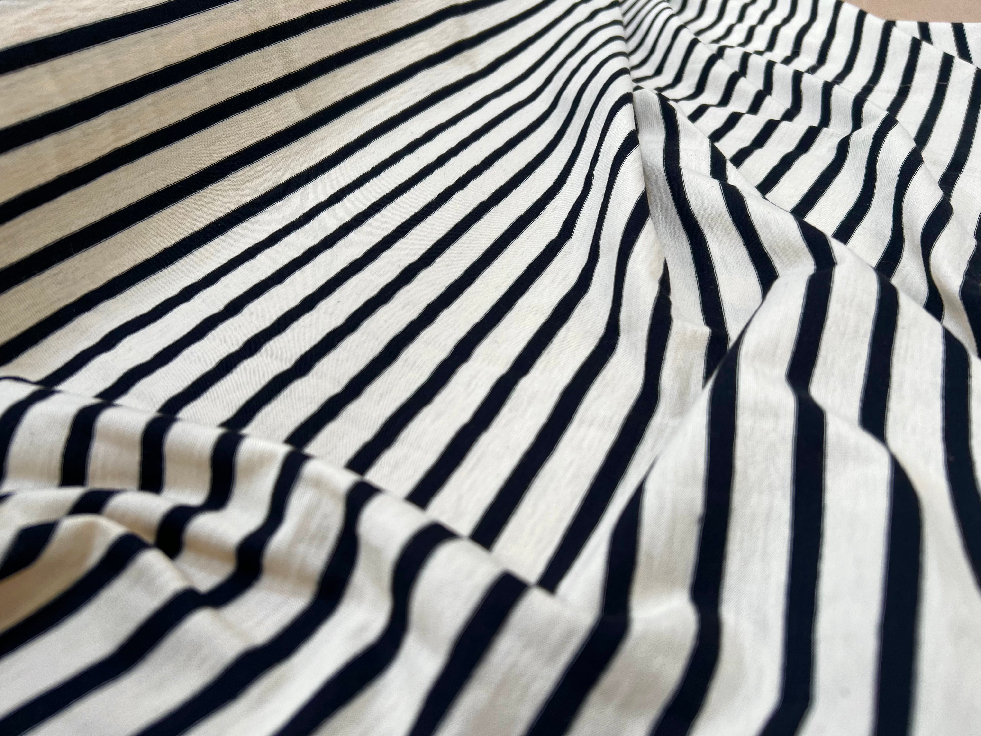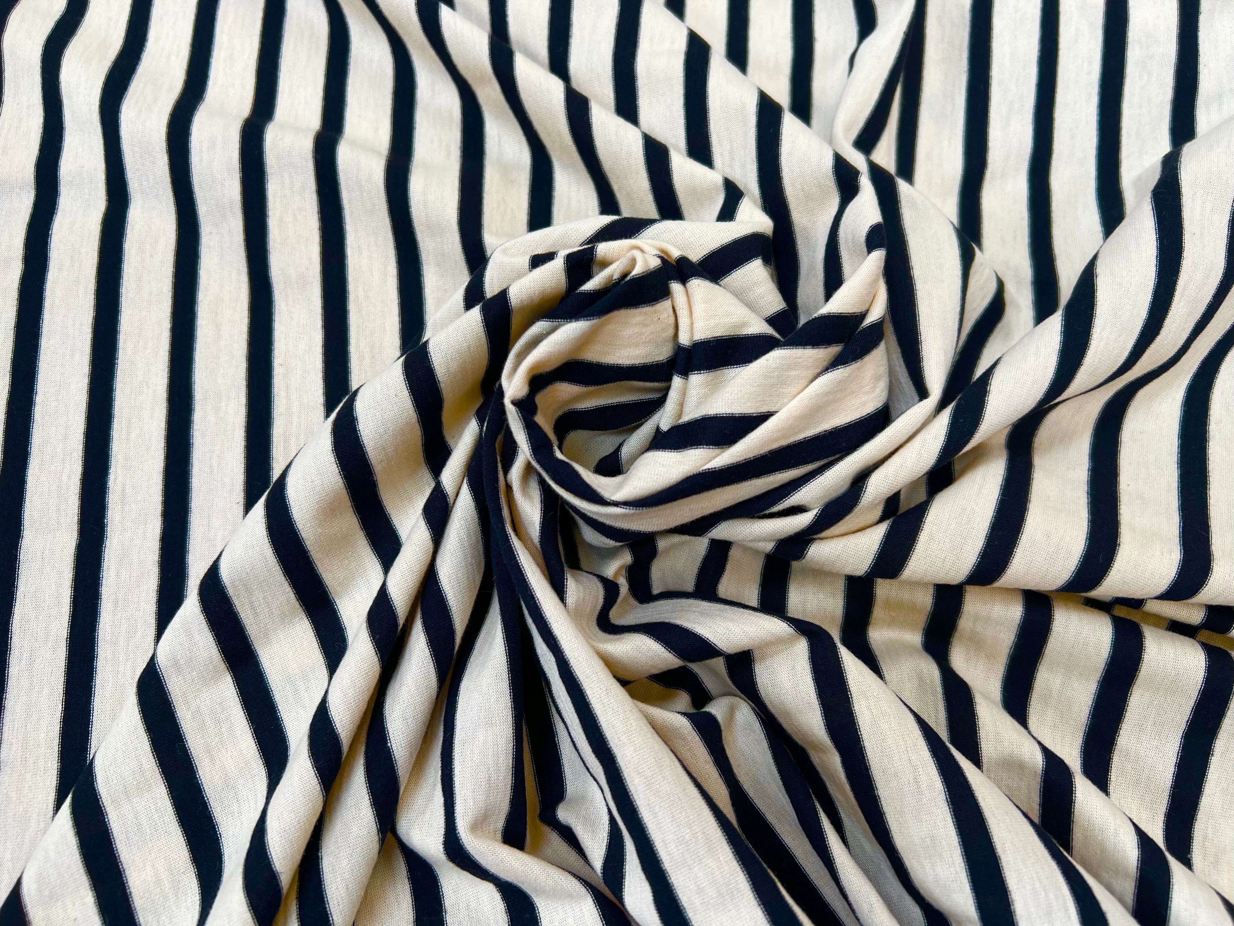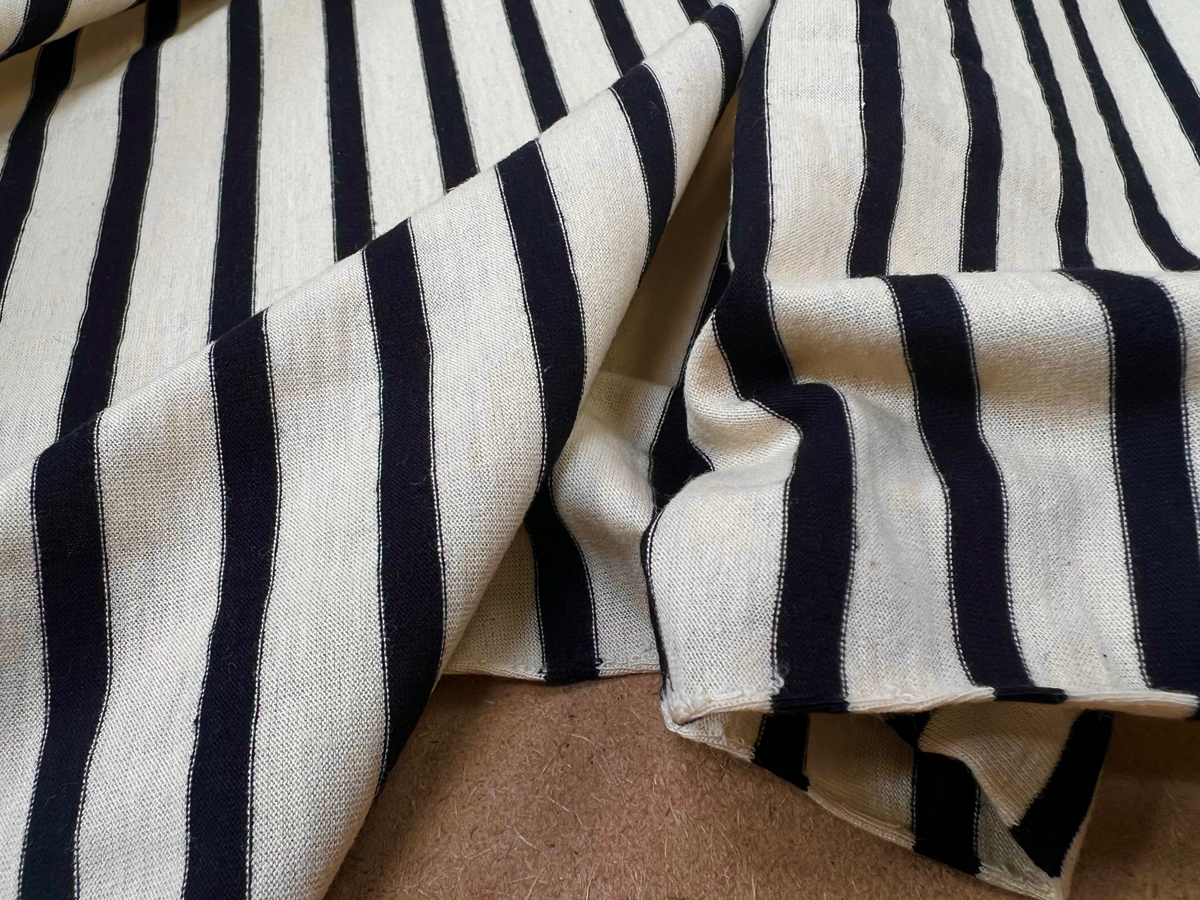 BLACK STRIPED COTTON JERSEY WOOLLY ECRU BACKGROUND