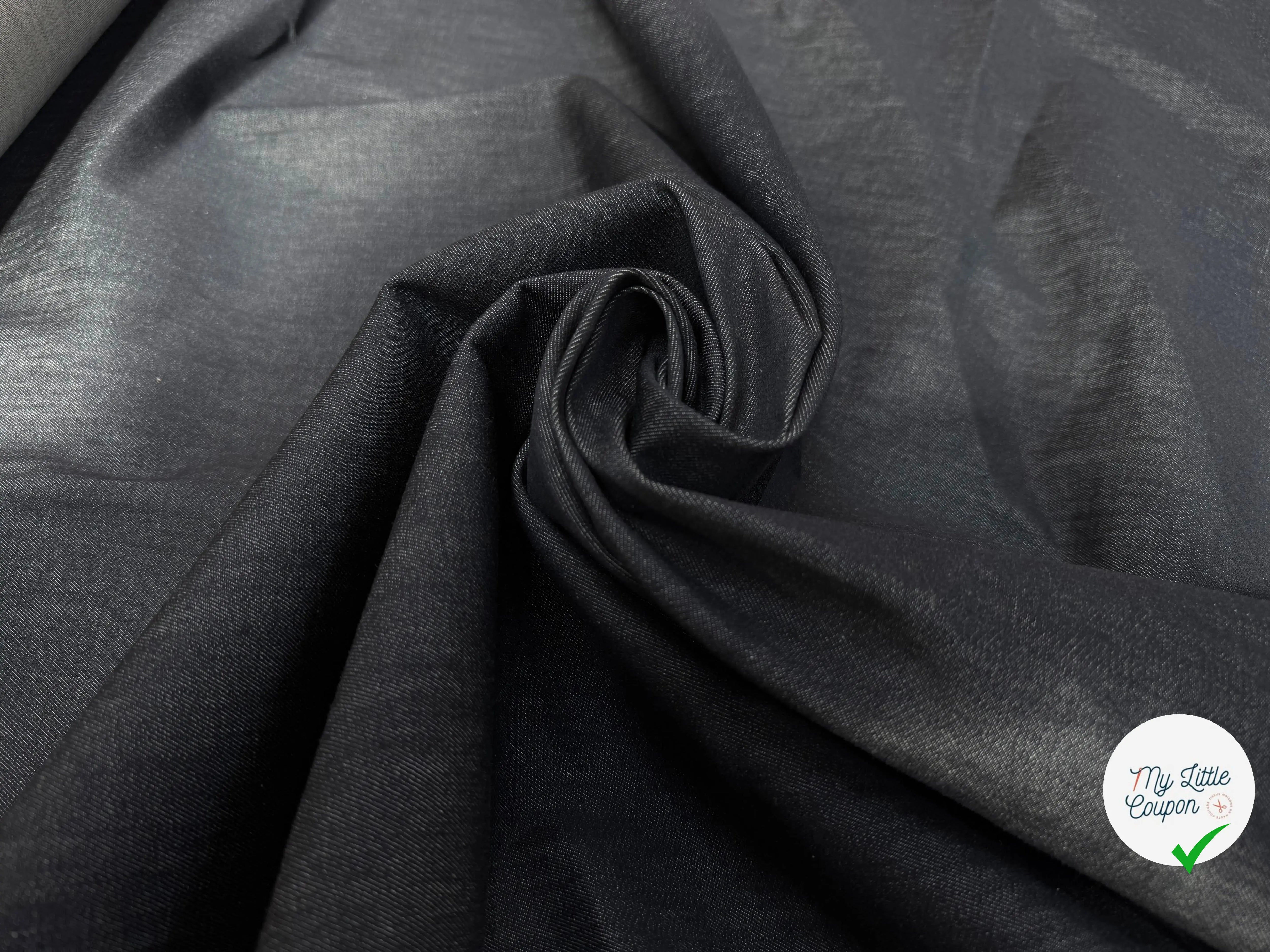 Descubra nuestro DENIM UNI NEGRO ELÁSTICO, una tela de alta calidad fabricada en Italia, perfecta para todas sus creaciones de moda. Con una composición de 98% algodón y 2% elastano, este denim ofrece una excelente elasticidad y una comodidad inigualable, haciendo de cada prenda una verdadera obra maestra. Esta tela es ideal para prendas de moda y duraderas, respaldada por un rendimiento excepcional.