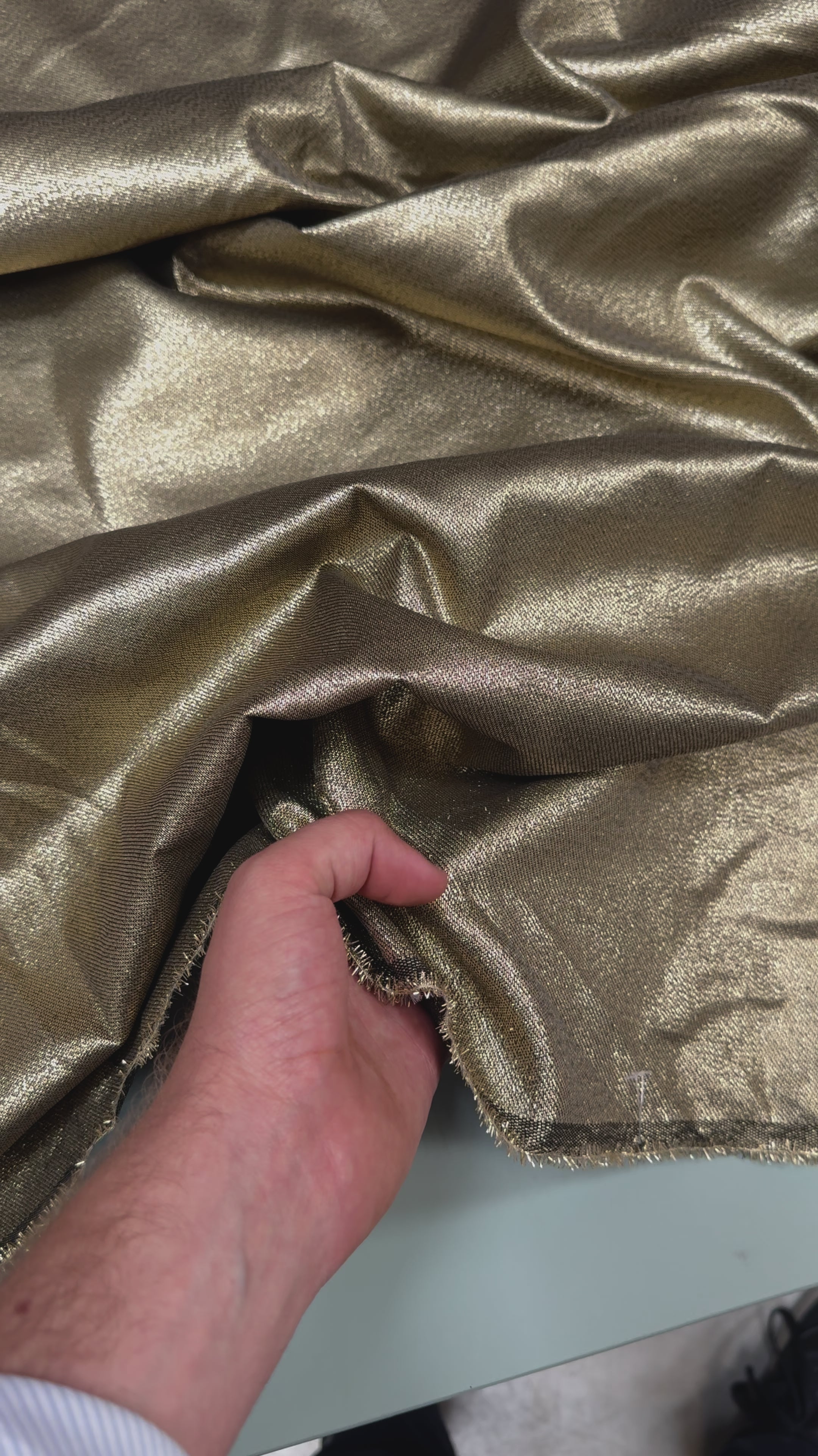 Descubra la elegancia y calidad de nuestro lienzo Lamé Bi-Face, hecho en Italia. Esta suntuosa tela, compuesta por 70% de poliéster y 30% de viscosa, ofrece un acabado lujoso y brillante, ideal para creaciones sofisticadas. Con una capa generosa de 173 cm, esta tela tiene un gramismo lineal de 180 g/ml, asegurando un hermoso atuendo y una durabilidad óptima. Su color de oro resplandeciente traerá un toque de glamour y refinamiento a sus proyectos de costura, perfecto para ropa de noche, accesorios o elementos decorativos.