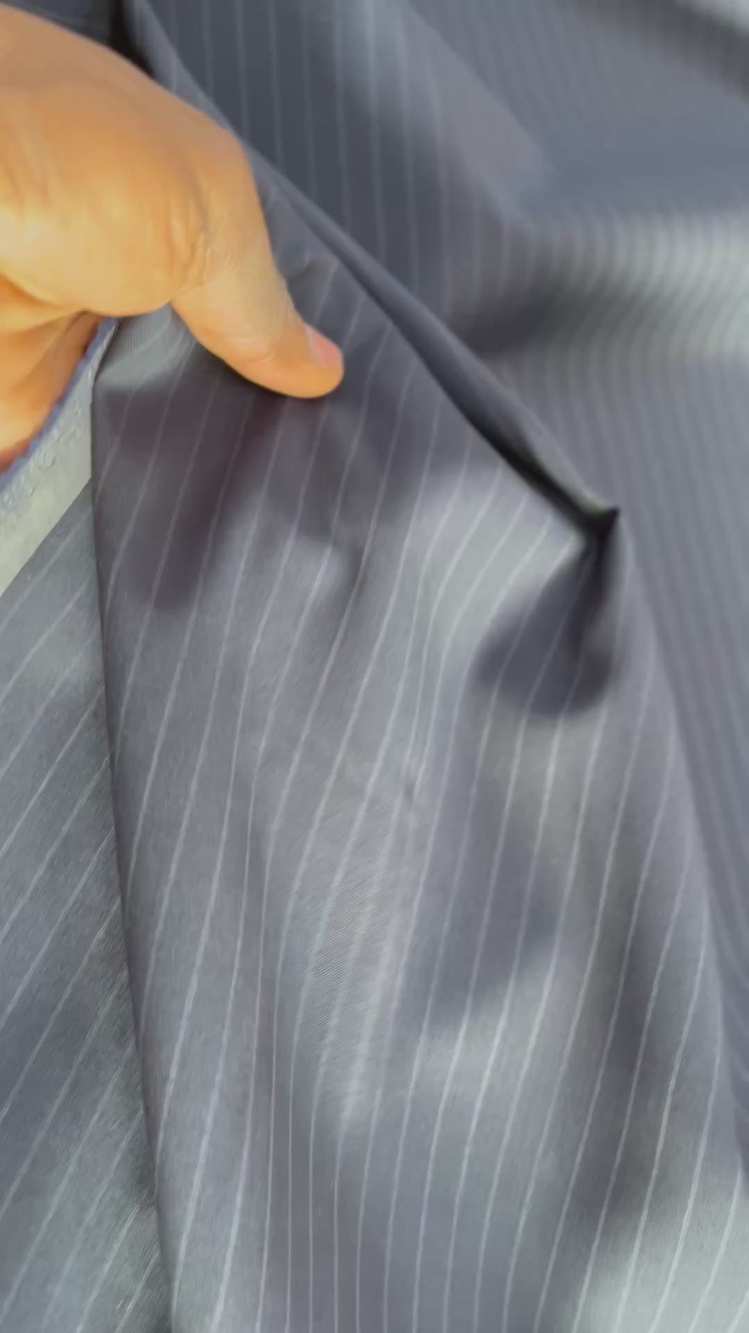 Drapería de lana fina a rayas azul marino, elástica y repelente al agua