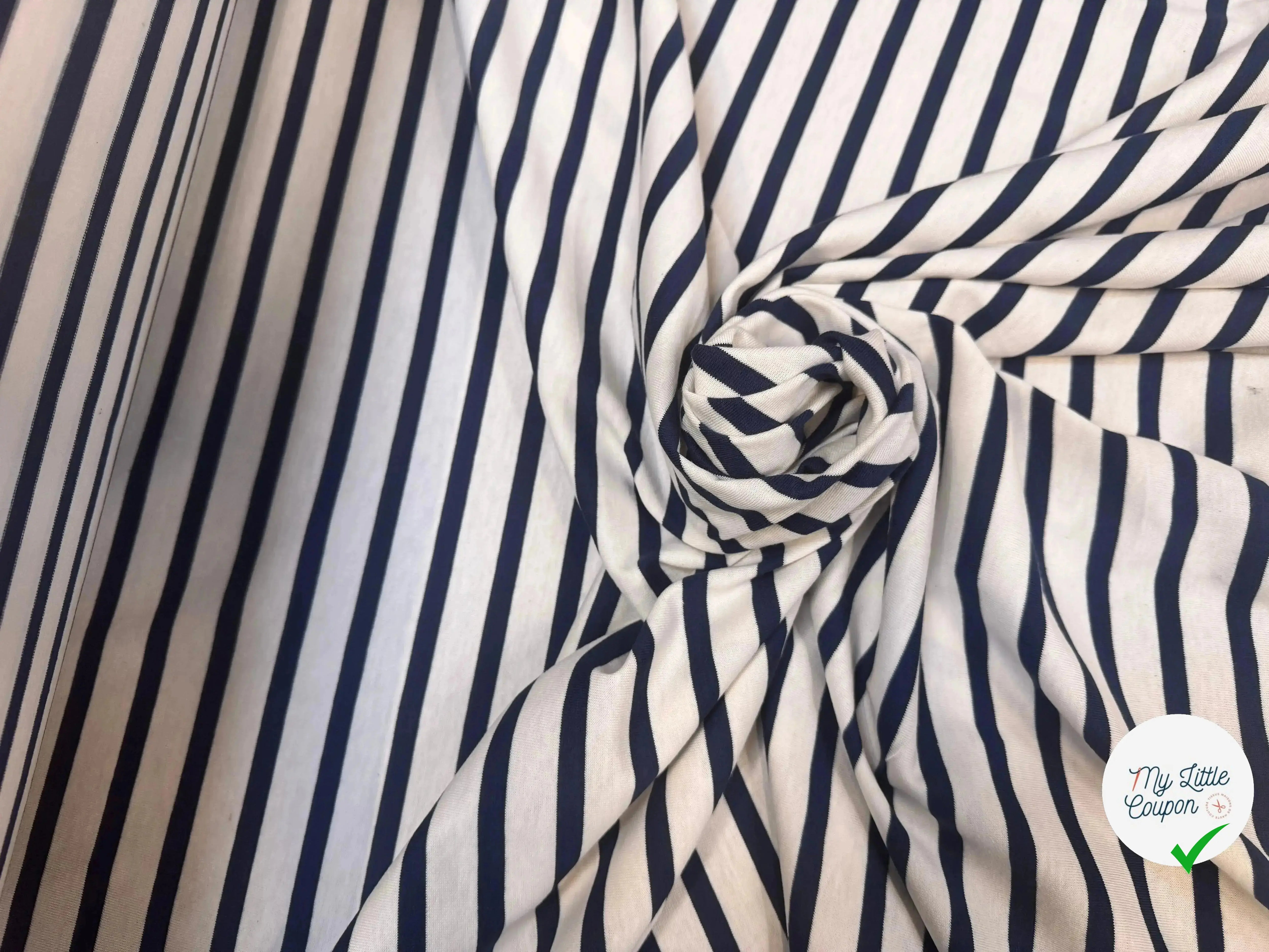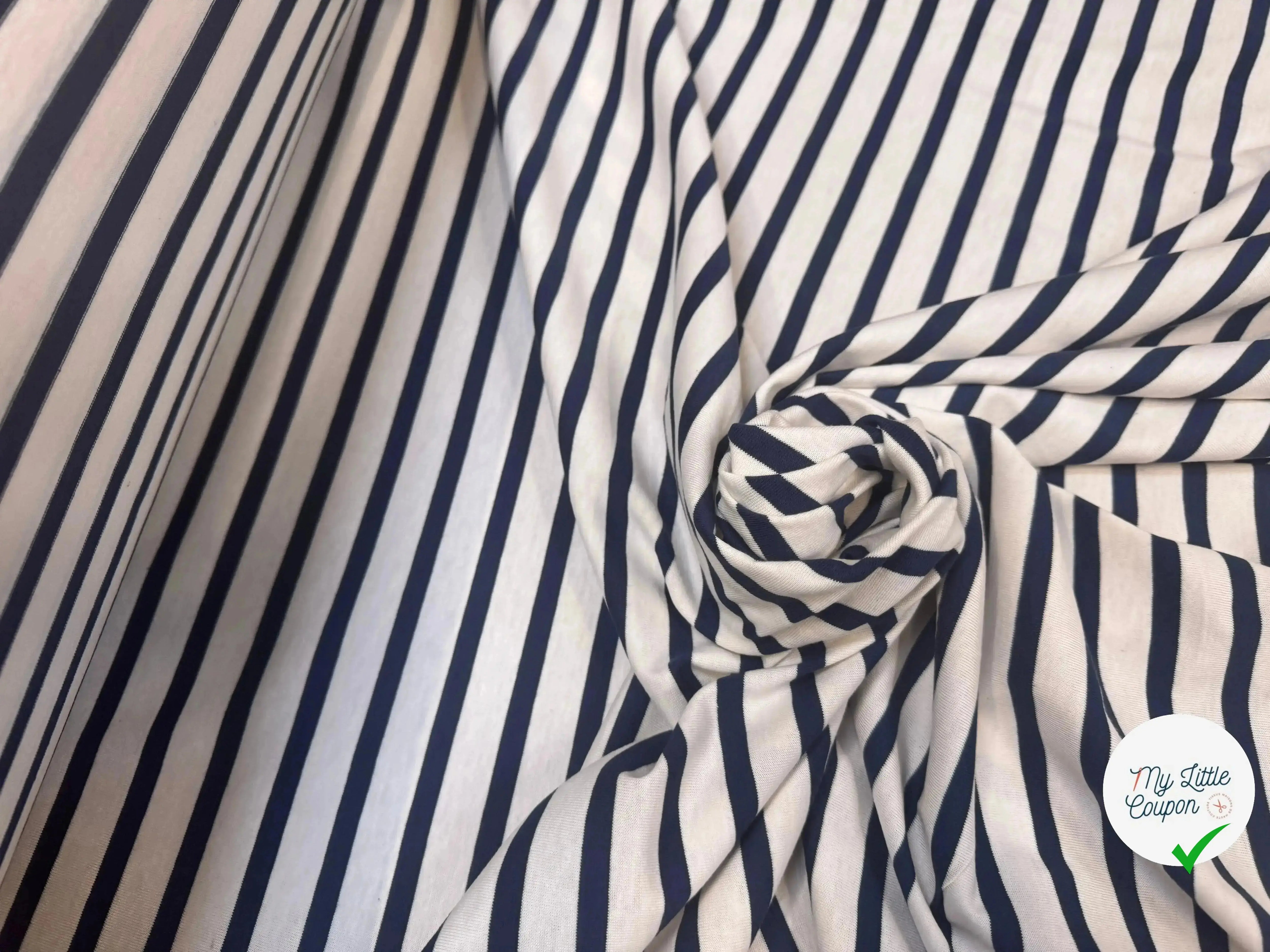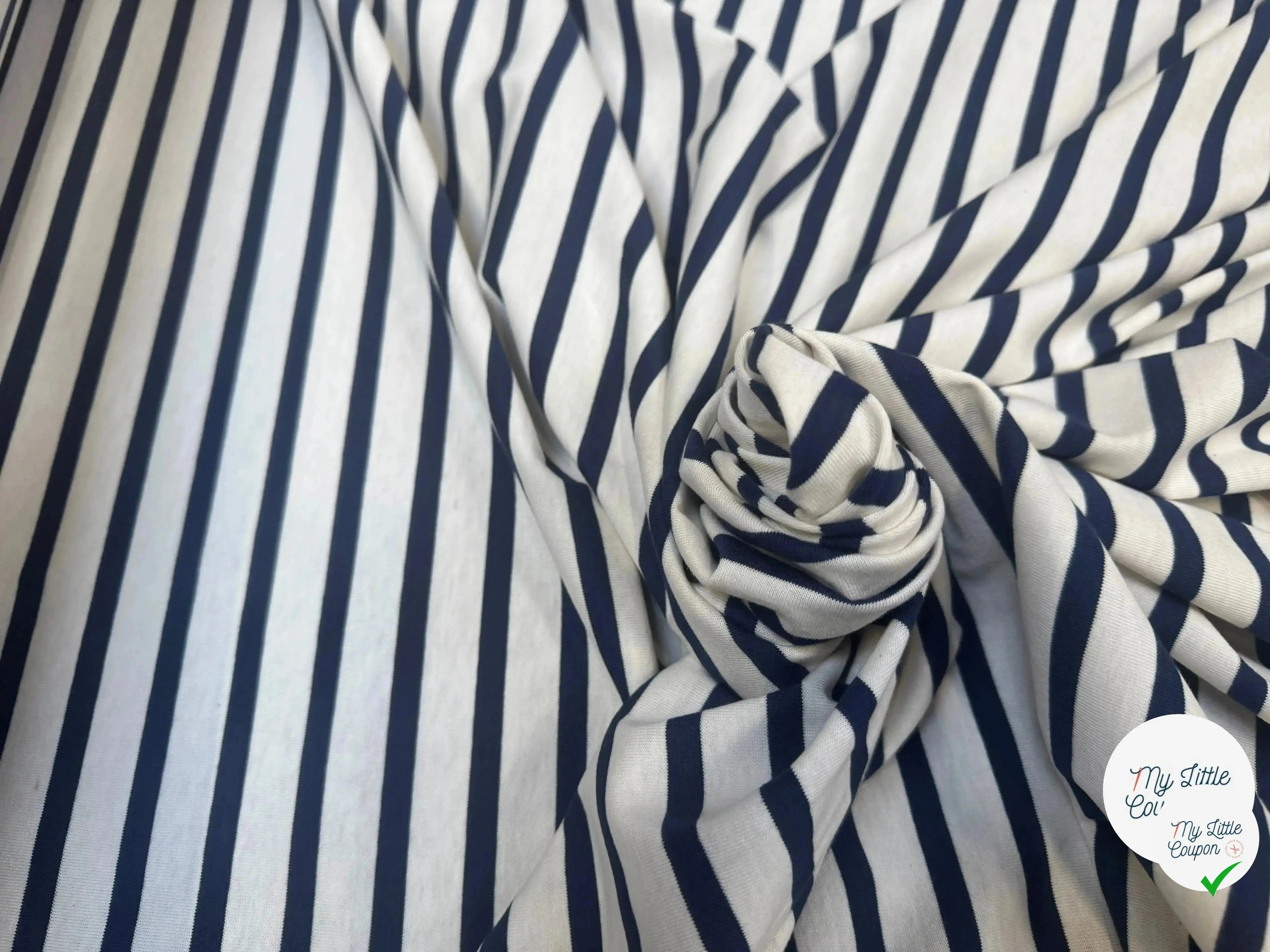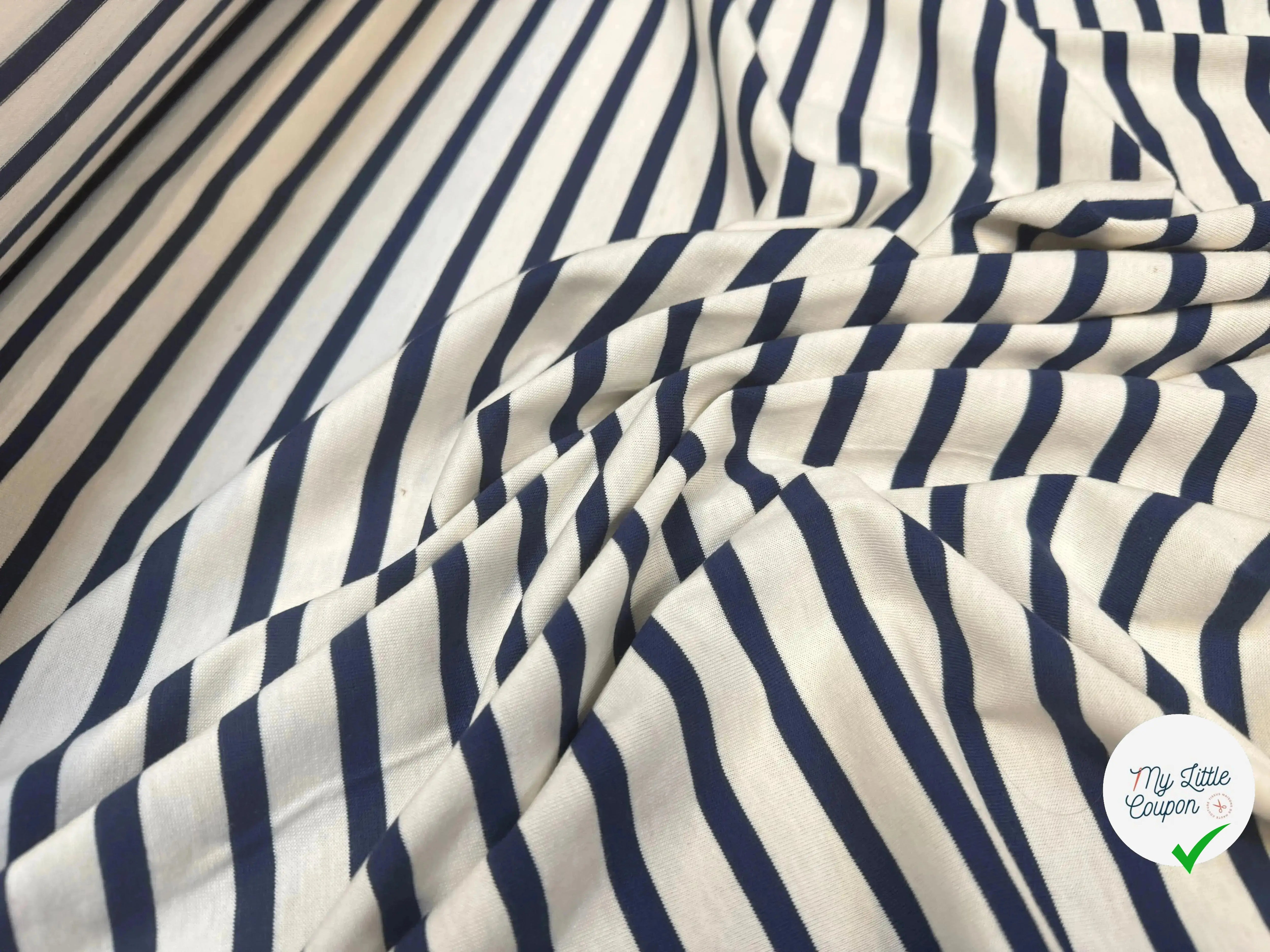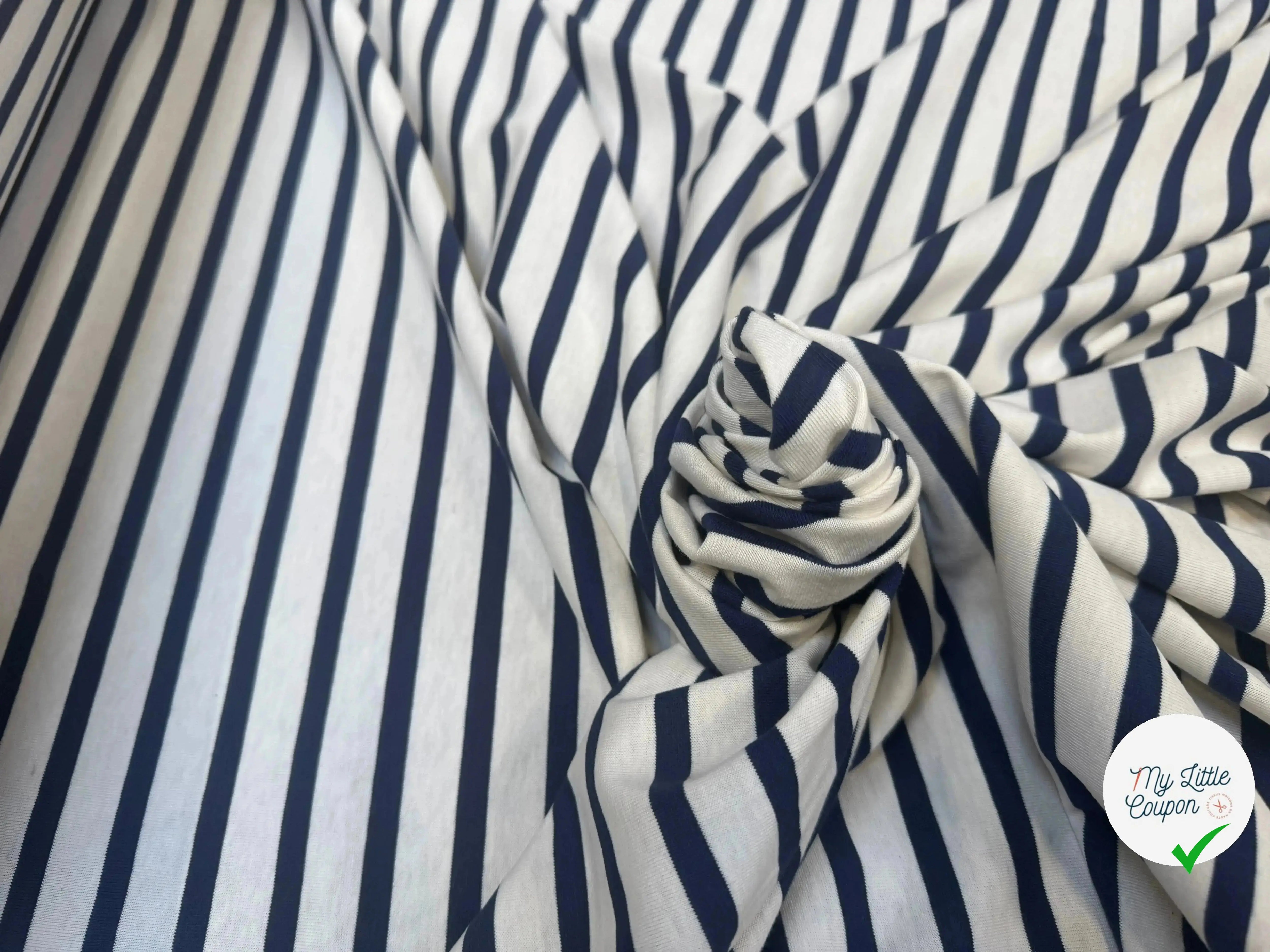 La pesada ECRU de Jersey en la Marina de 317.64g/m2 es un tejido de mayor peso, ideal para proyectos que requieren un cierto grosor y buena espera. Su combinación de ECRU y colores azul marino crea un elegante contraste, que agrega un toque de sofisticación a sus creaciones. Su textura suave y expandible ofrece un comodidad óptima al tiempo que garantiza una estética hermosa.
