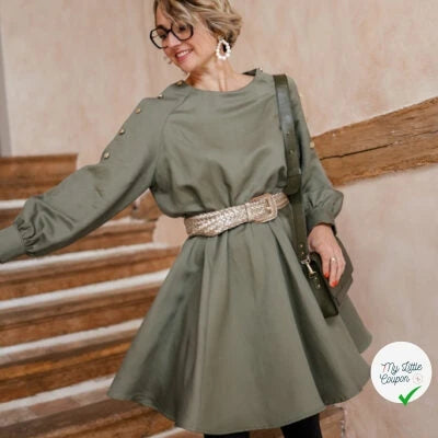 Joy es un patrón de vestido femenino y elegante, con un corte favorecedor y cómodo. Un modelo versátil, fácil de adaptar según la tela elegida. Nivel intermedio. Tallas 34 a 48. Tejidos recomendados: viscosa, crepé, algodón, popelina.