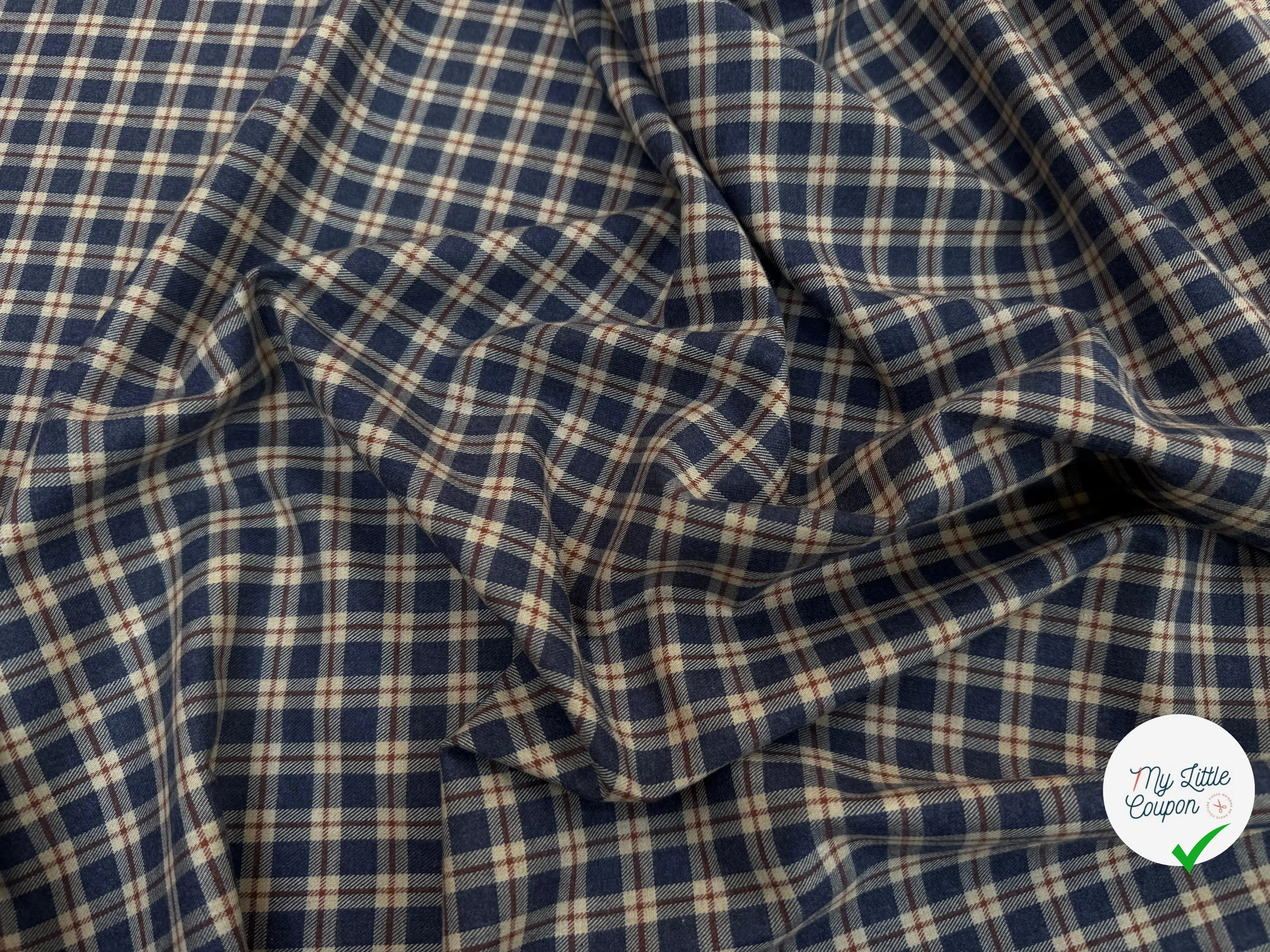 TEJIDO DE ALGODÓN TRAPERO CON MOTIVOS DE CUADROS AZUL MARINO TERRACOTA Y CREMA