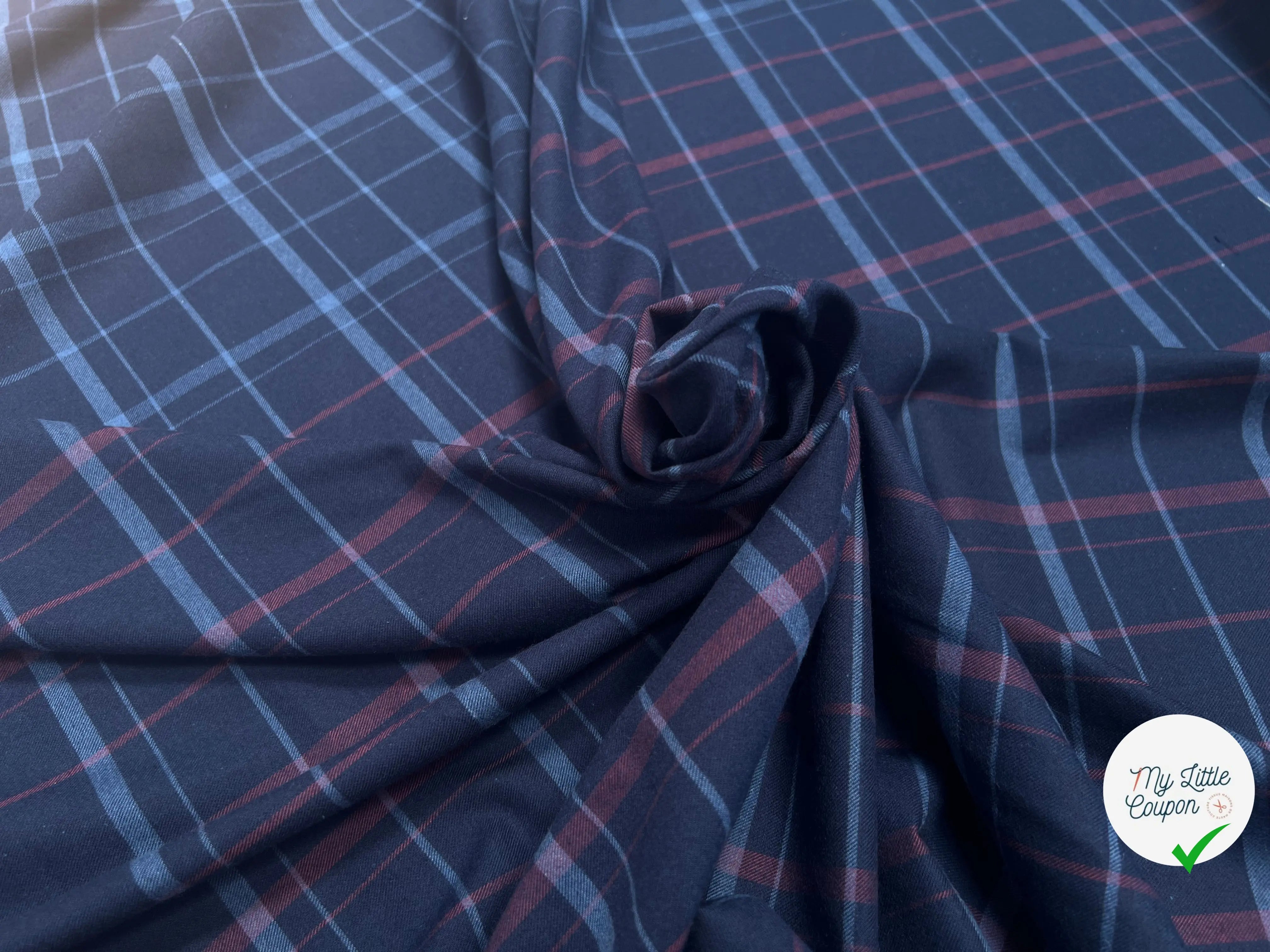 TEJIDO DE ALGODÓN TRAPERO A GRANDES CUADROS BICOLOR AZUL MARINO Y ROJO