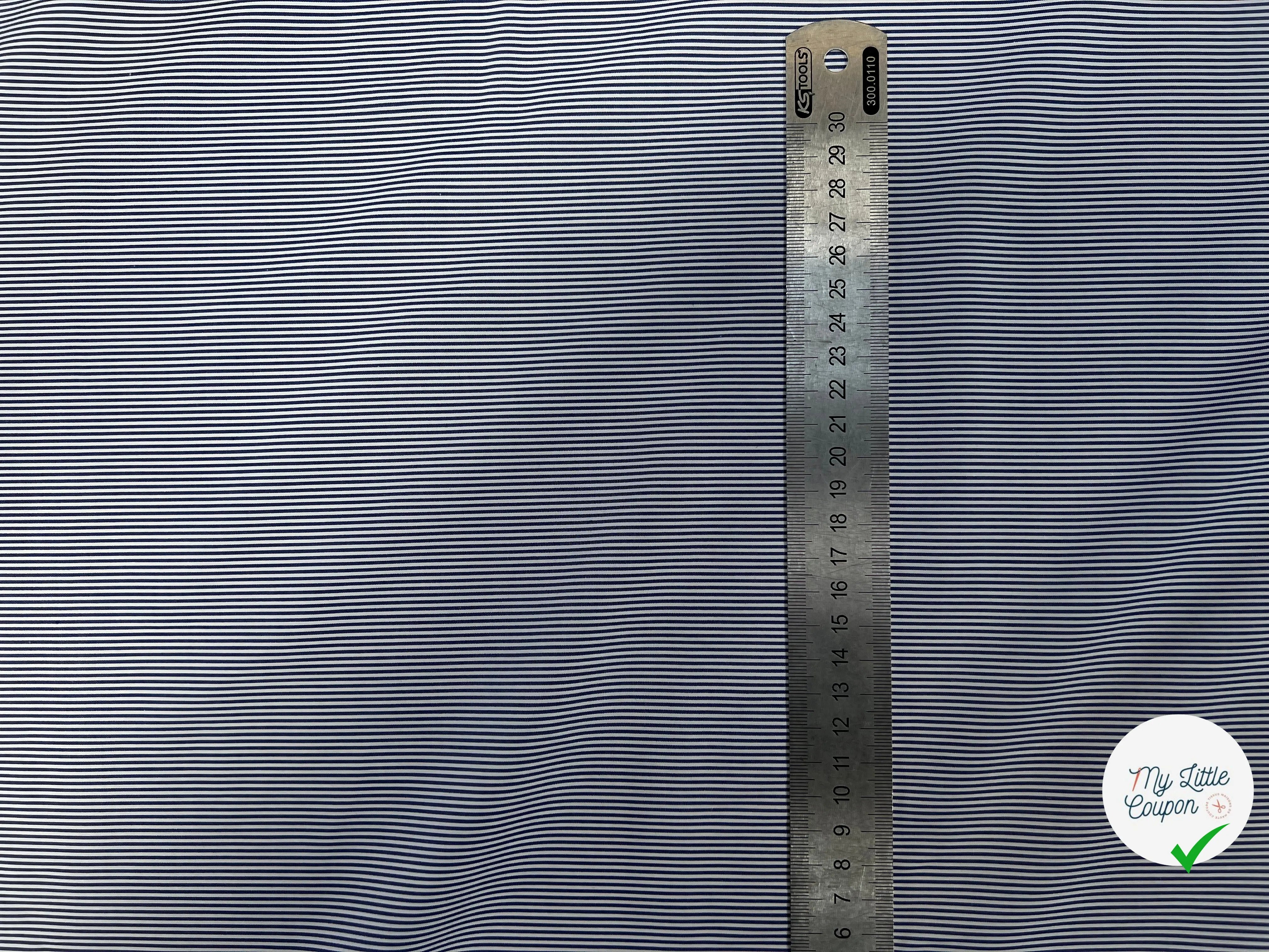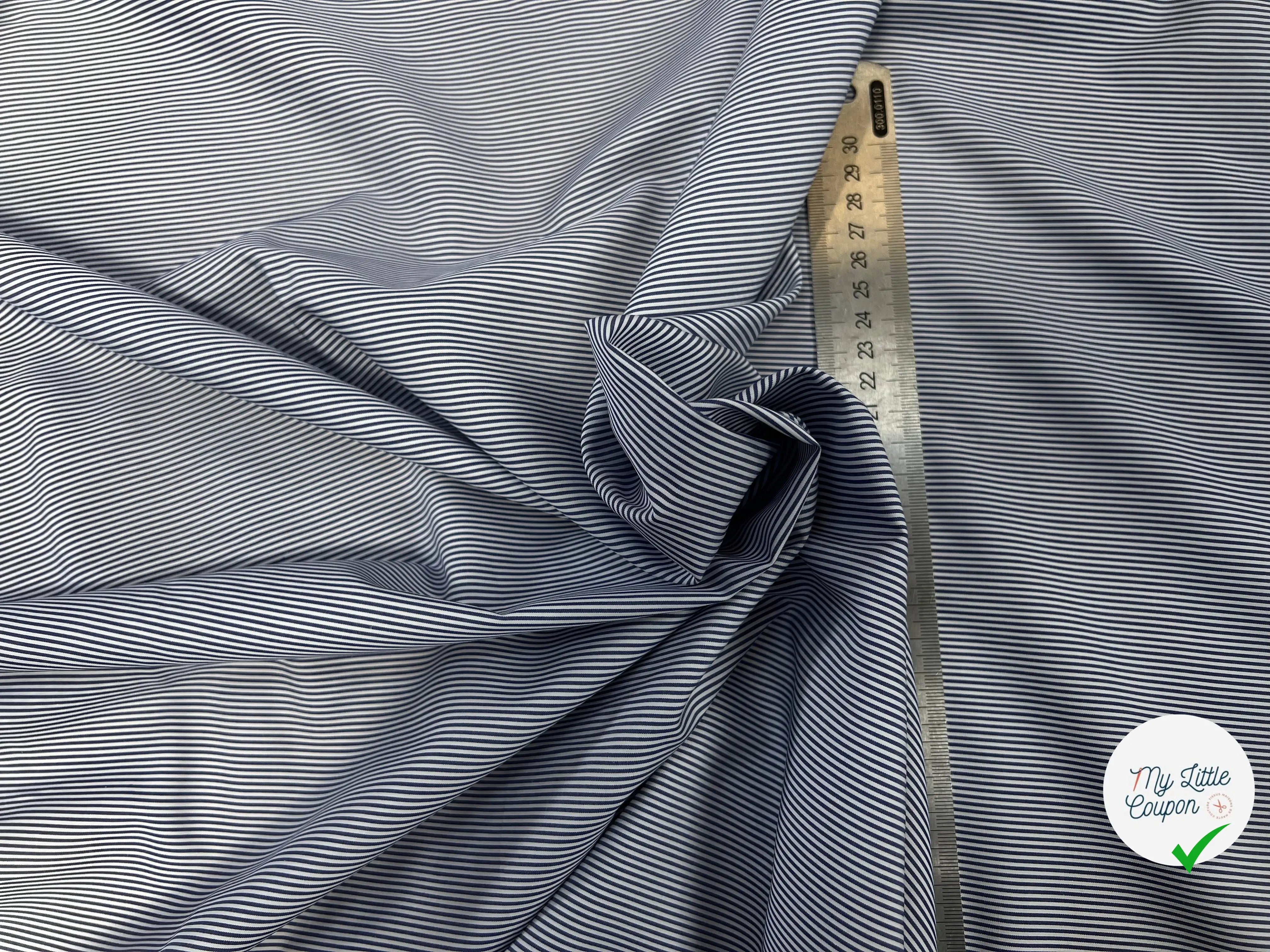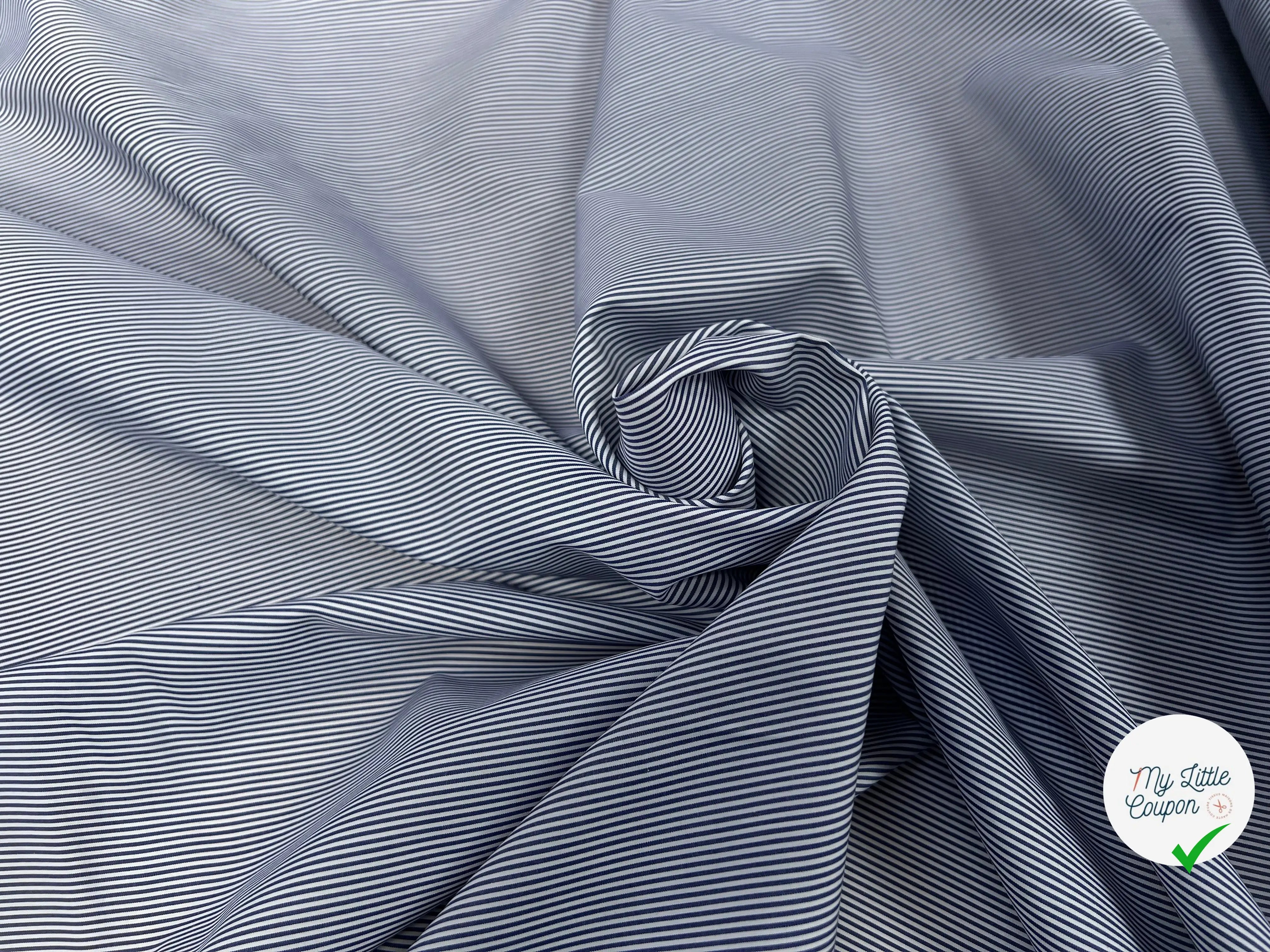 Descubra nuestra magnífica popelina de algodón a rayas marino blanco, una tela de lujo de fin de rollo cuidadosamente reciclada por nuestro equipo. Originaria de Italia, esta tela de calidad superior está disponible en cantidad limitada, lo que la convierte en una pieza única para sus creaciones.