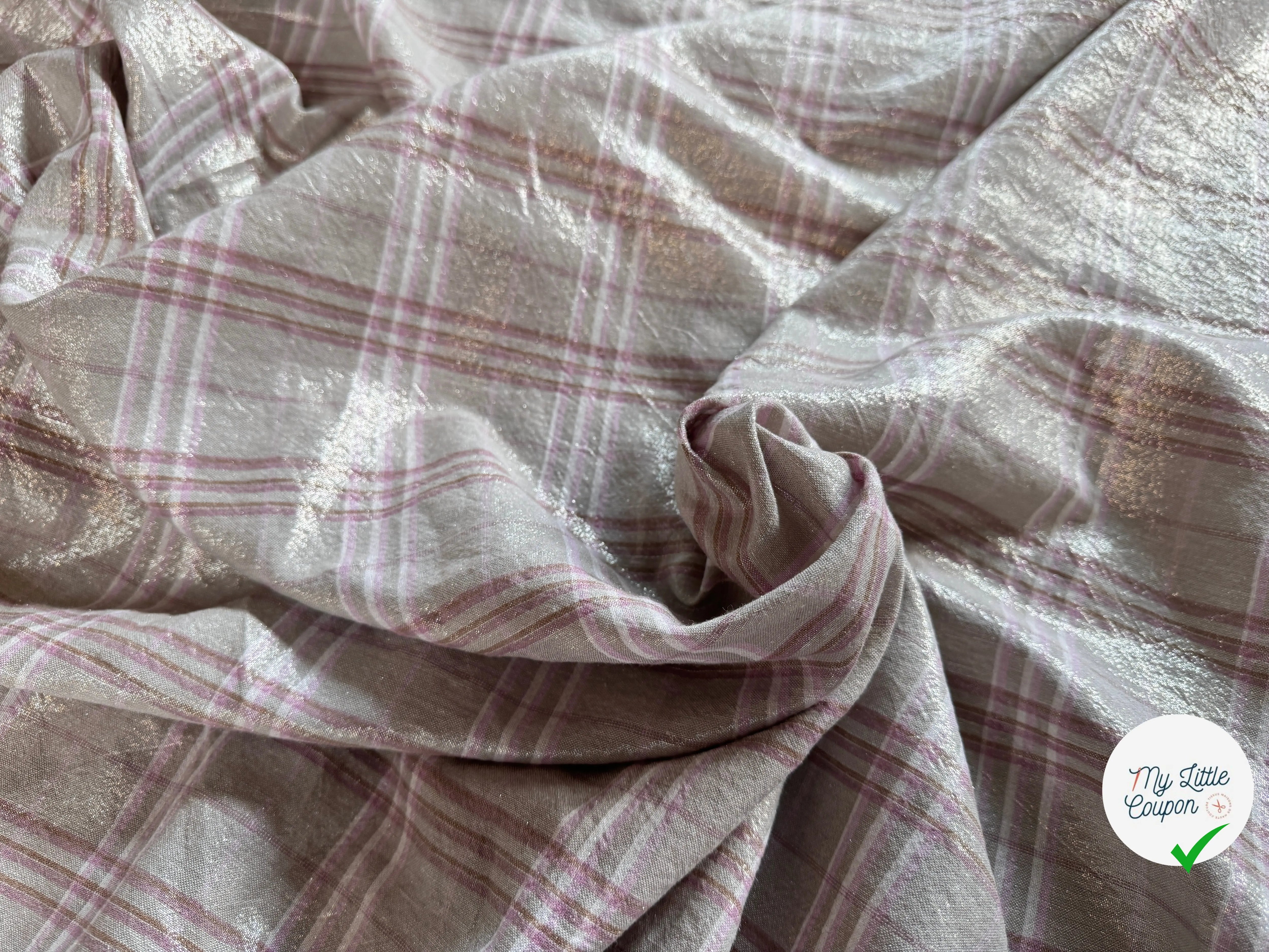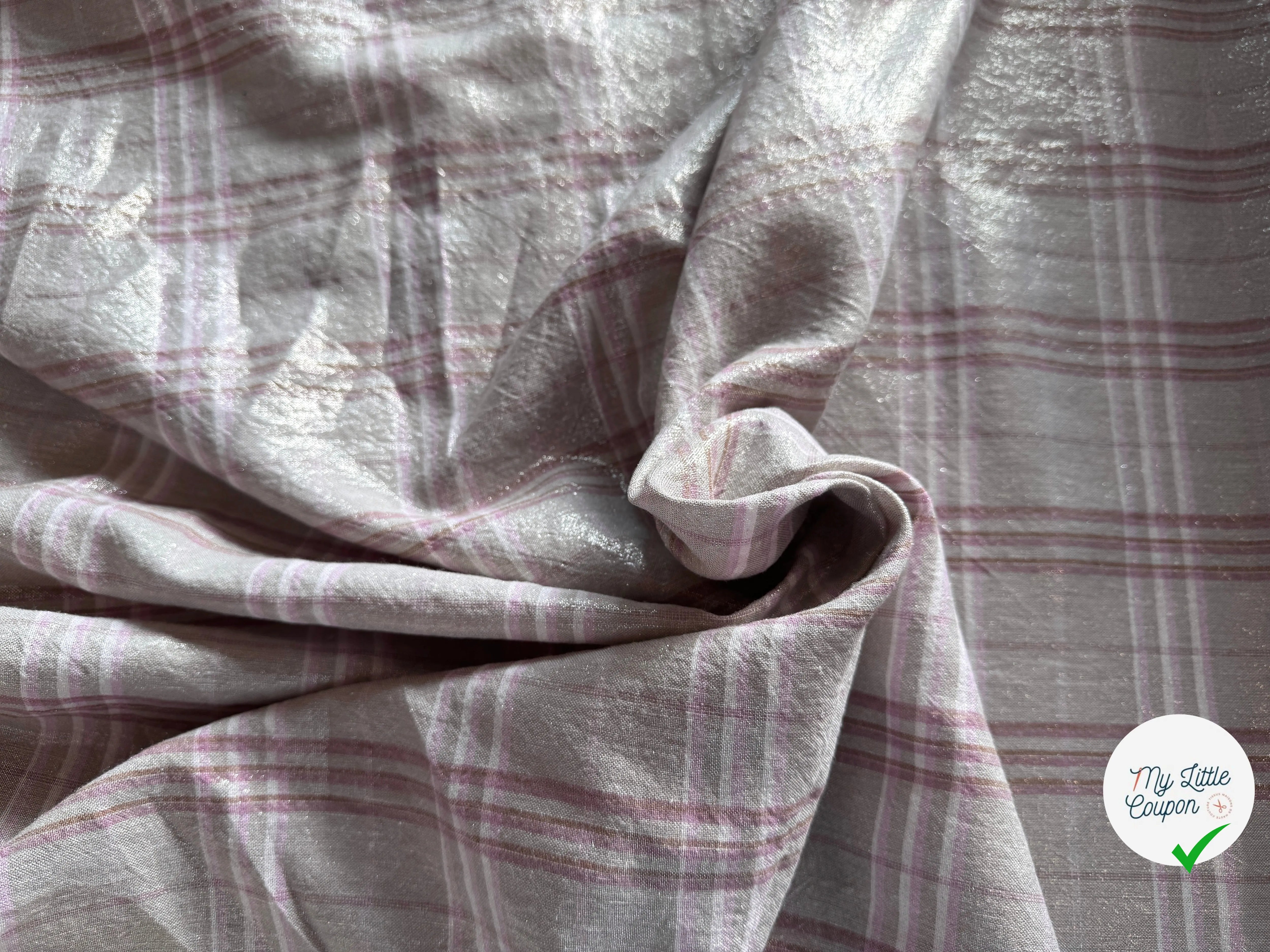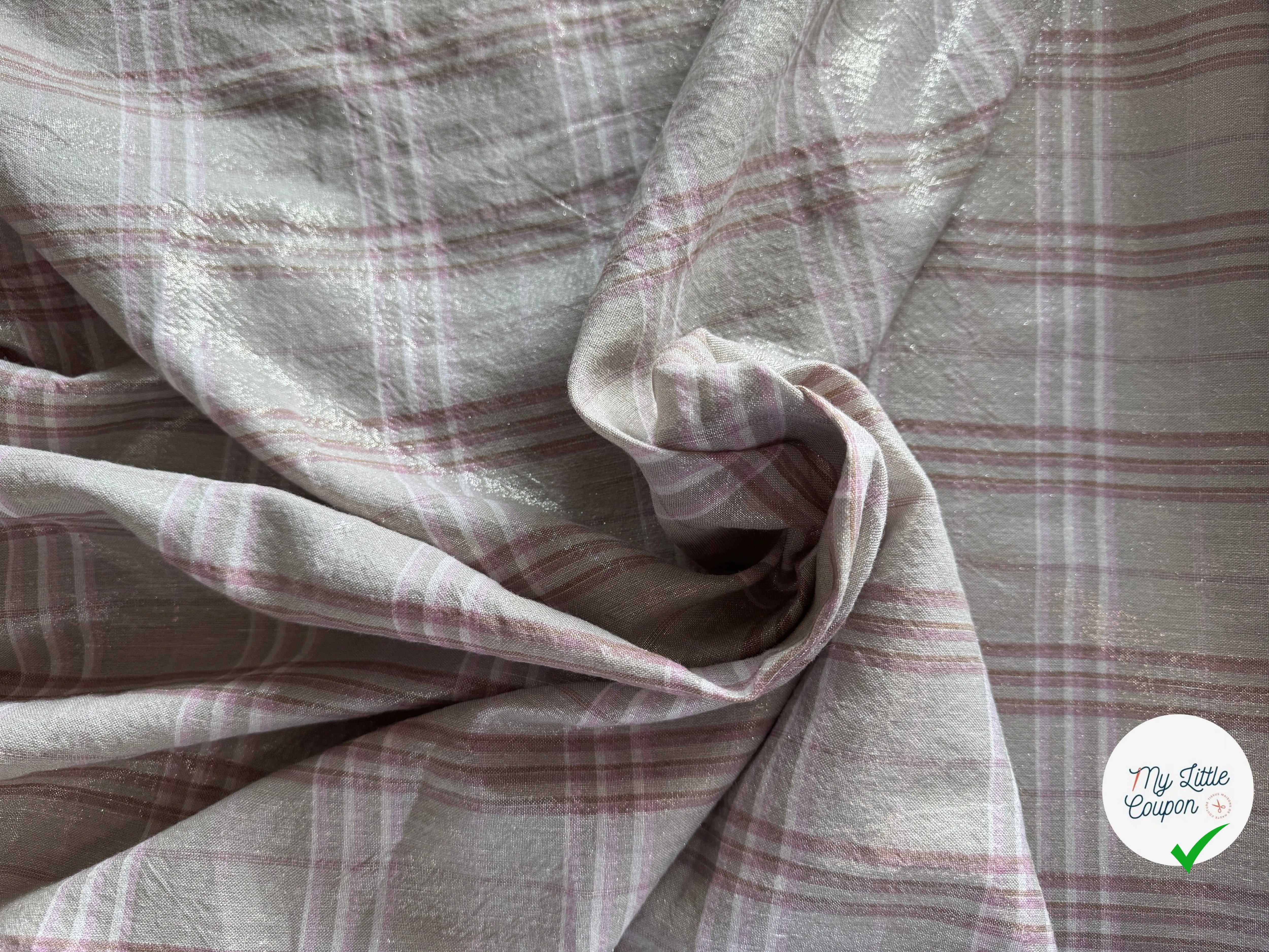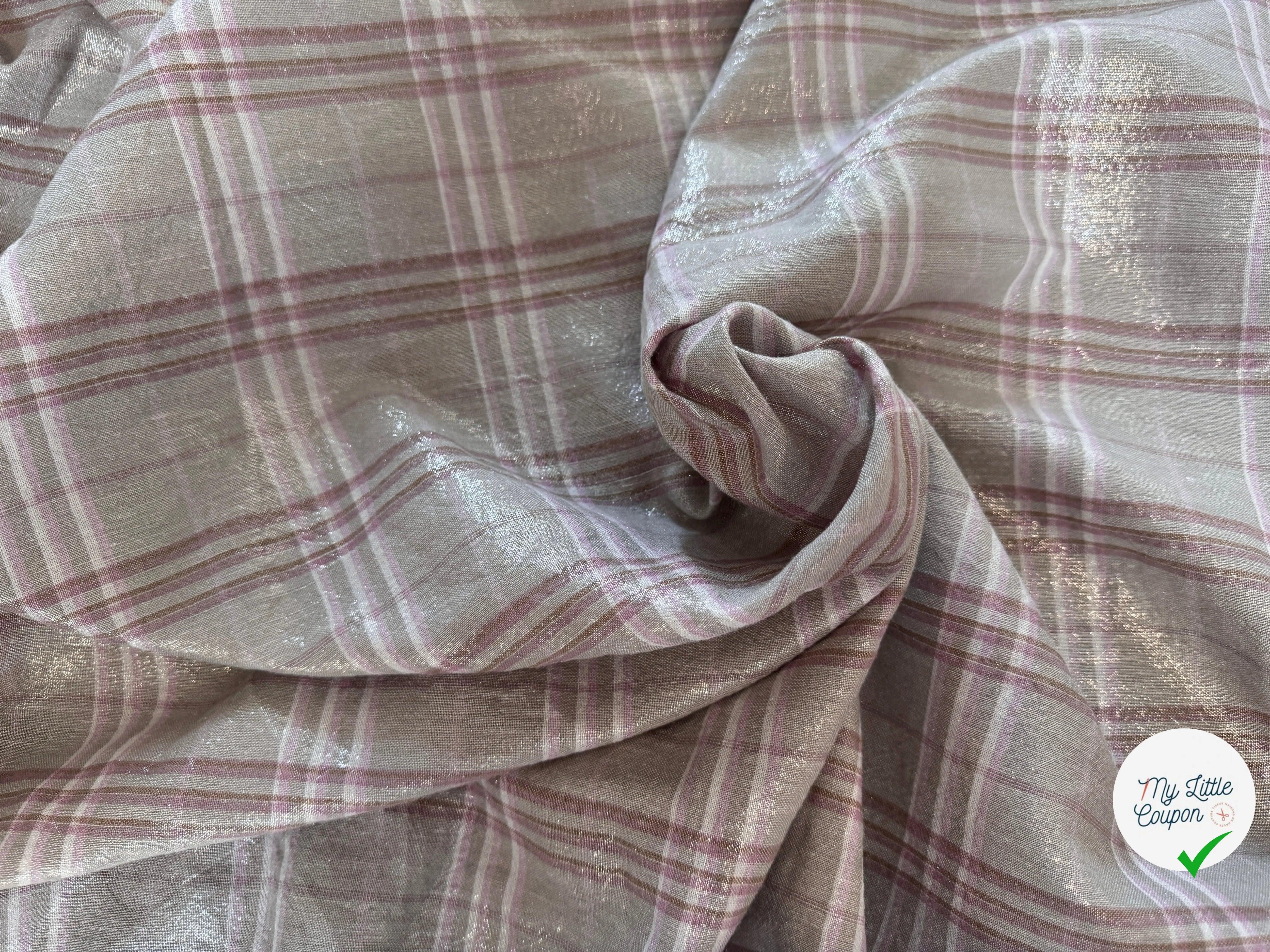 Lino gris beige gris tartán rosa lamé