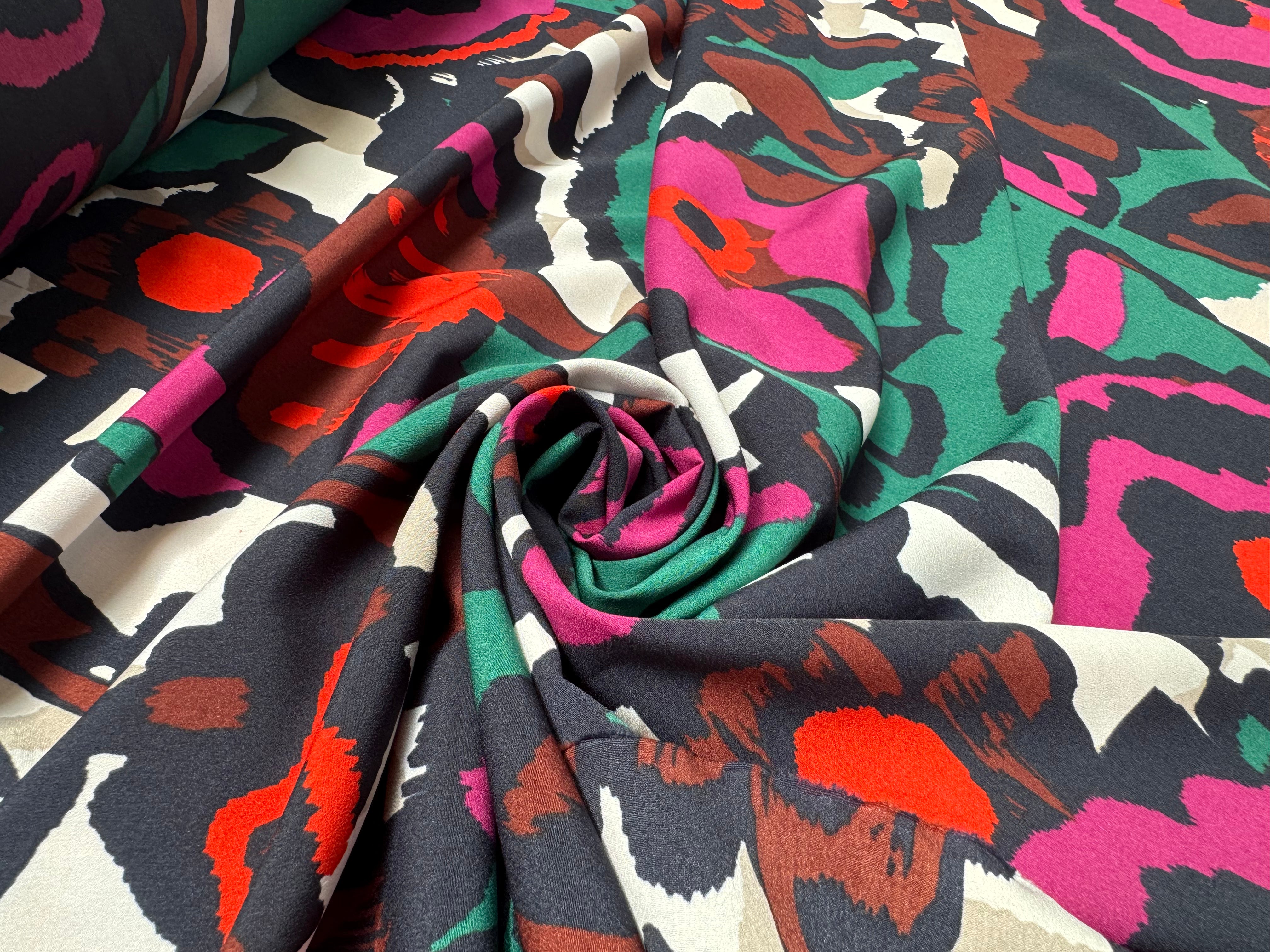 Descubre nuestra CREPE EFECTO PINTURA MULTICOLOR, una tela de alta calidad fabricada en Italia, perfecta para todos tus proyectos de costura creativos. Con un ancho de 155 cm y un peso de 150 g/ml - 97 g/m², esta tela de 100% poliéster se distingue por su originalidad y versatilidad. Ideal para la confección de prendas ligeras, vestidos de verano, blusas o incluso cojines decorativos, aportará un toque artístico a tus creaciones.