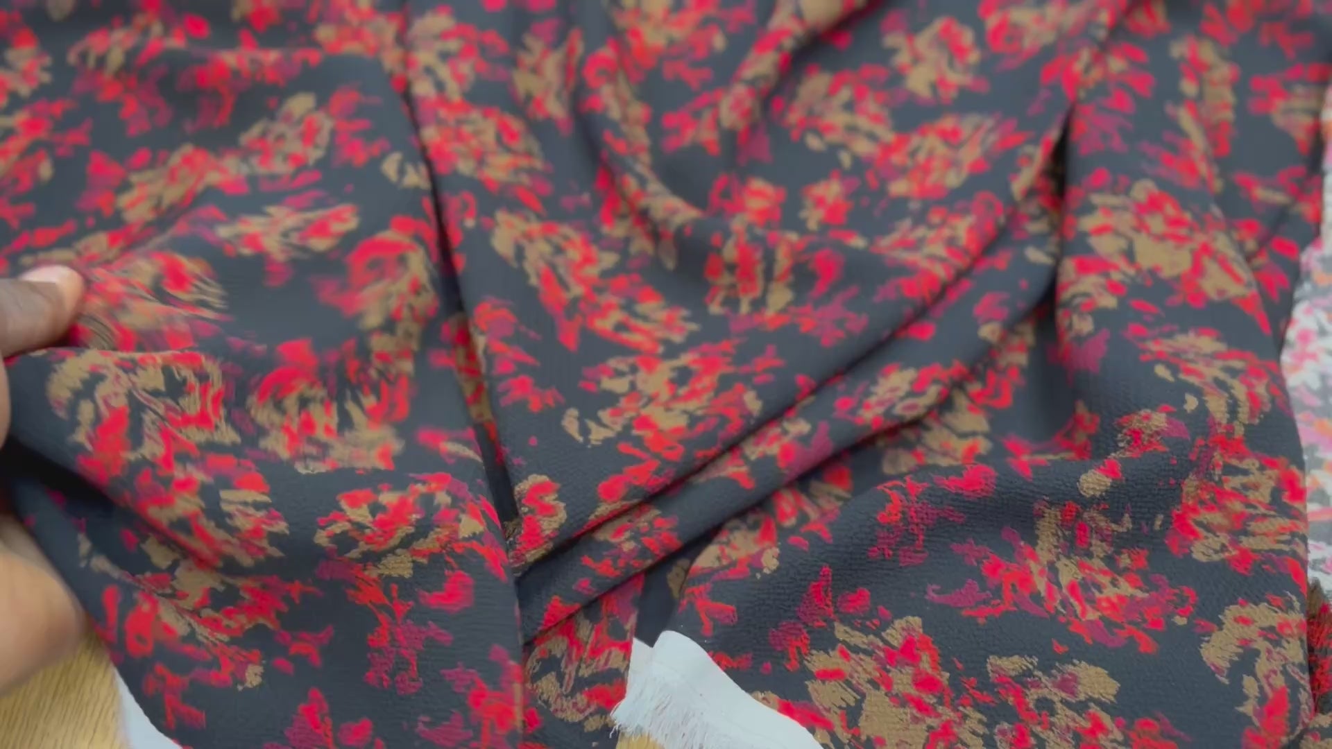 CREPE POLIESTER CON MOTIVO MULTICOLOR SOBRE FONDO NEGRO
