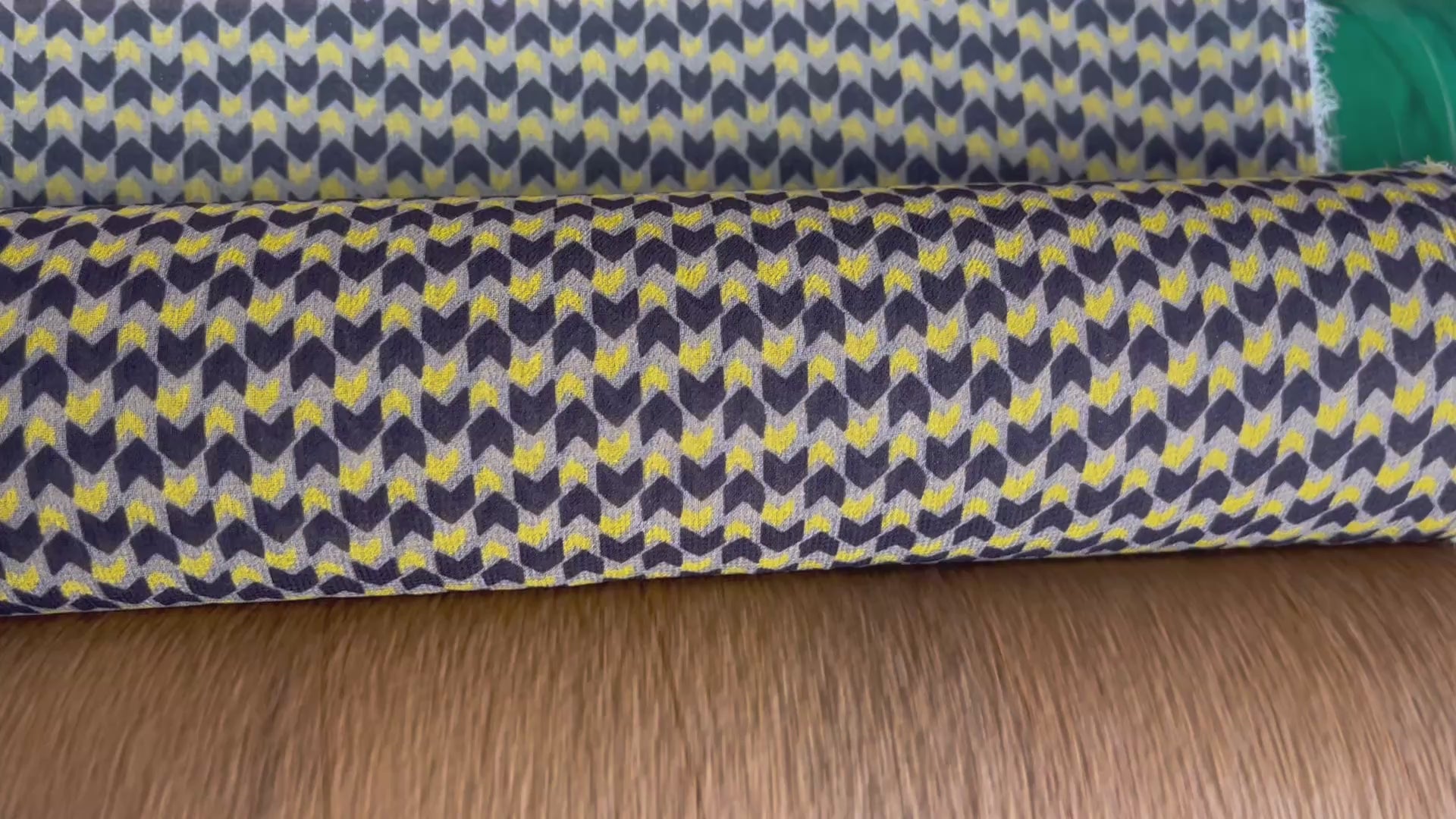 CREPE POLIESTER MOTIVO GEOMÉTRICO NEGRO AMARILLO