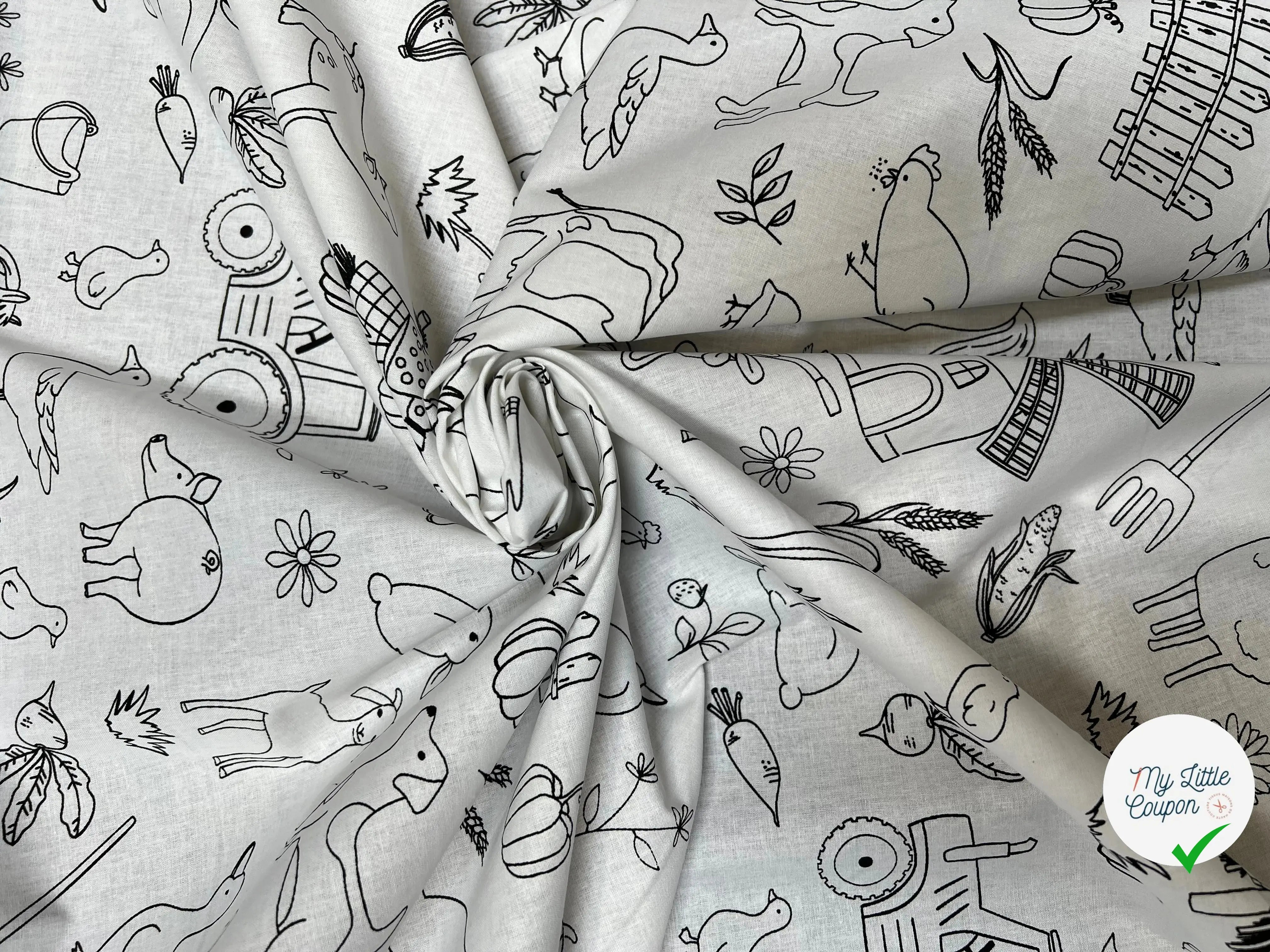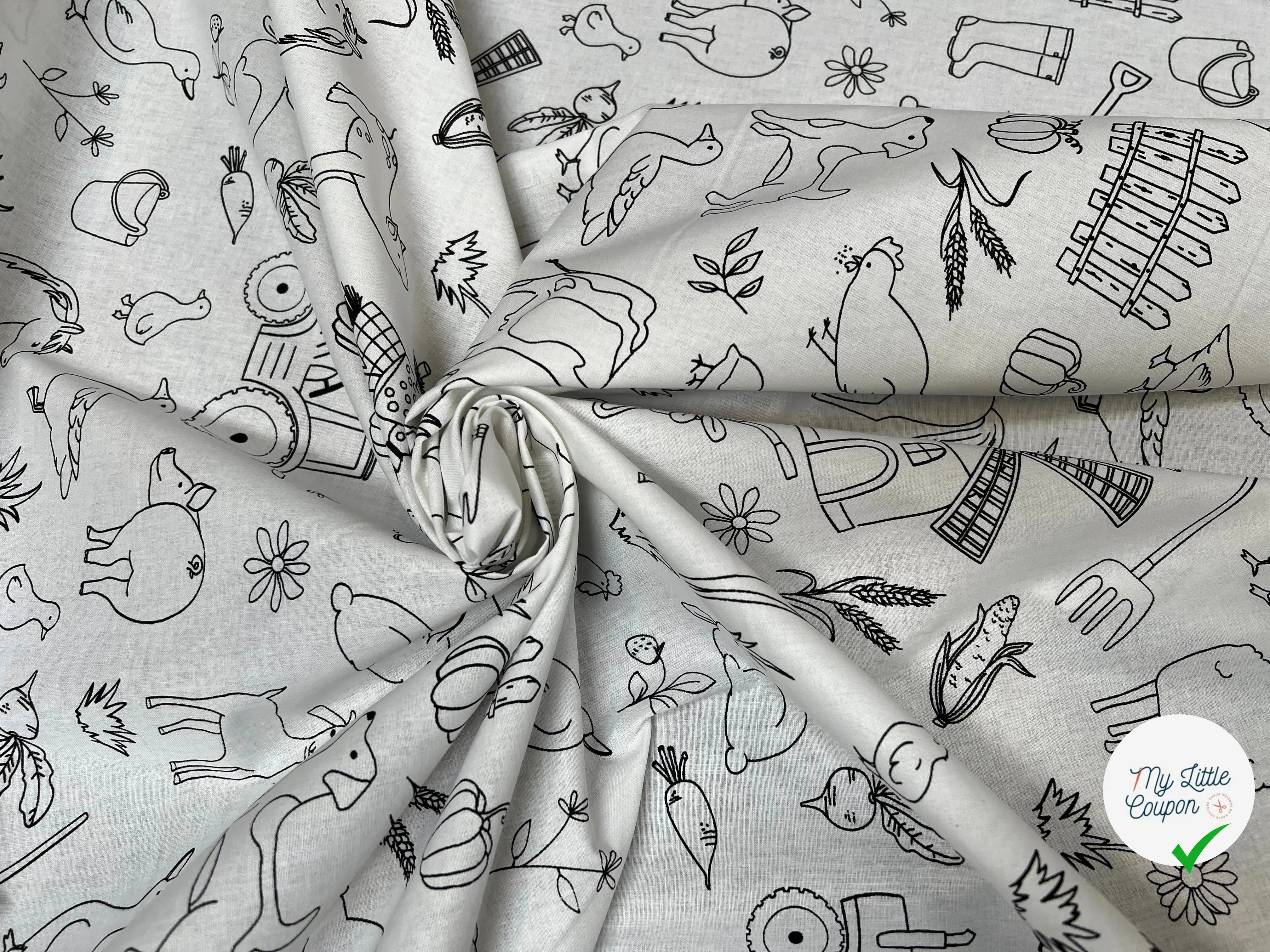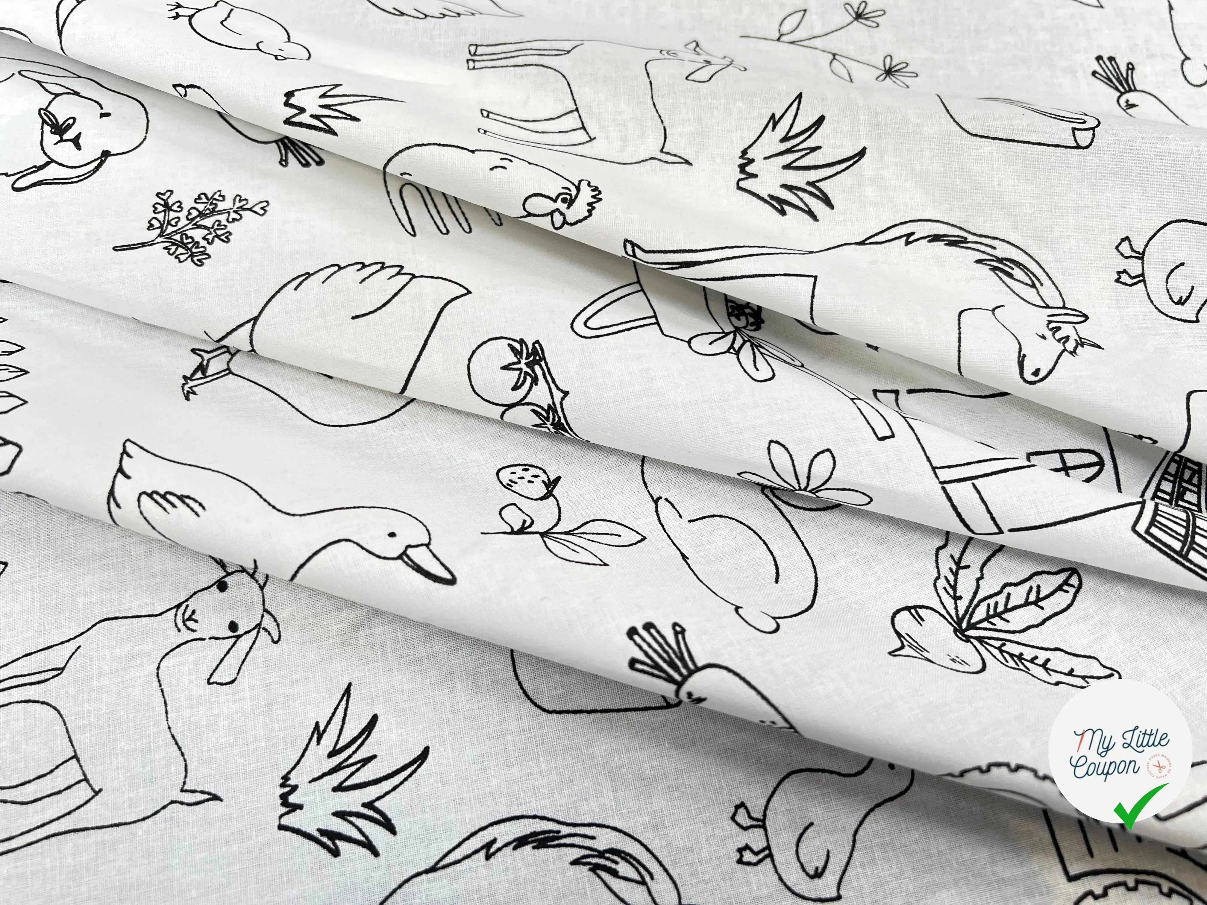 Este Algodón impreso Con los patrones de granja y animal es perfecto para las creaciones divertidas y originales. Ideal para ropa para niños, también se presta a la creación de accesorios y decoraciones divertidas para el dormitorio.