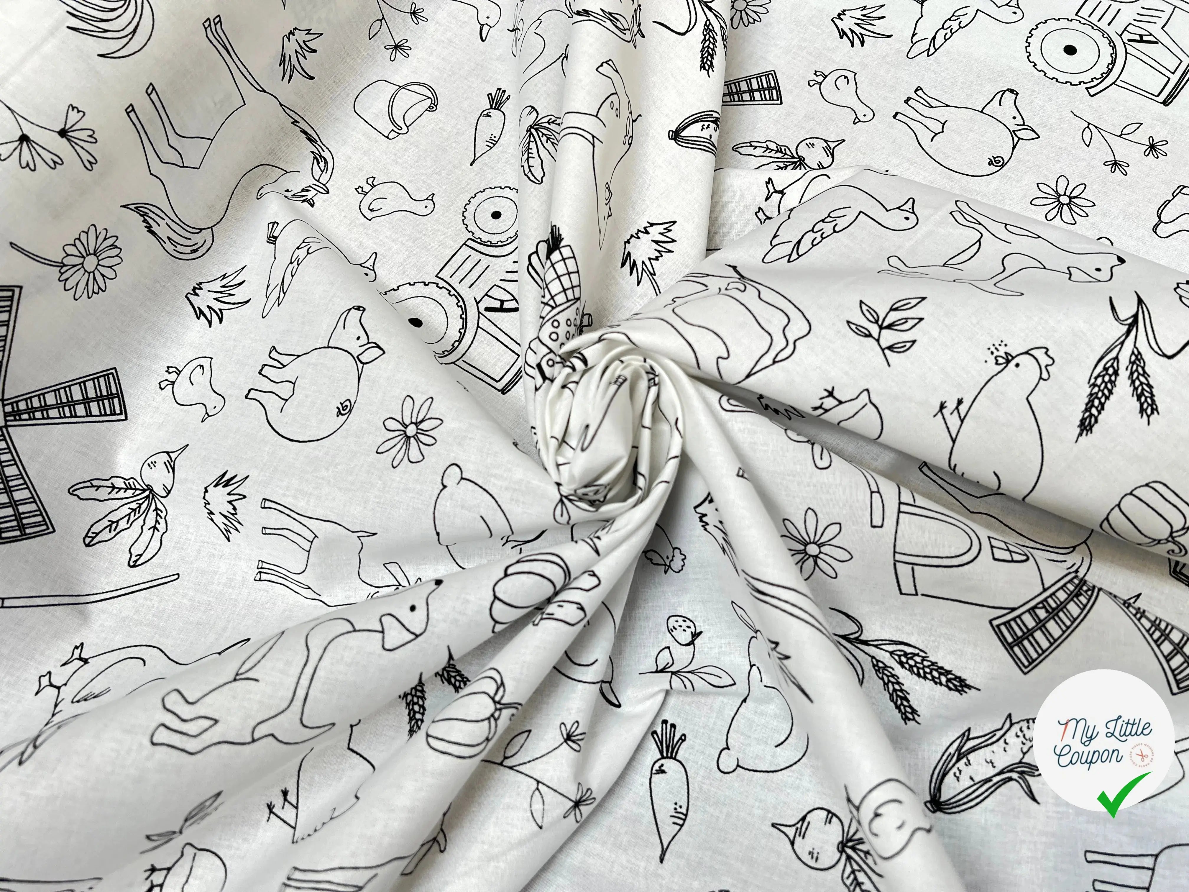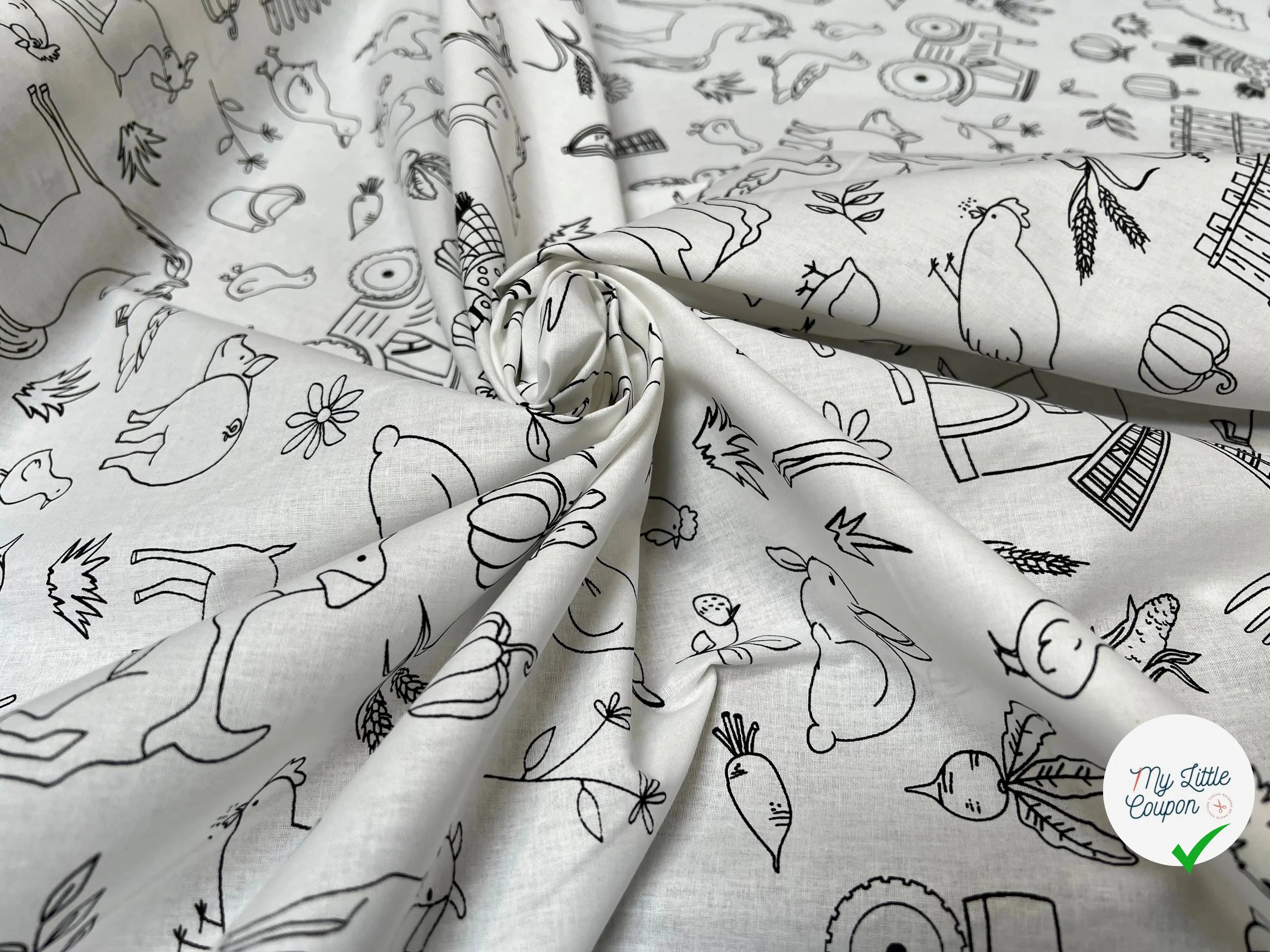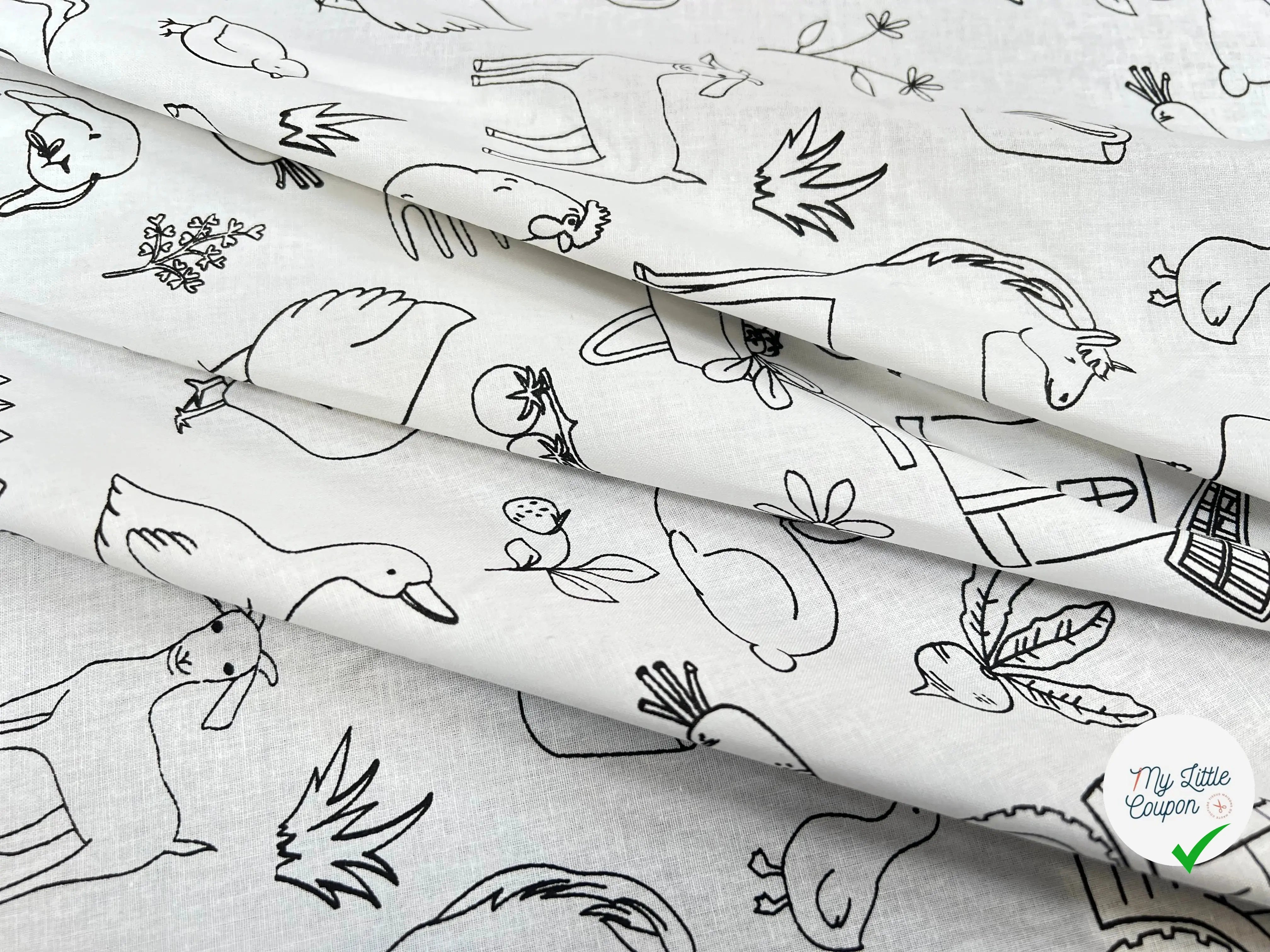 Este Algodón impreso Con los patrones de granja y animal es perfecto para las creaciones divertidas y originales. Ideal para ropa para niños, también se presta a la creación de accesorios y decoraciones divertidas para el dormitorio.