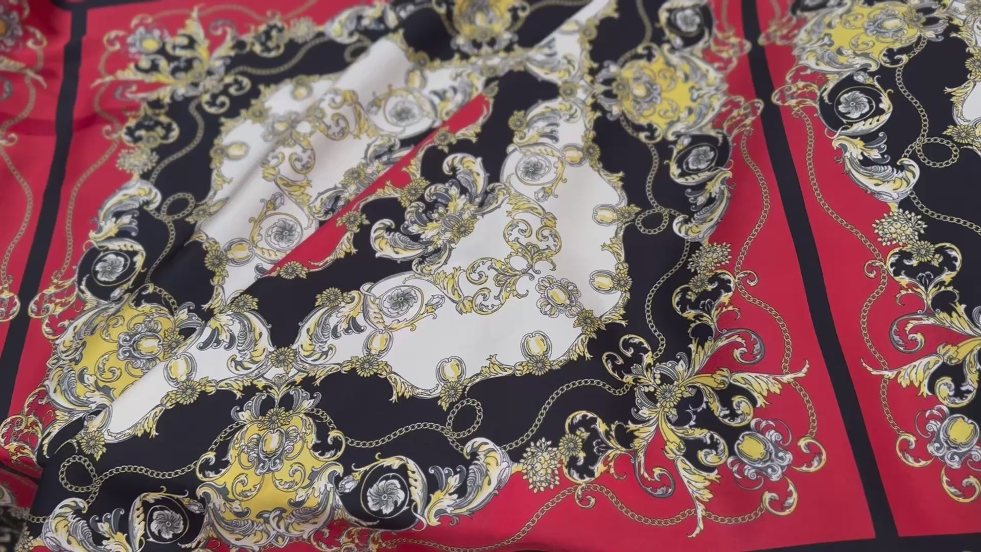 EL Motivo barroco Sofisticada se destaca con sus adornos dorados y contrastes profundos, haciendo que esta tela sea perfecta para hacer vestidos, faldas, blusas o accesorios decorativos. El poliéster Chick, con su tejido apretado y resistente, garantiza una larga vida útil para sus creaciones mientras les da un brillo suntuoso.