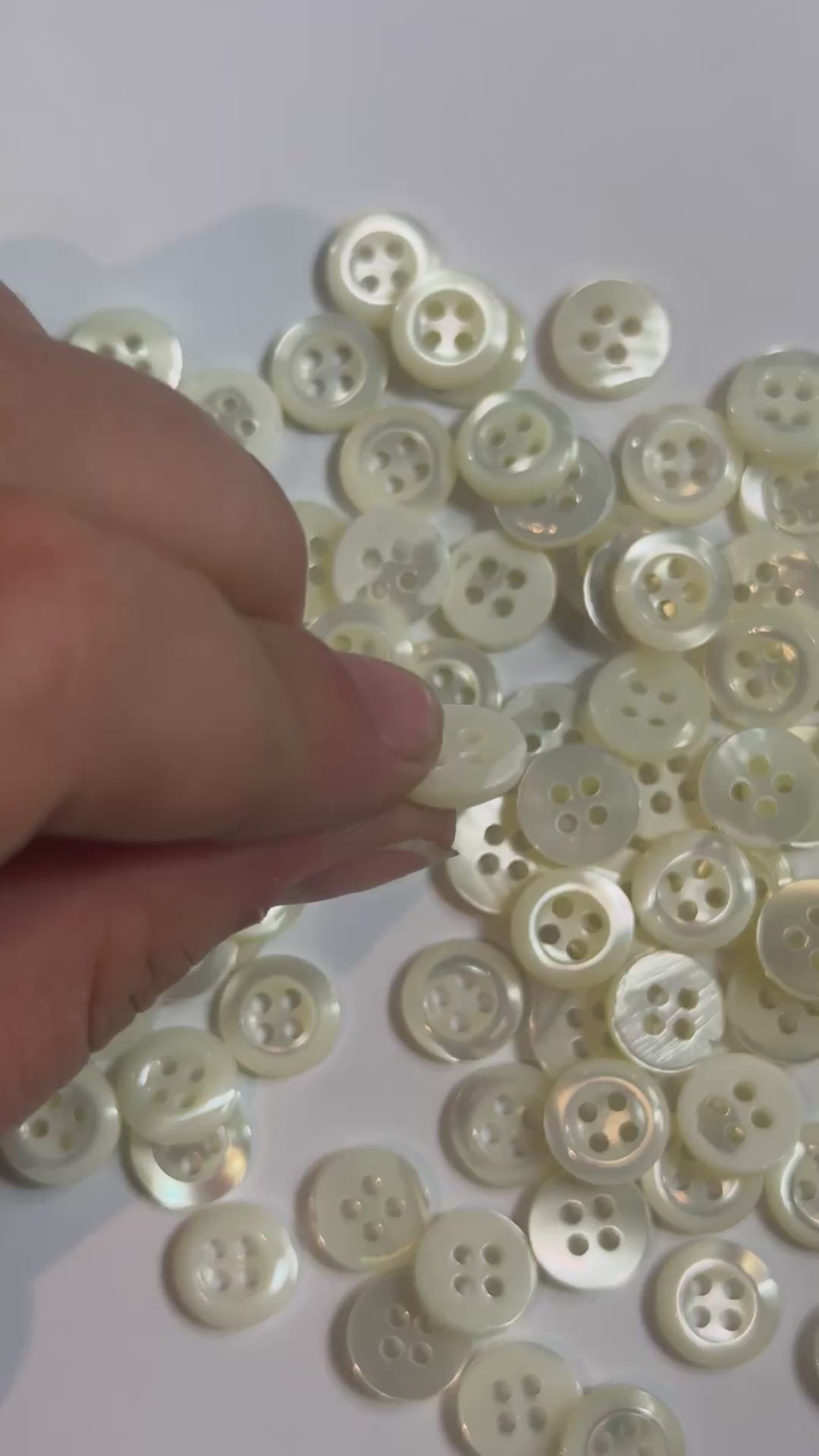 LOTE DE 5 BOTONES A 4 AGUJEROS HUECOS 10MM BLANCO NACARADO