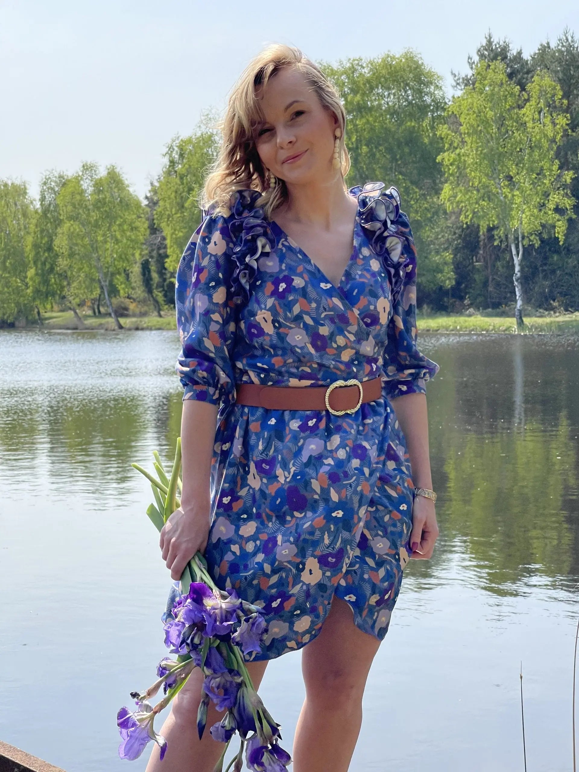 Un abito o una camicetta da v -ginnastica per evidenziare la scollatura, con una dimensione sottolineata da una cintura bloccata o abbottonata.