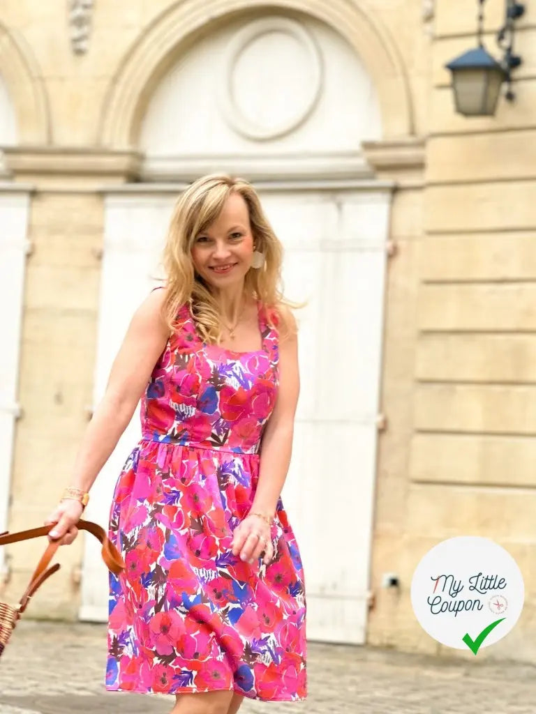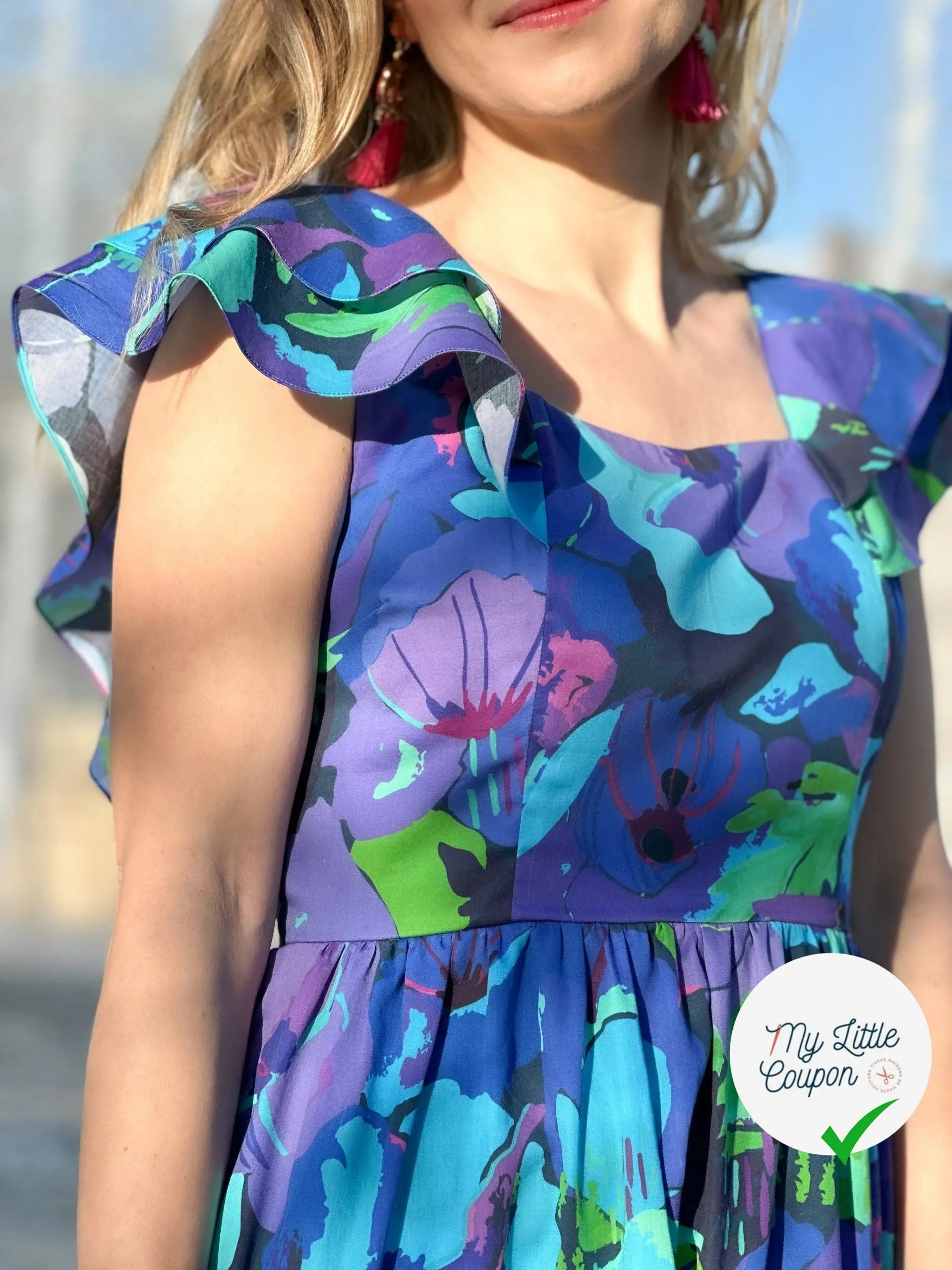 Marbella è un boss ultra-feminino per declinare in un abito lungo, vestito corto o top con basco. Il busto è regolato grazie a una zip invisibile sul lato. Per un look bohémien, puoi cucire 2 volano con linee poetiche. Verranno distribuiti dalla parte bassa della schiena verso il retro. La scollatura posteriore è quadrata con una gamba falsa e bottoni decorativi. Questa schiena ti renderà completamente irresistibile.