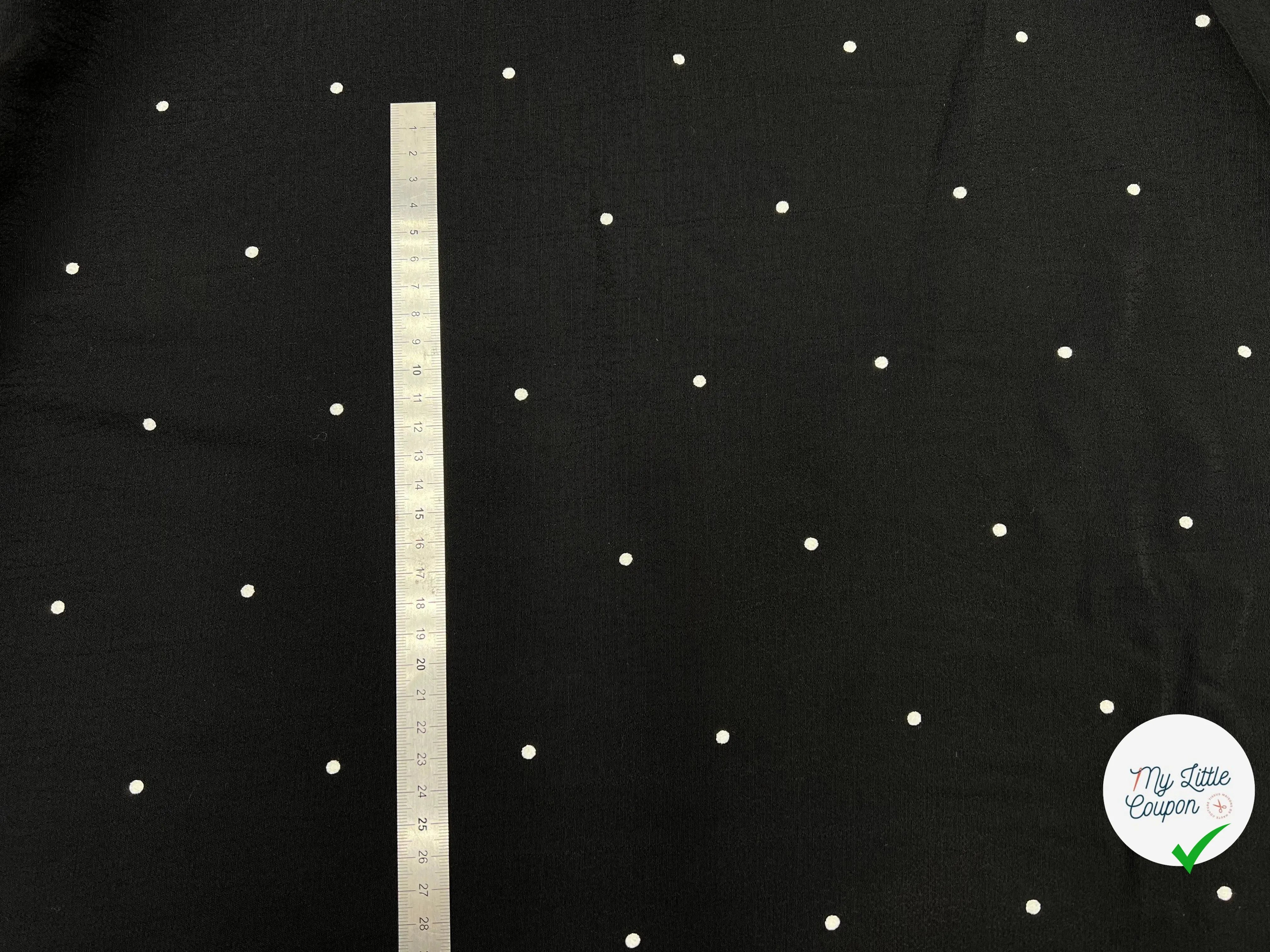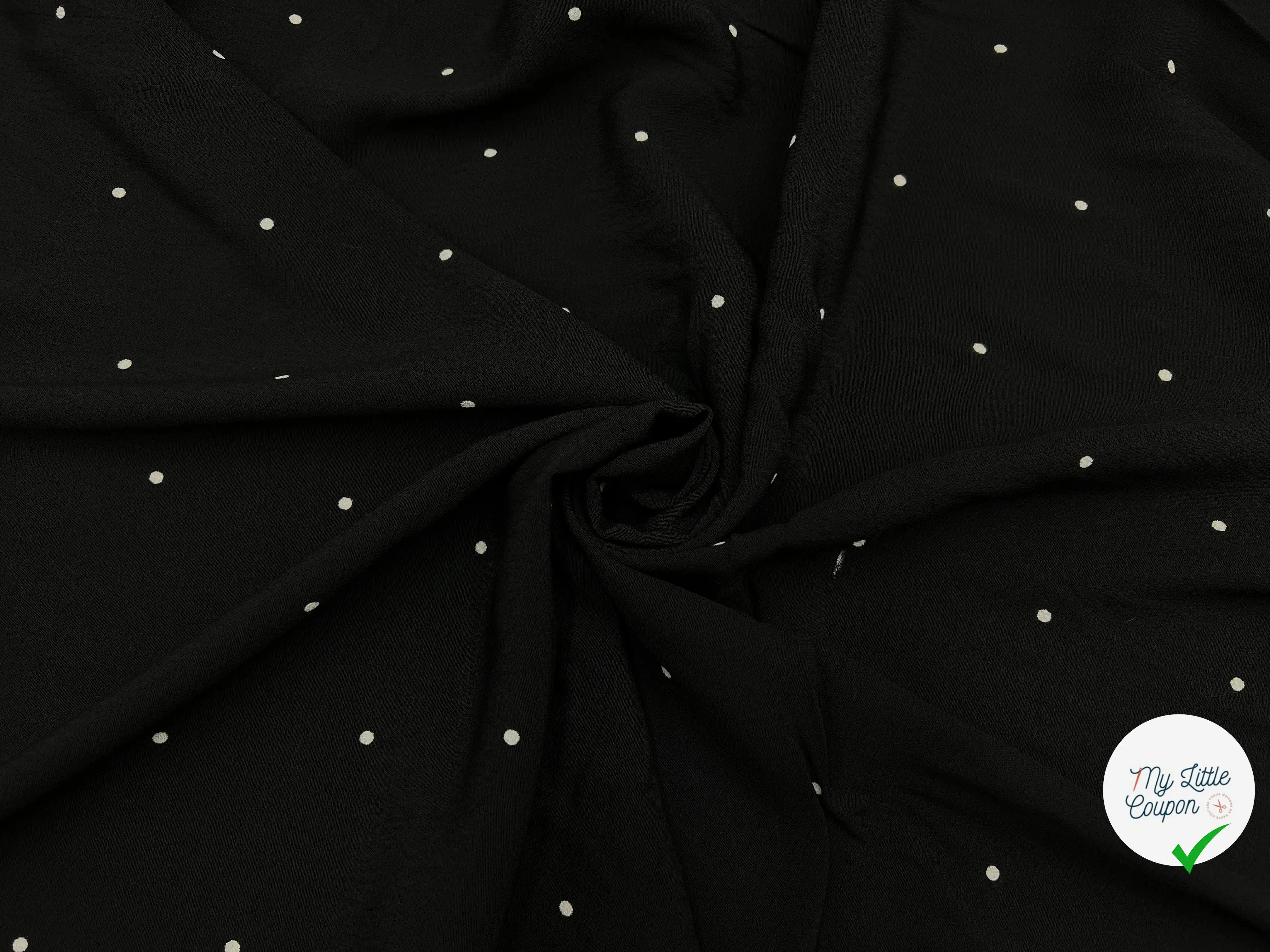 Fluido, con pieghe chiaramente visibili, il Tessuto crepe marocchino è leggermente trasparente e spesso usato per realizzare abiti vestiti, costumi vapori, romantici o di danza o altri creazione di tua scelta. Adoriamo questo motivo di piselli molto distanziati