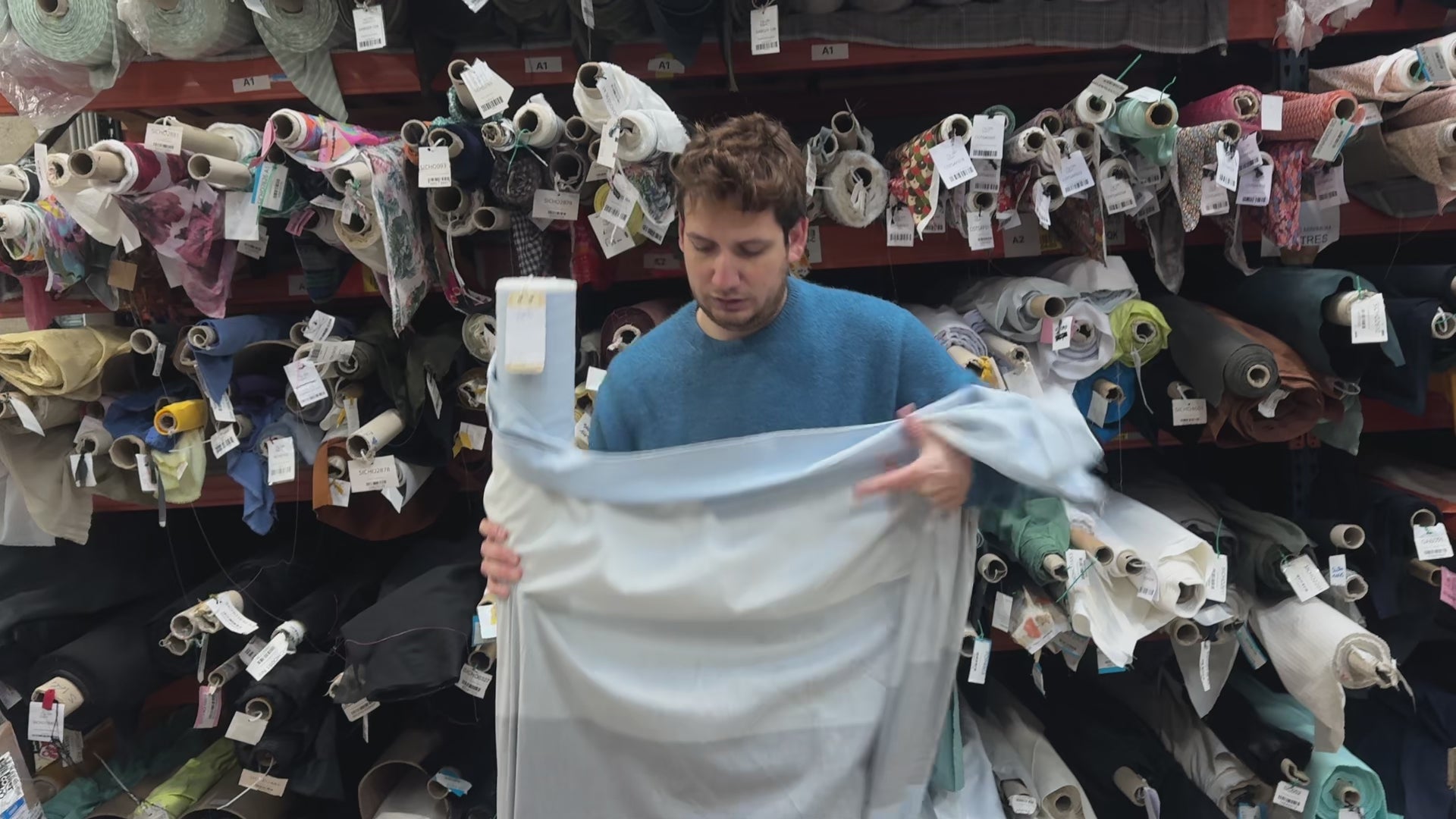 Tous nos tissus sont issus de fins de séries de maisons de haute couture françaises et italiennes. Nous stockons nos tissus en rouleaux, aucun coupon n’est coupé d’avance afin de permettre de ne pas abîmer ni froisser nos jolies étoffes.