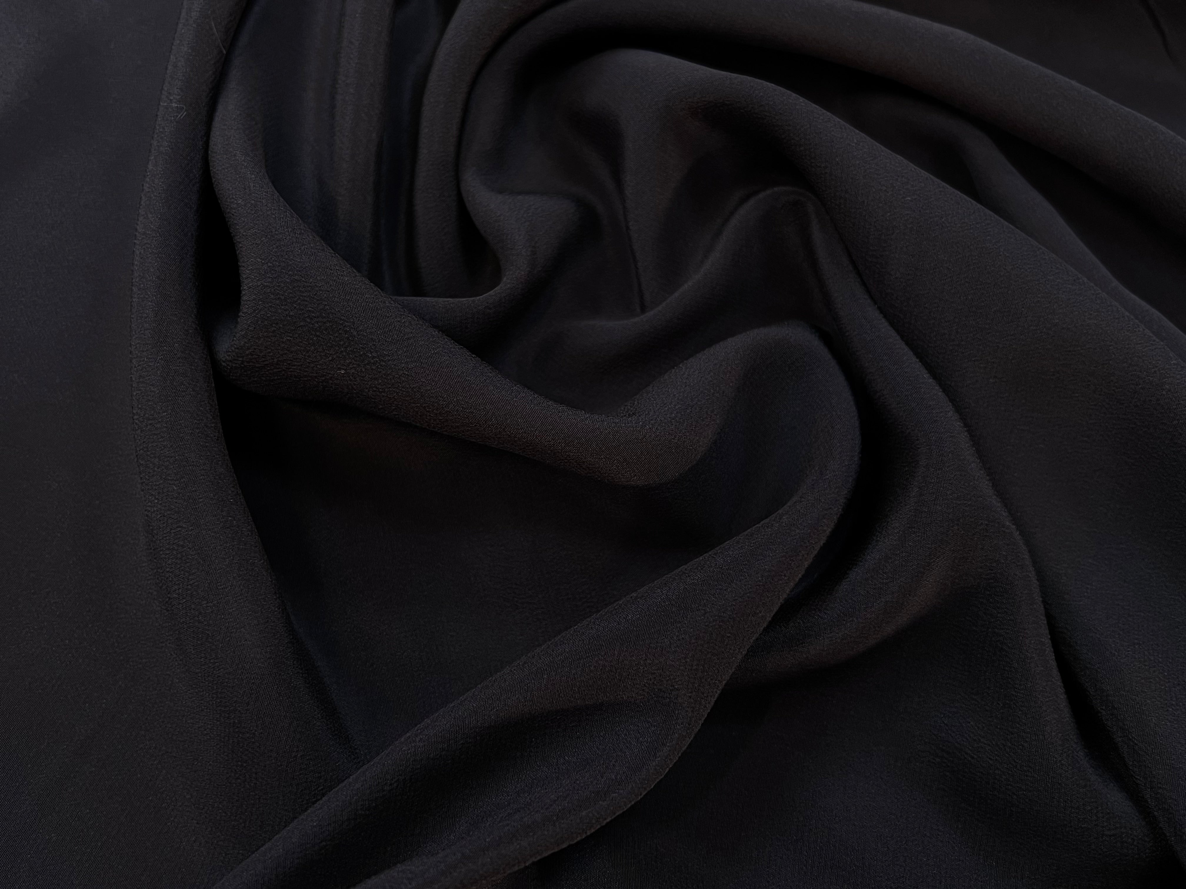 Découvrez notre crêpe de soie marron foncé, tissu de prestige 100% soie, tissé en Italie. Largeur 140 cm et poids léger offrent un tombé fluide et une douceur naturelle, idéale pour des robes et chemises élégantes.