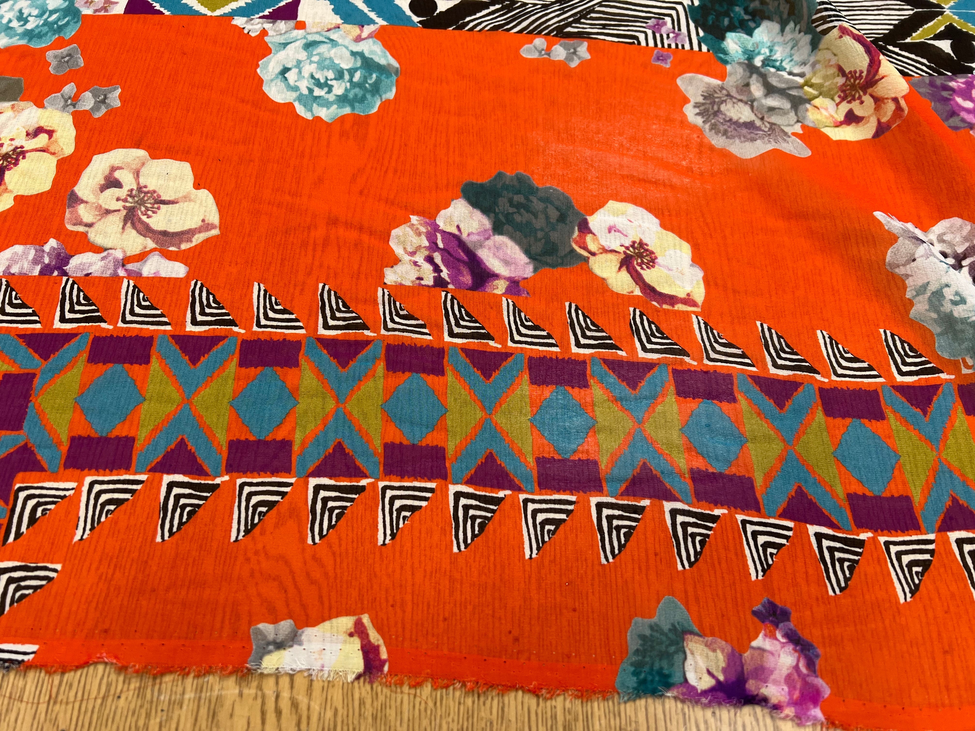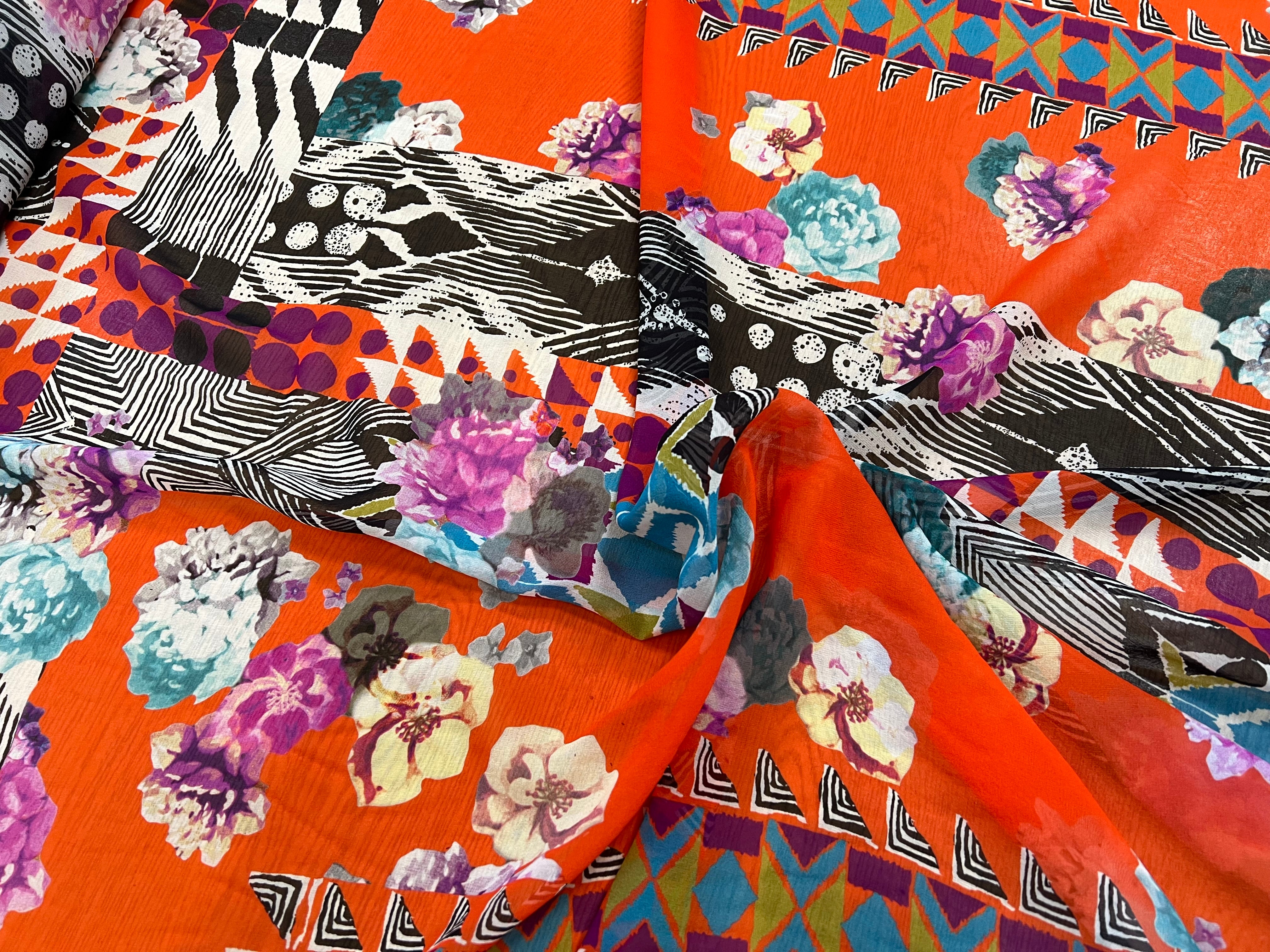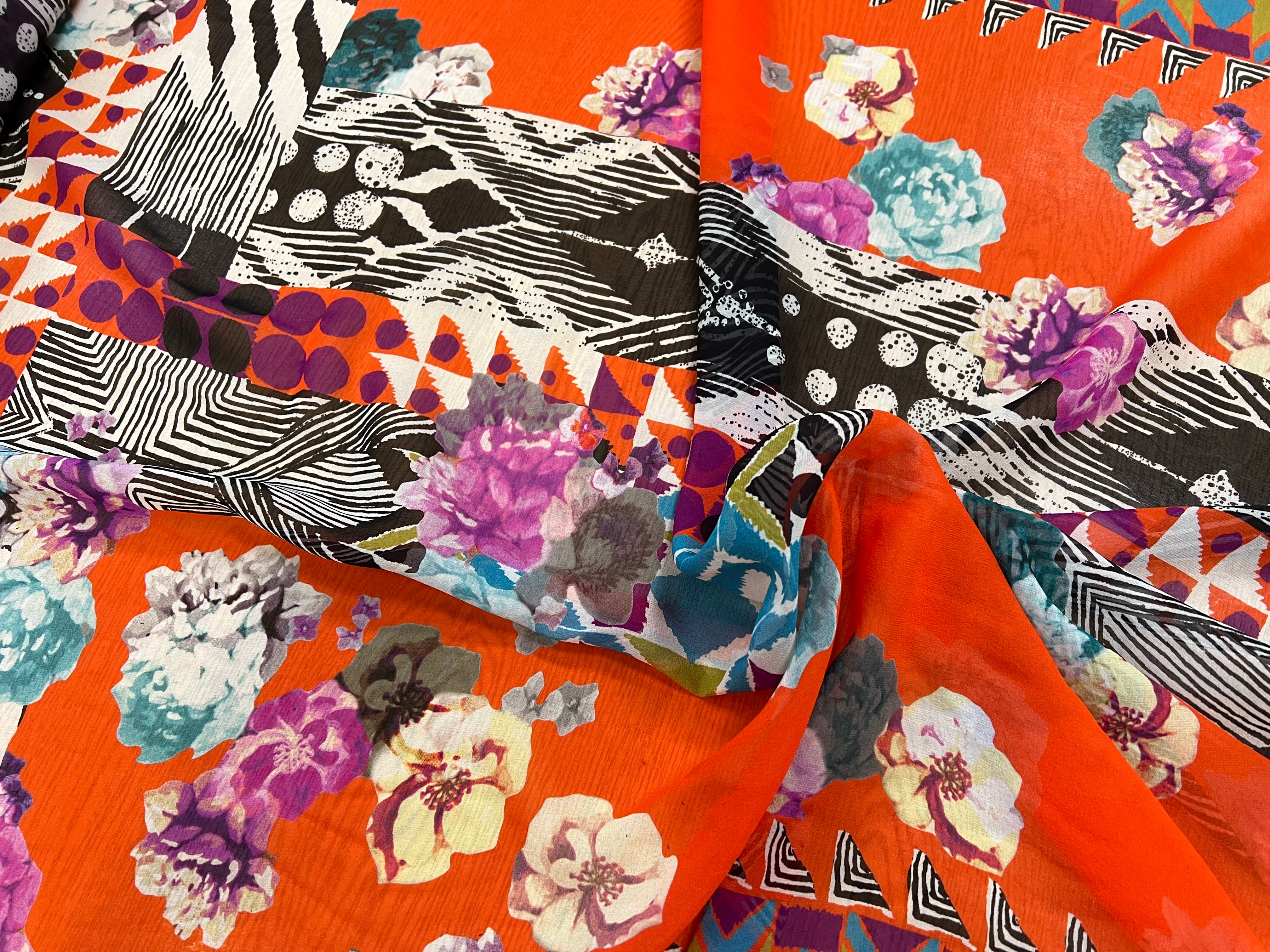 CRÈPON DE SOIE MOTIF GÉOMETRIQUE À FLEURS 142CM
