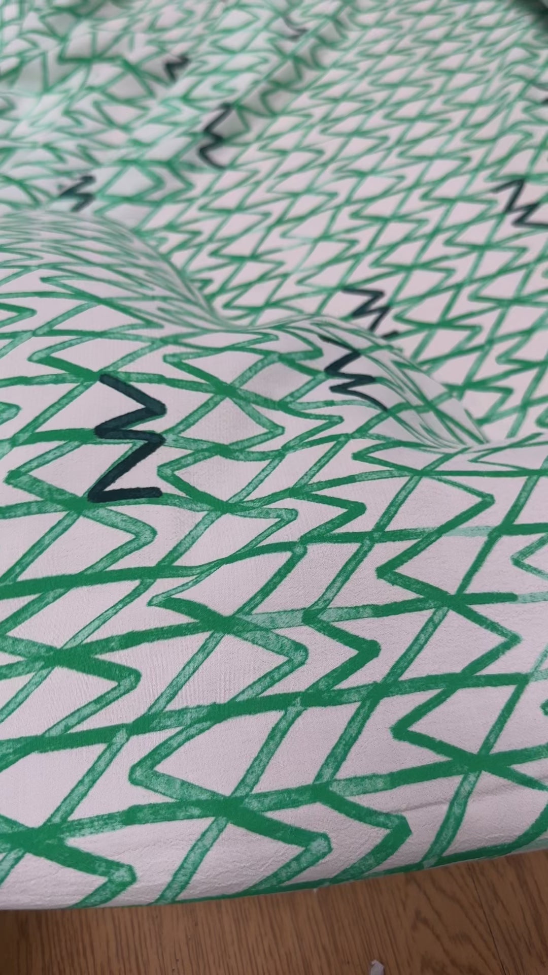 Scoprite il nostro CRÊPE VISCOSA ECOVERO FONDO BIANCO MOTIVI GEOMETRICI VERDE, un tessuto eccezionale realizzato in Italia, perfetto per i vostri progetti di cucito. Con la sua larghezza di 150 cm e il suo peso di 180 g/ml - 120 g/m², questo tessuto leggero e fluido è ideale per la creazione di indumenti eleganti e confortevoli.