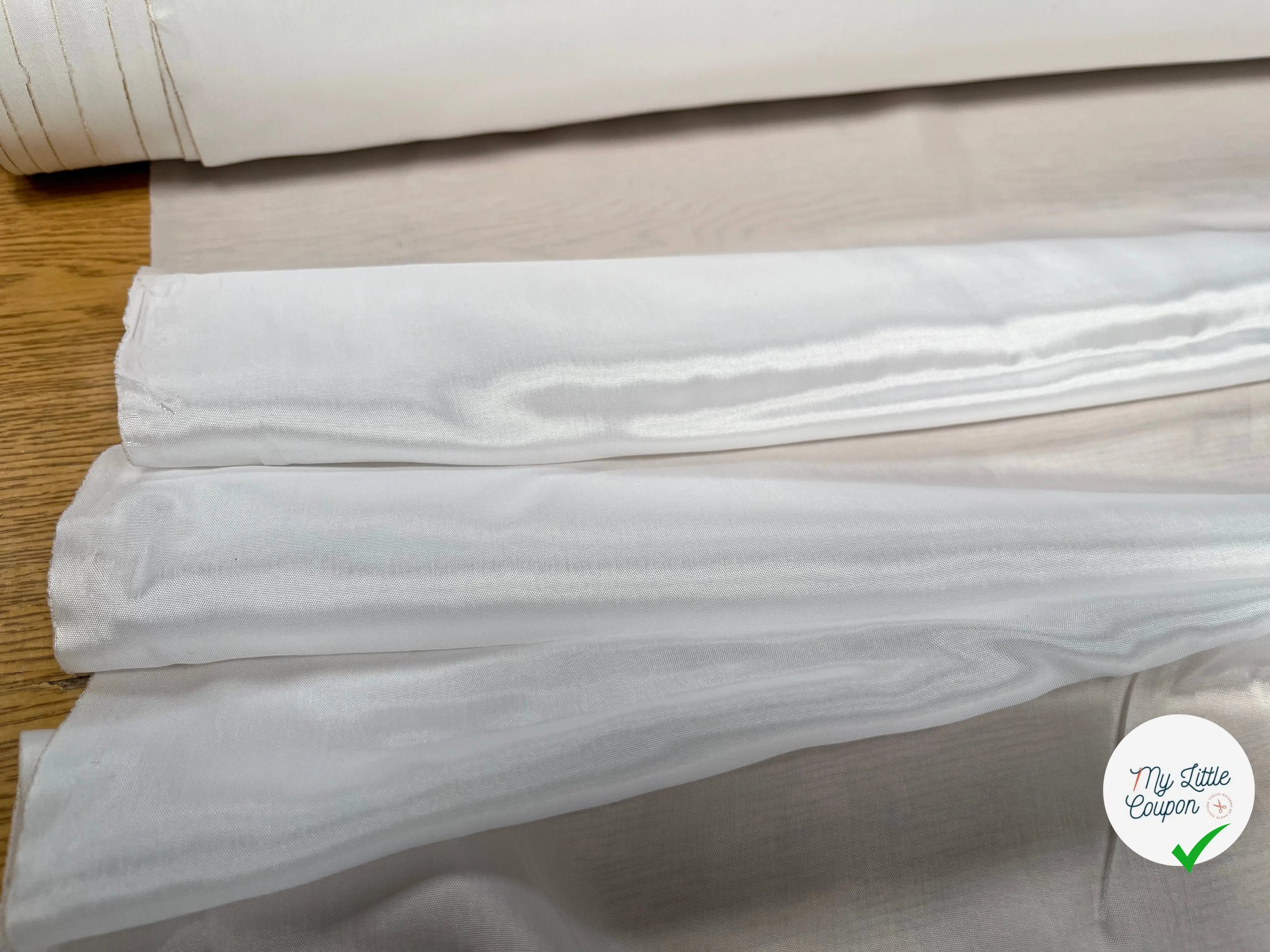 Scoprite il nostro FODERA UNICA BIANCA, un tessuto di lusso in fine di rotolo, accuratamente riutilizzato dal nostro team. Originario d'Italia, questo tessuto di qualità premium è offerto in quantità limitata, il che lo rende un vero tesoro per le vostre creazioni sartoriali.