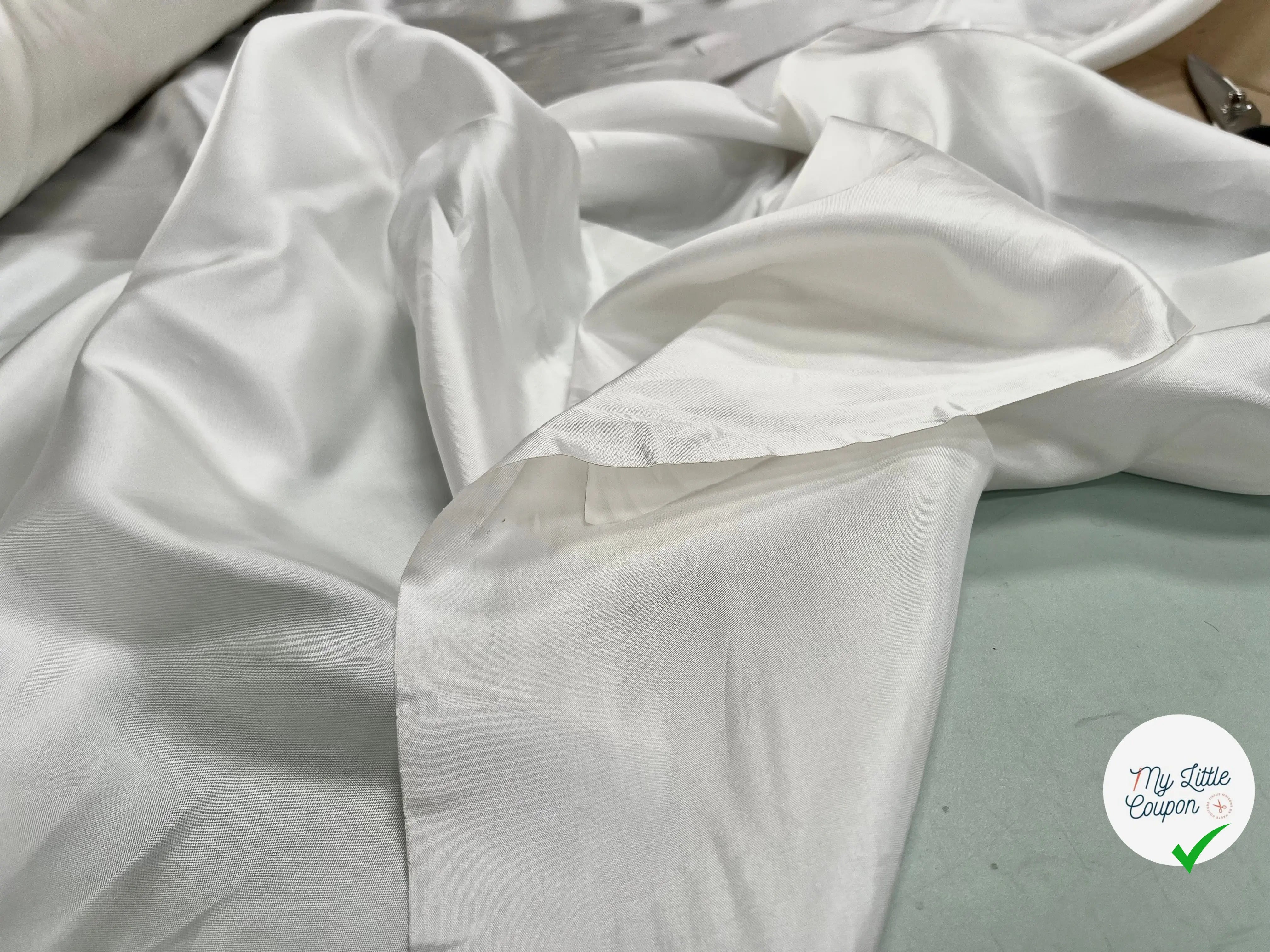 Tous nos tissus sont issus de fins de séries de maisons de haute couture françaises et italiennes. Nous stockons nos tissus en rouleaux, aucun coupon n’est coupé d’avance afin de permettre de ne pas abîmer ni froisser nos jolies étoffes.