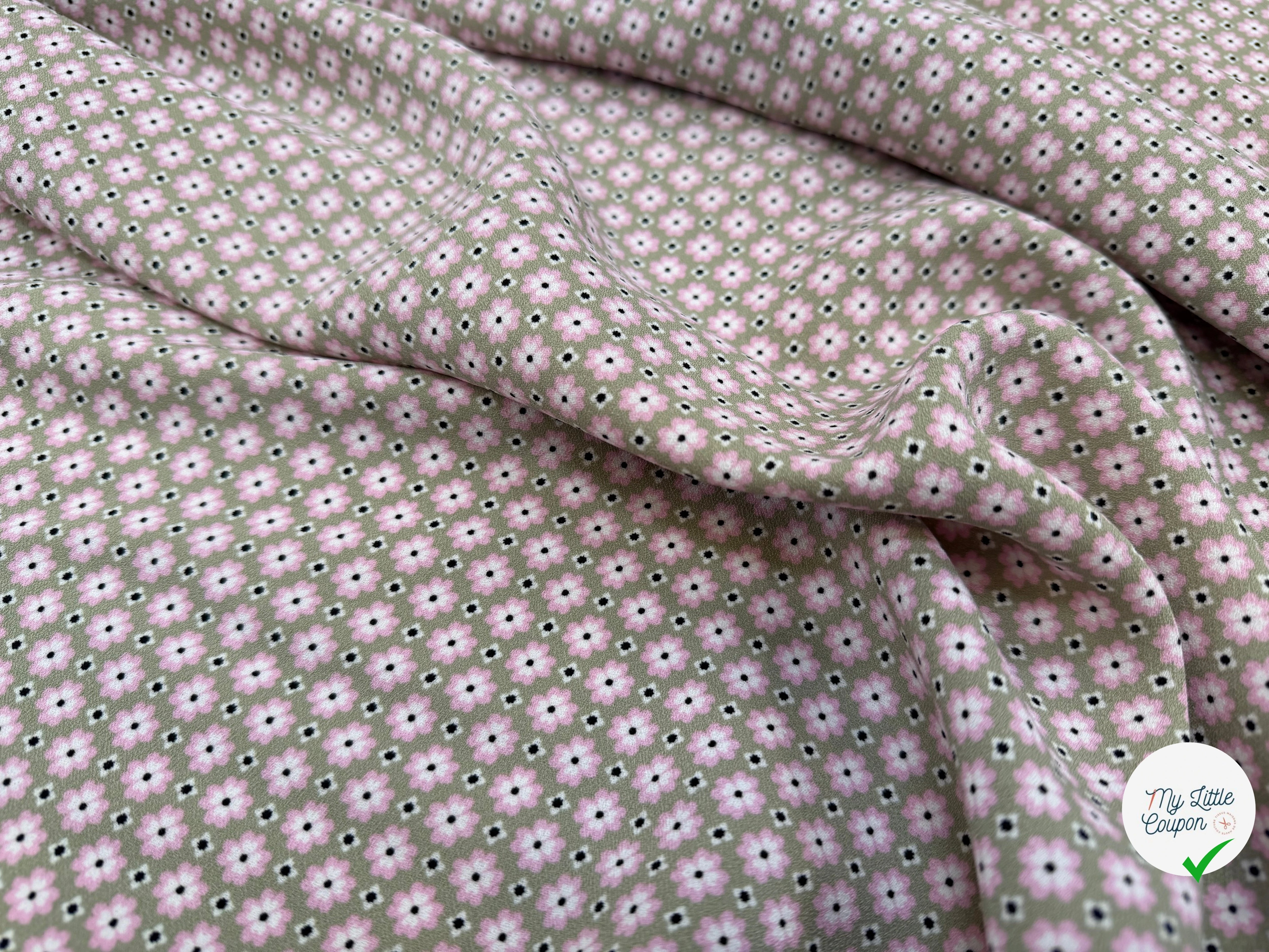 CREPE SUPERBE TENUE PRINT FLOWERS FOND ROSE