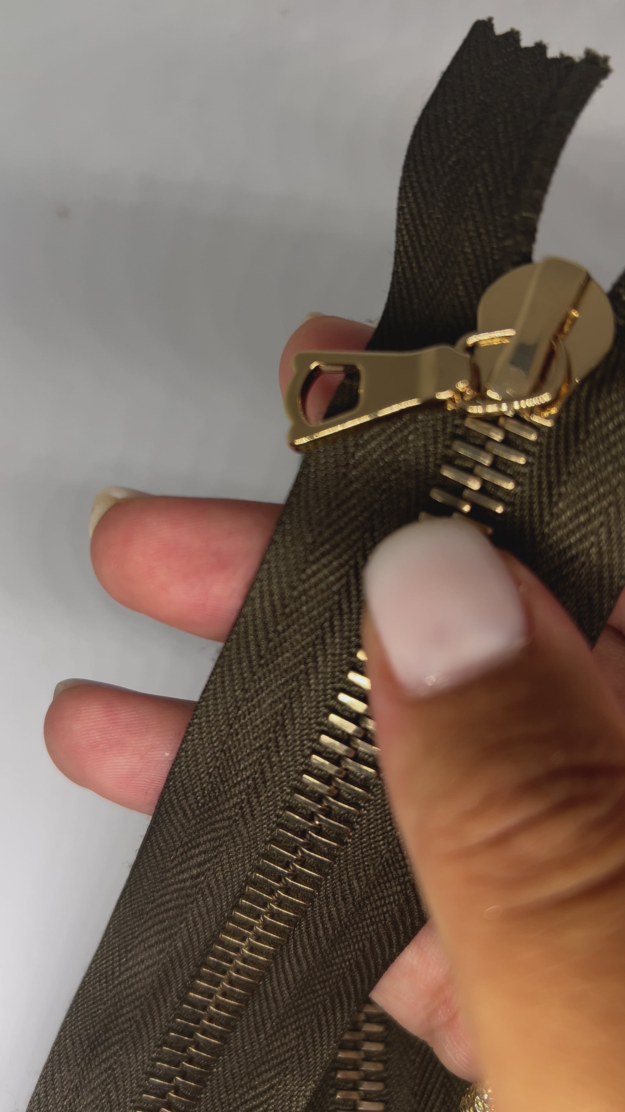 FERMETURE RIRI MÉTAL DORÉ DOUBLE VOIES 100CM M8 KAKI