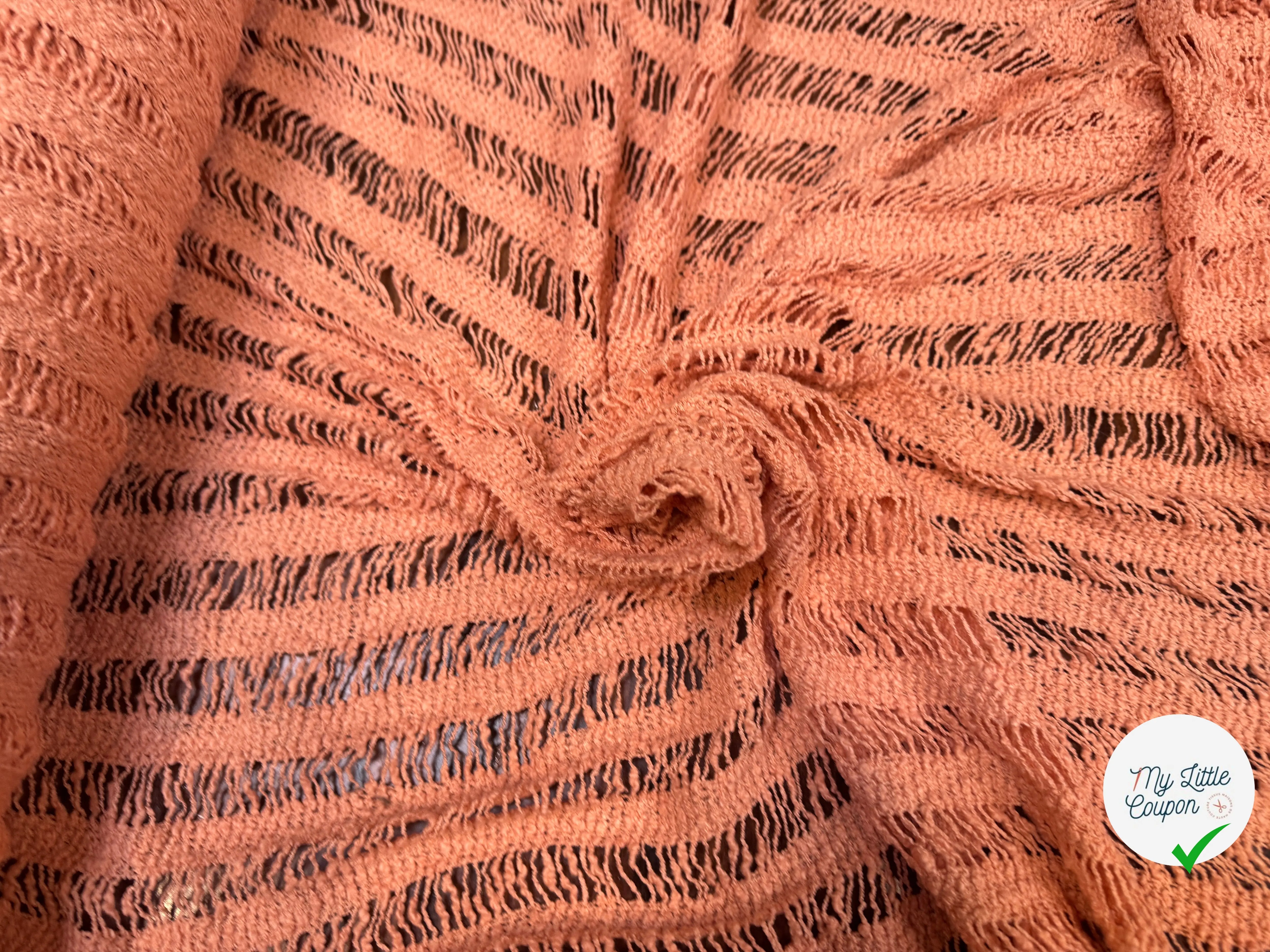 Ce tissu filet dans des tons pêche saumon est léger mais résistant grâce à sa composition en coton et polyamide. Parfait pour des créations aériennes et élégantes, il convient aux vêtements légers, accessoires de mode ou éléments de décoration intérieure. Son aspect filet apporte une touche de modernité et de texture aux projets.